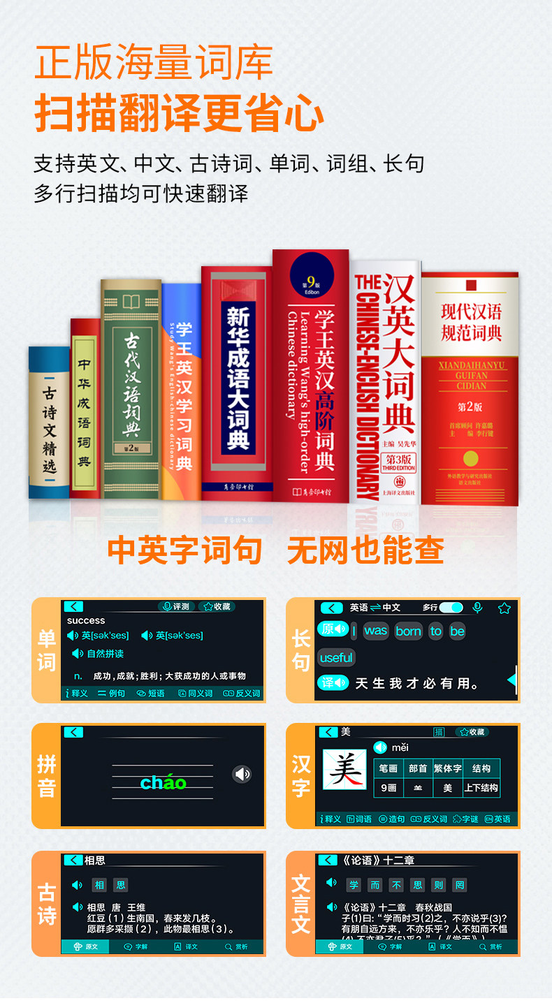 [New Upgrade]Lenovo Laiku All-Subject Dictionary Pen English Reading Pen Universal Learning Tool for Primary, Middle, and High School Students Synchronized Course Scanning Smart Reading Device Scanning Translation Pen
