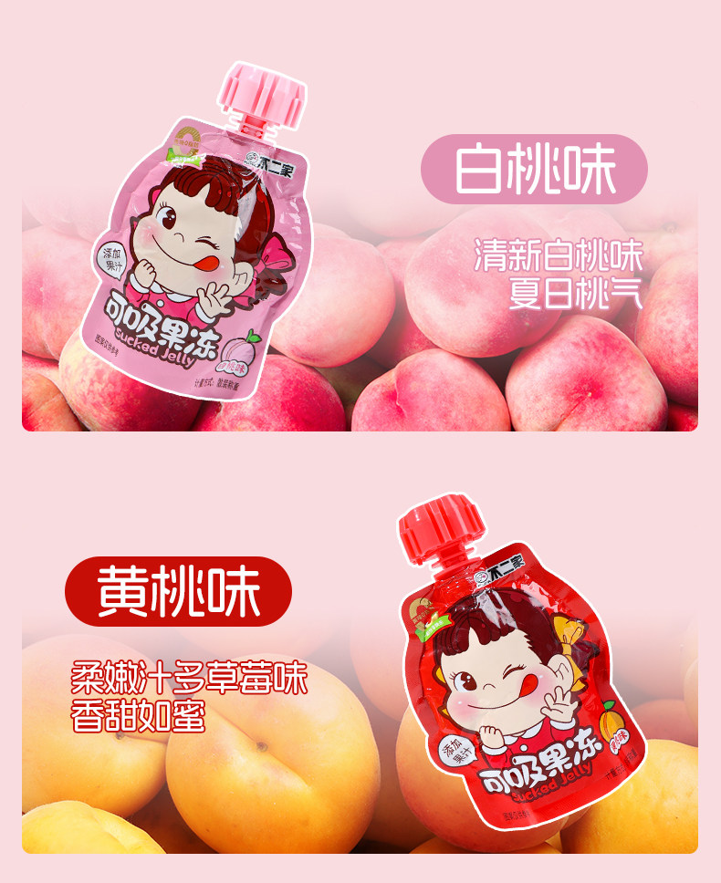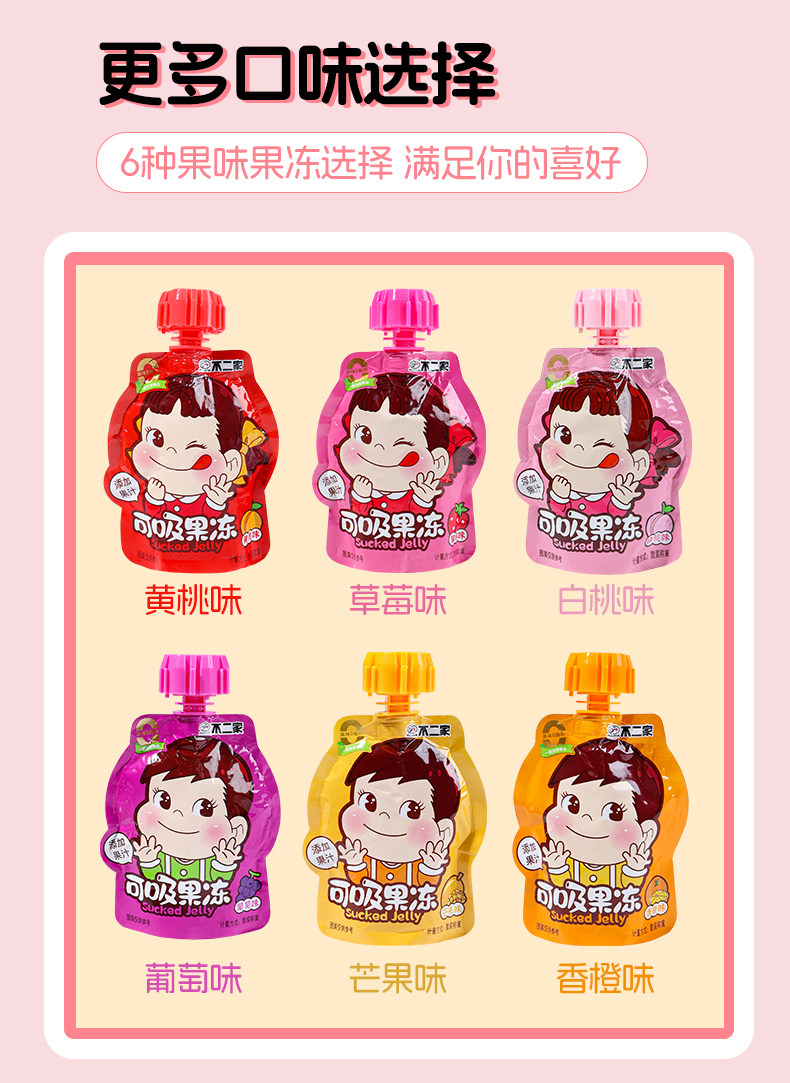 | Taste | Random Combination of Multiple Flavors*30 Pieces (3-6 Flavors),Fujiya Suction Jelly Grape Flavor*30 Pieces,Fujiya Suction Jelly Yellow Peach Flavor*30 Pieces,Fujiya Suction Jelly White Peach Flavor*30 Pieces,Fujiya Suction Jelly Mango Flavor*30 Pieces,Fujiya Suction Jelly Orange Flavor*30 Pieces,Random Combination of Multiple Flavors*30 Pieces (3-6 Flavors)... |