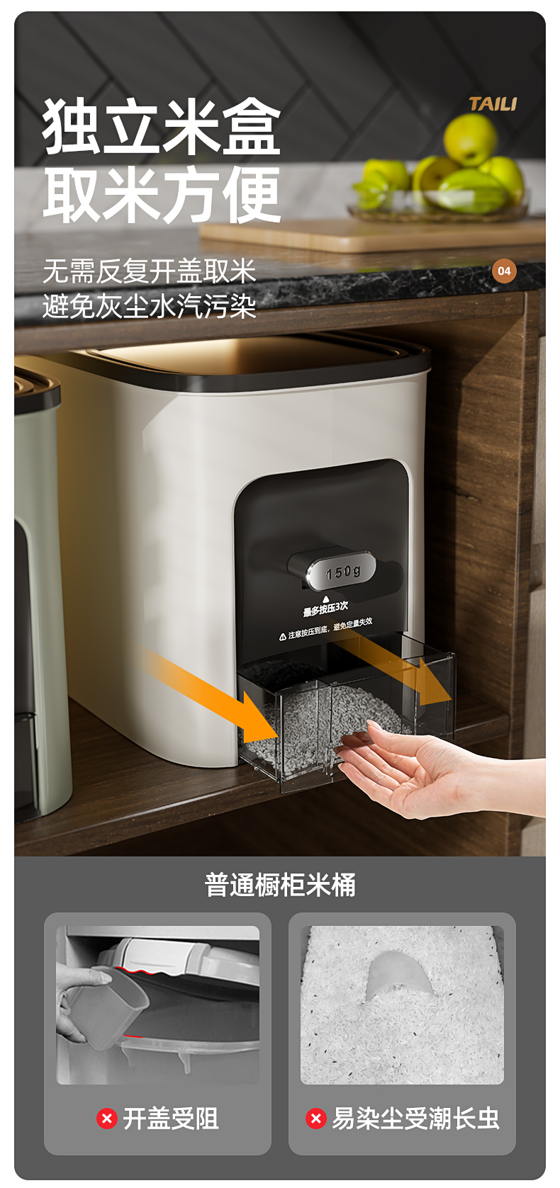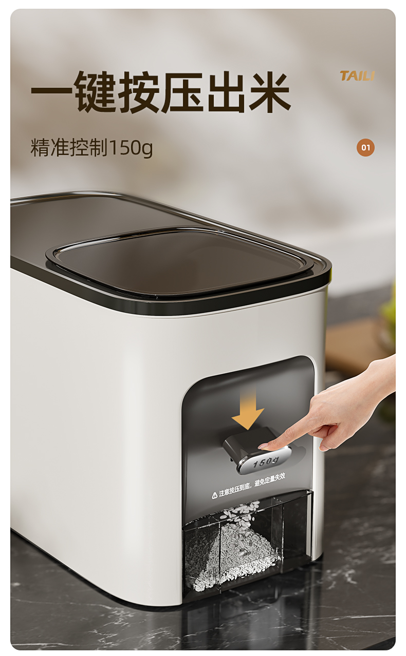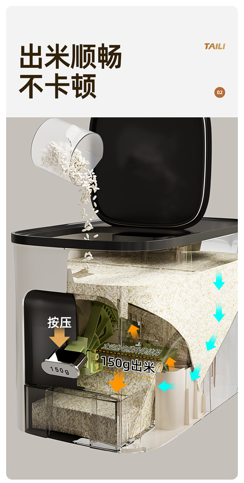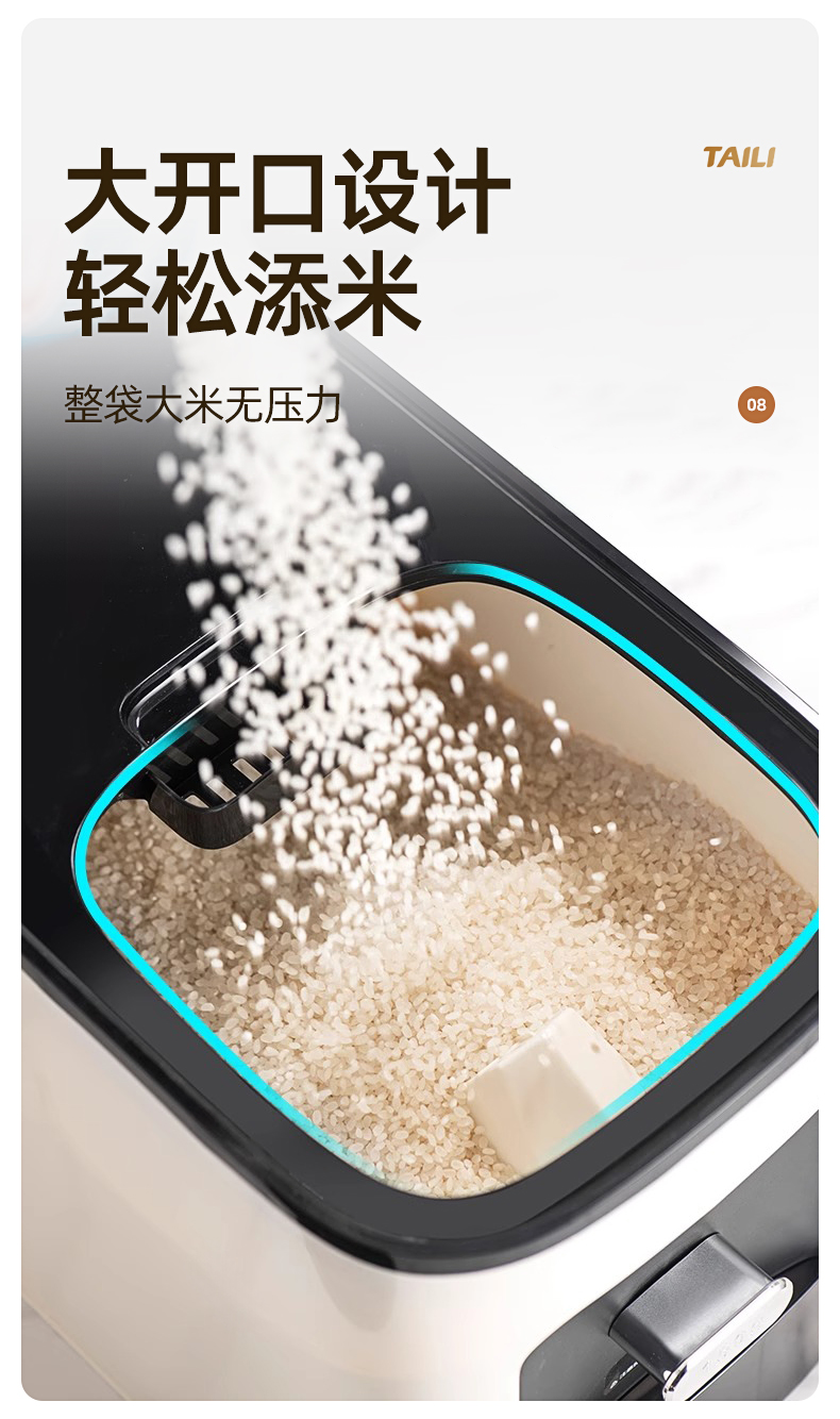 Taili Rice Container with Measured Dispensing, Household Insect-Proof and Moisture-Proof Sealed Rice Box, Embedded Cabinet Rice Storage Container