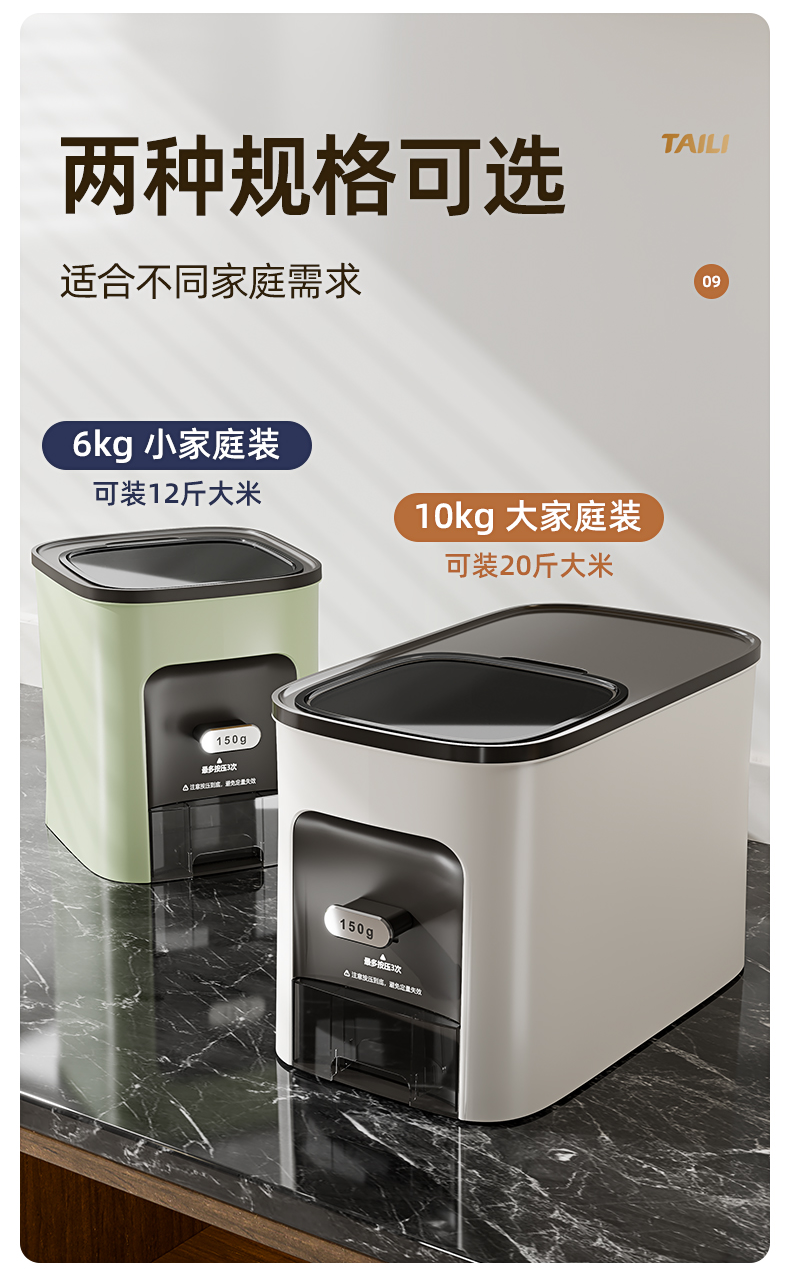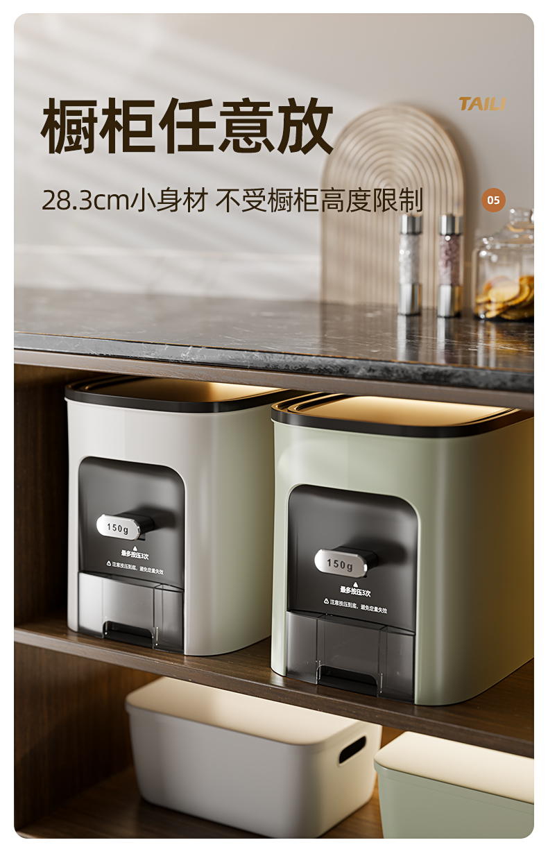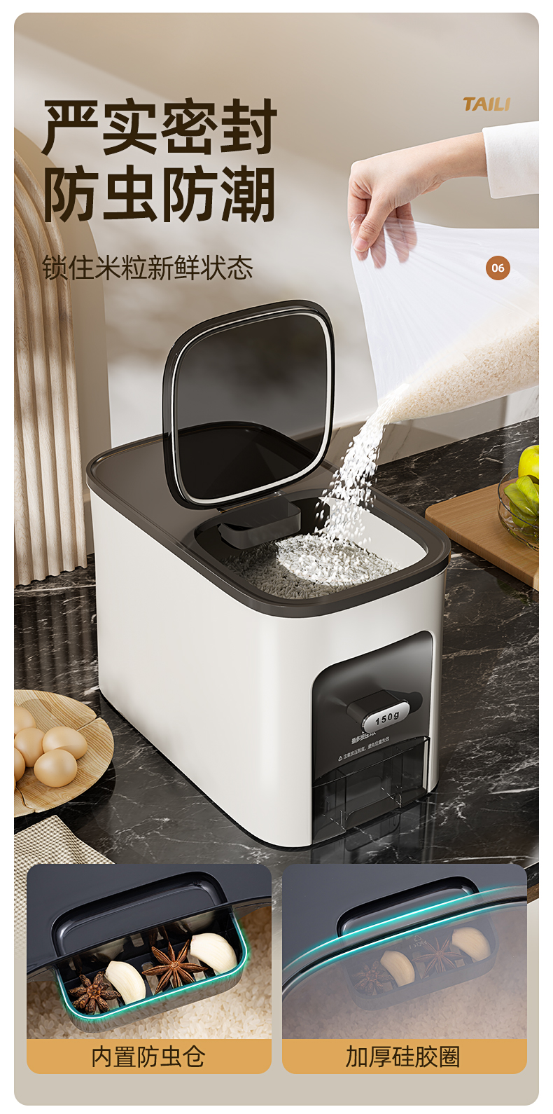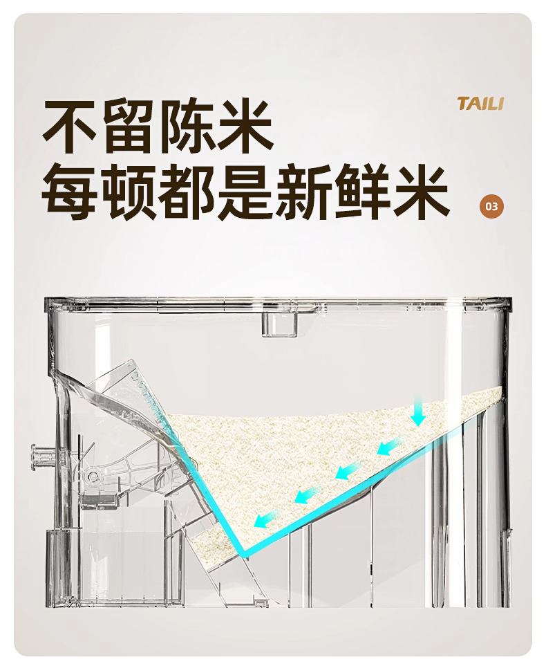 Taili Rice Container with Measured Dispensing, Household Insect-Proof and Moisture-Proof Sealed Rice Box, Embedded Cabinet Rice Storage Container