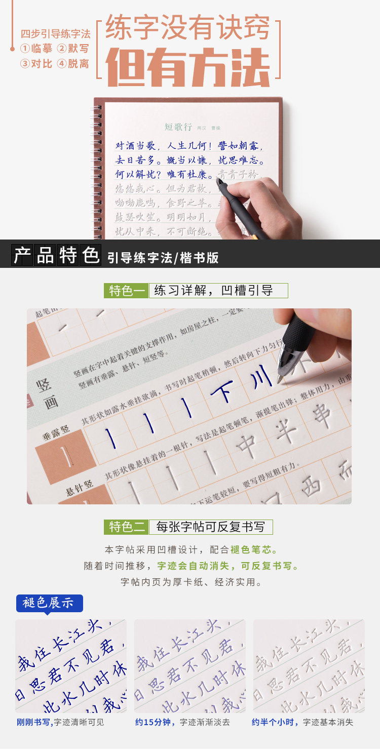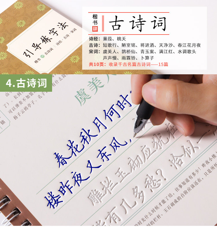 Regular Script Copybook for Adult Calligraphy Practice, Groove Practice Book for Adults, Regular Script Beginner's Penmanship Practice, Special Practice Book for High School Hard Pen Calligraphy, Beautiful Fonts for Boys and Girls, Quick Learning of Regular Script for Junior High School Students, Reusable Writing Practice Book for Beginners