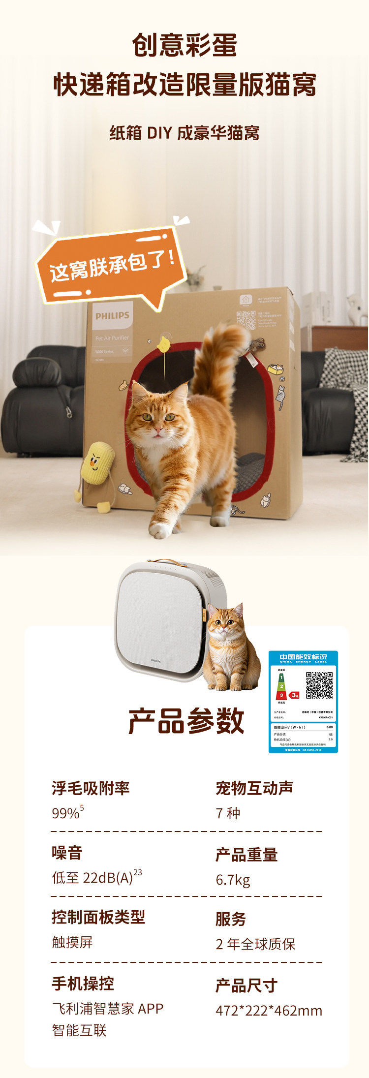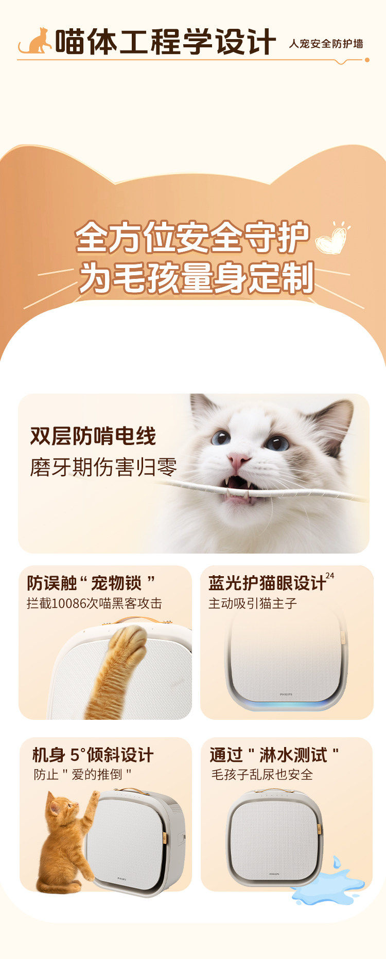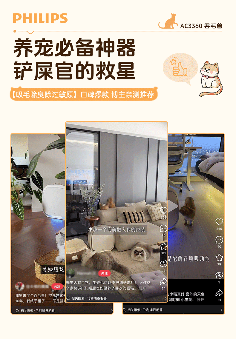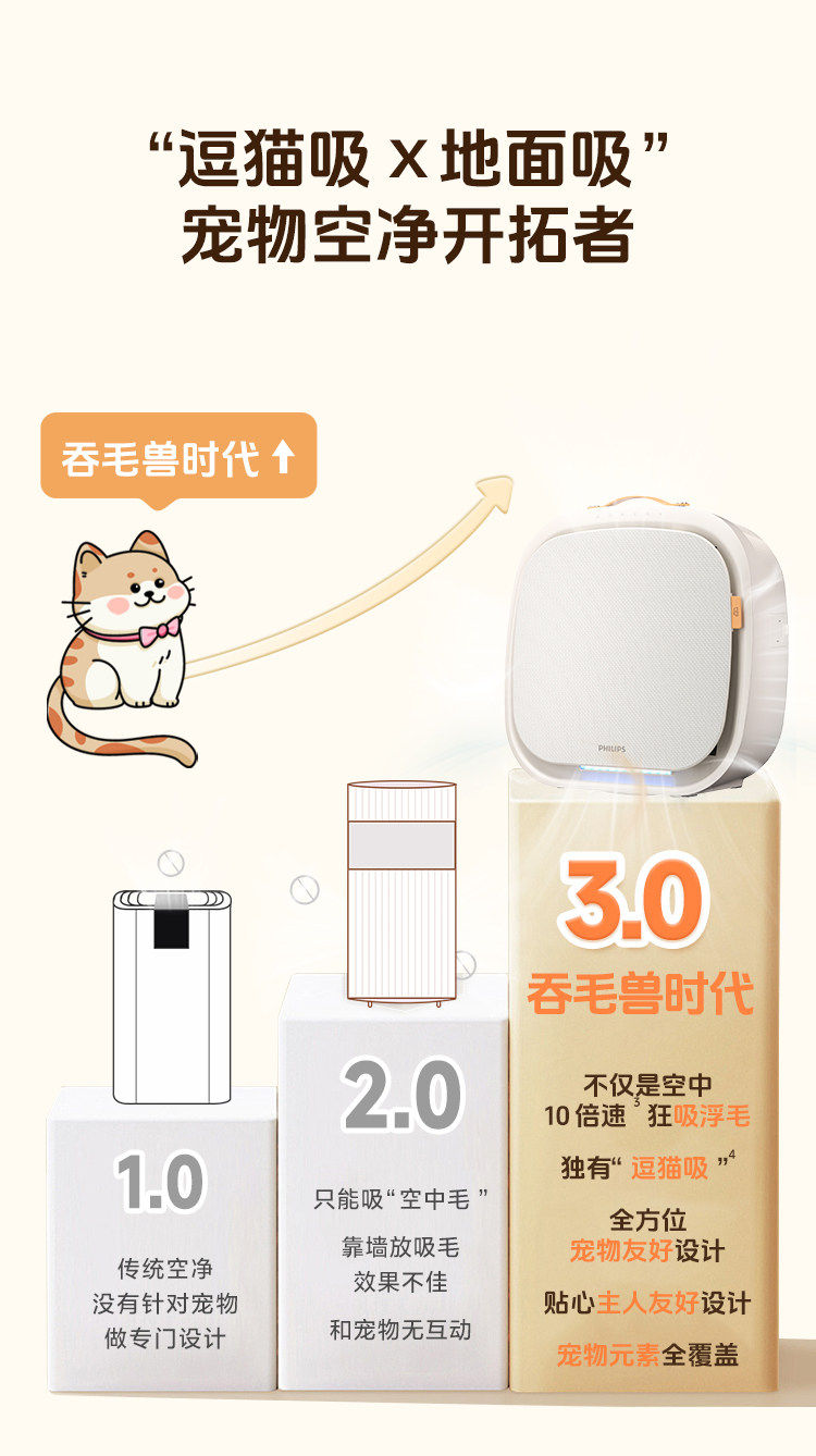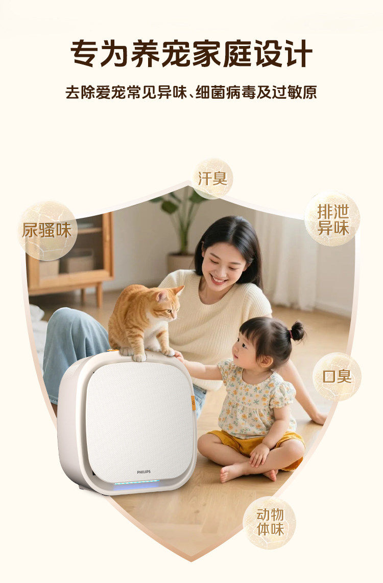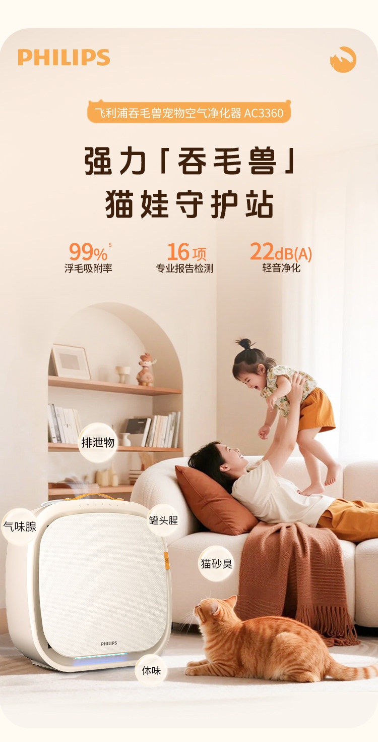 Philips Pet Air Purifier, Cat Hair Removal Purifier, Special Deodorizer for Cats, Household Ac3680Ac3360