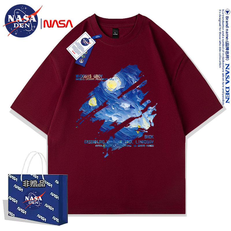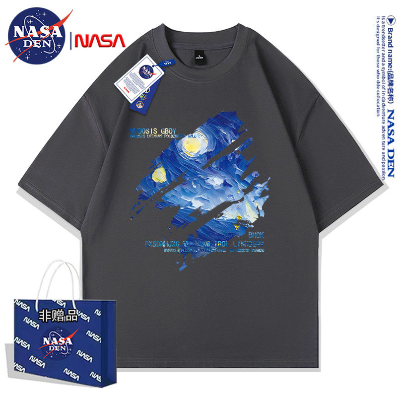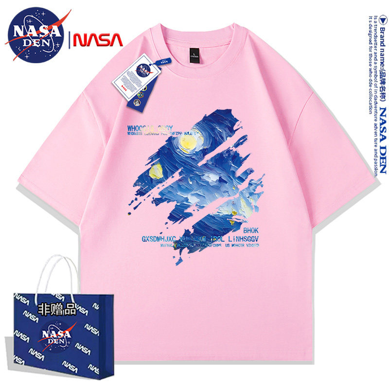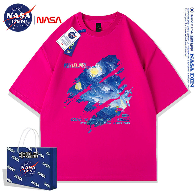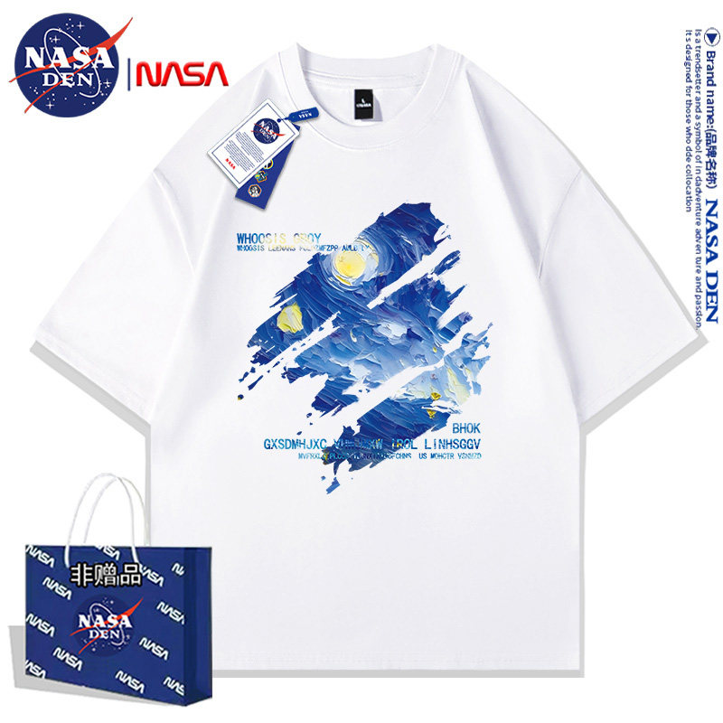 Nasa Co-Branded American-Style Pure Cotton Short-Sleeved T-Shirt for Men and Women, Summer Japanese Retro Casual Loose Fit ins Couple's Top