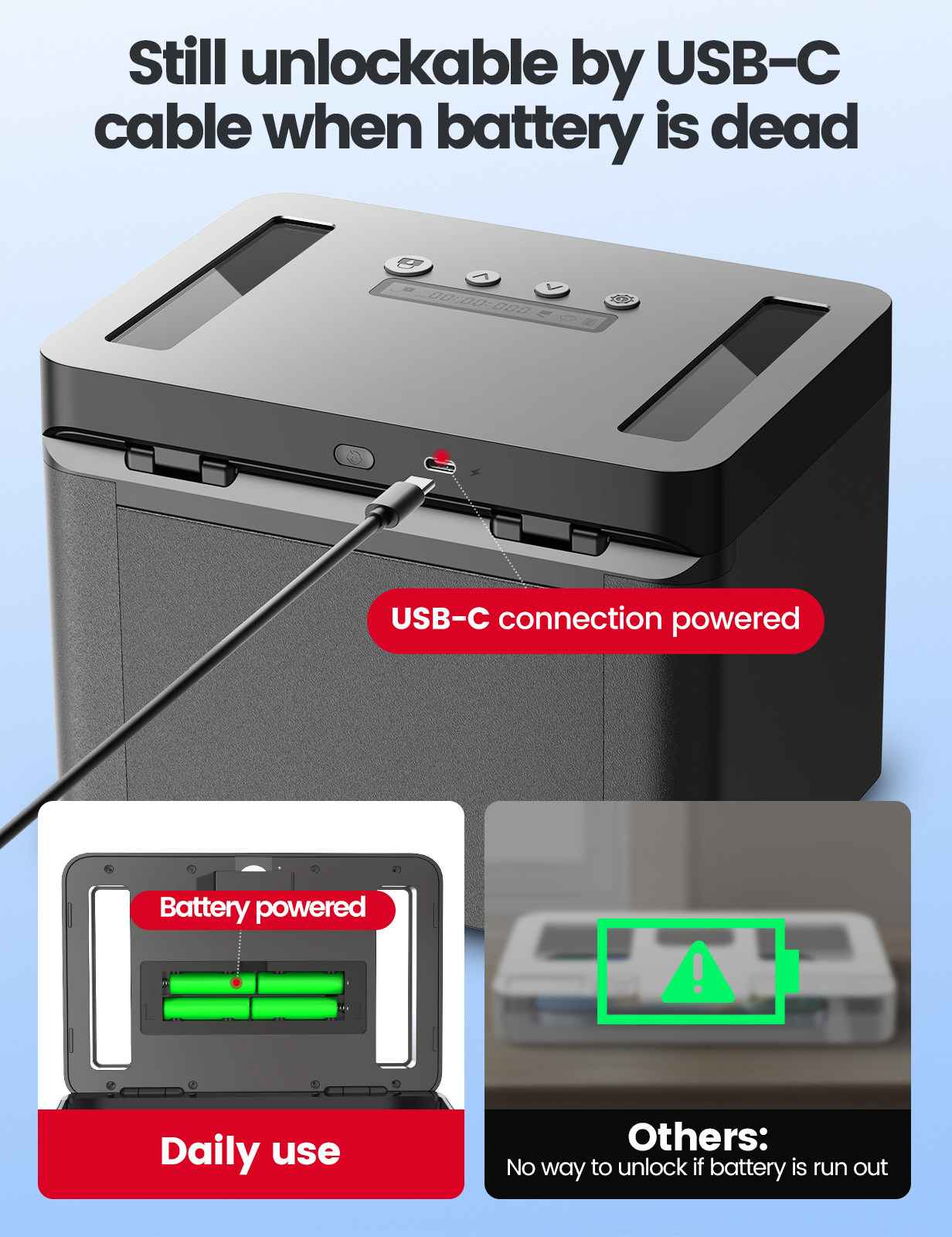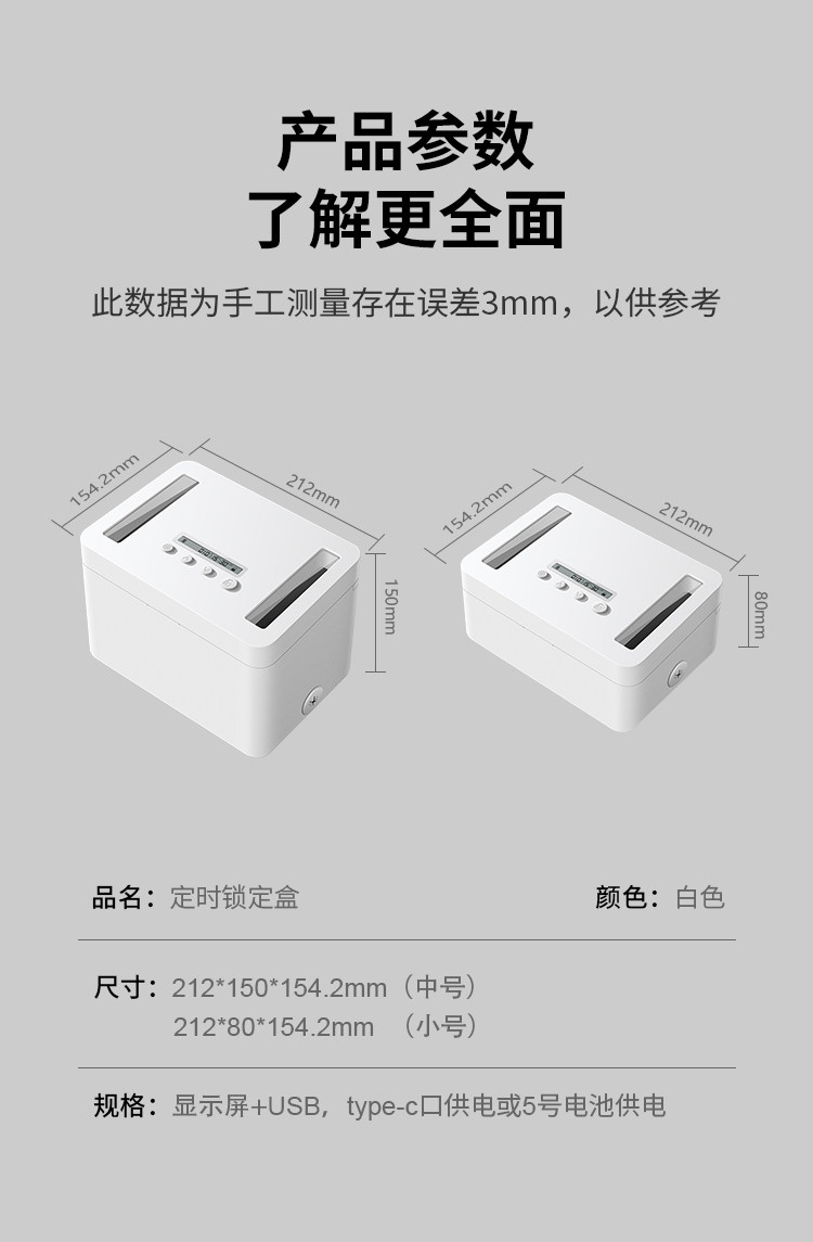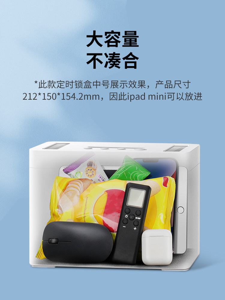| Color Classification | Mechanical Timing Lock Box-Black-Small Size,Mechanical Timing Lock Box-White-Small Size,Mechanical Timing Lock Box-Black-Large Size,Mechanical Timing Lock Box-White-Large Size,Mechanical Timing Lock Box-Black-Extra Large,Mechanical Timing Lock Box-White-Extra Large |