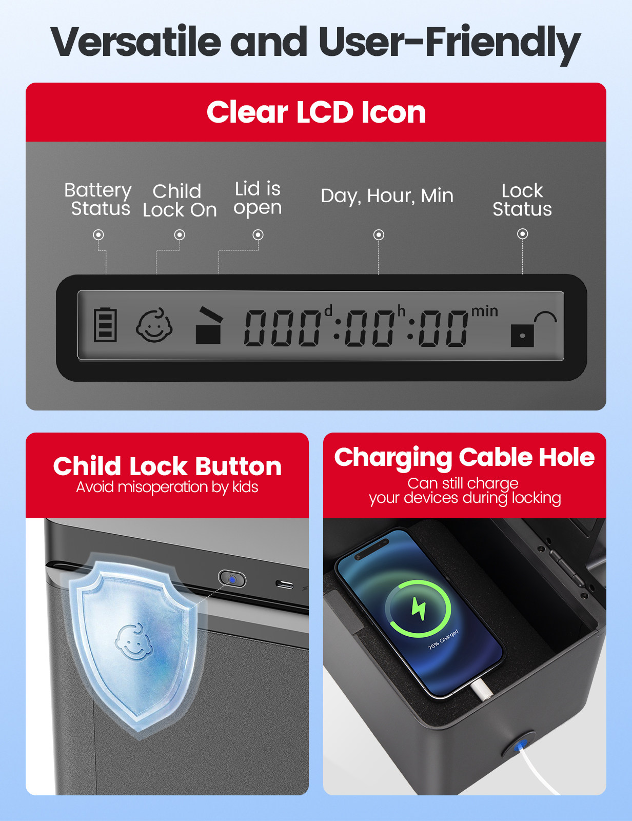 Luye Mobile Phone Self-Discipline Device Lock Box, Smart Timer Box, Prison Mode, Quit Gaming, Quit Smoking, Study for Exams, Focus on Studying