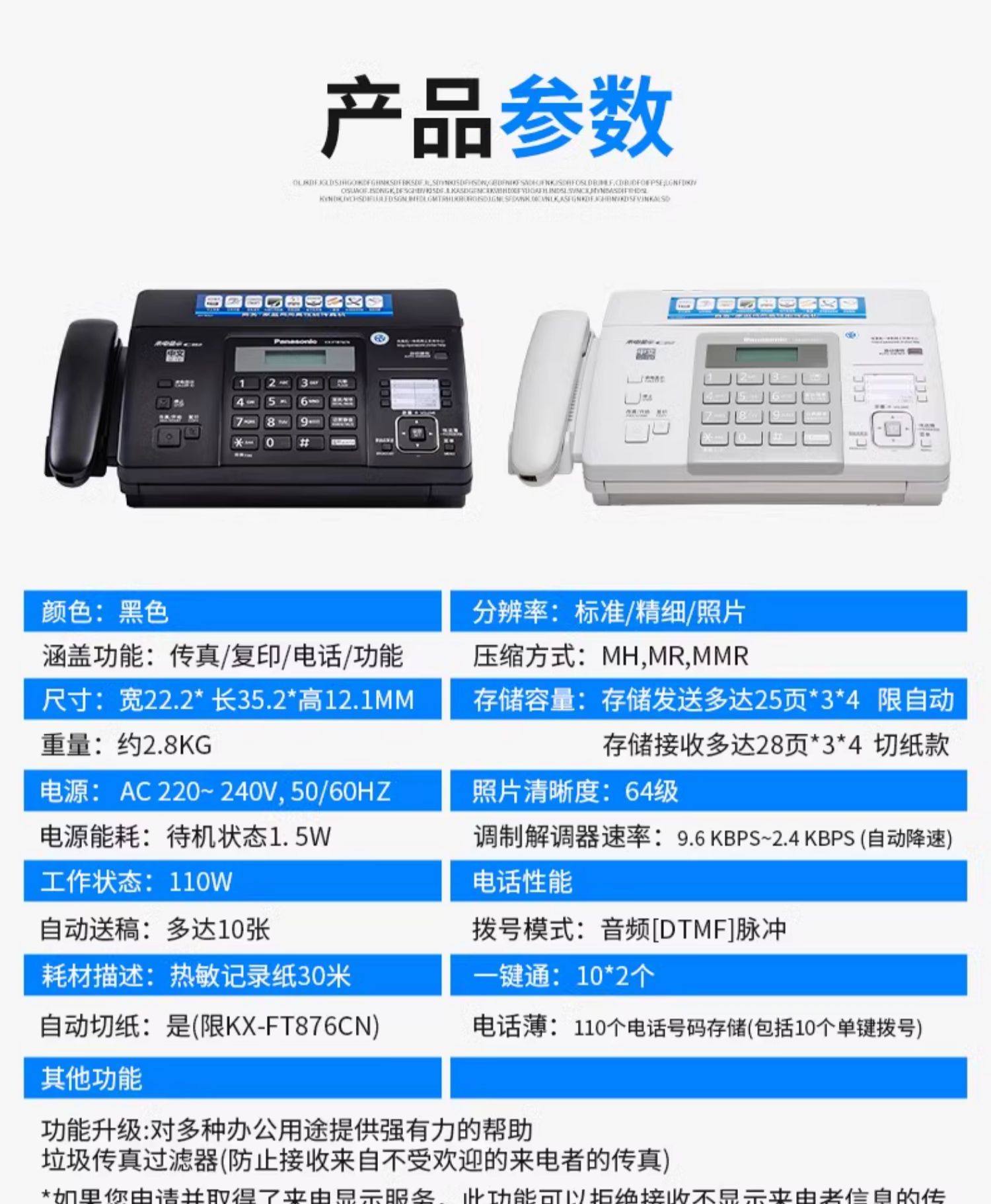Panasonic Fax Machine Telephone All-In-One Automatic Receiving Office Multifunctional Fax Machine Thermal Paper