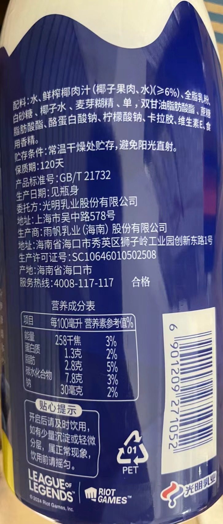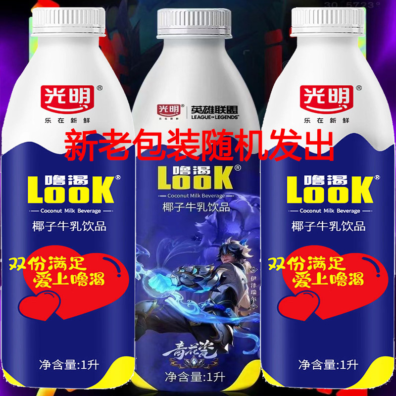 Guangming Luhke Look Fresh Coconut Milk and Cow's Milk Drink 1000ml Coconut Flavor Healthy Internet-Famous Beverage Large Bottle