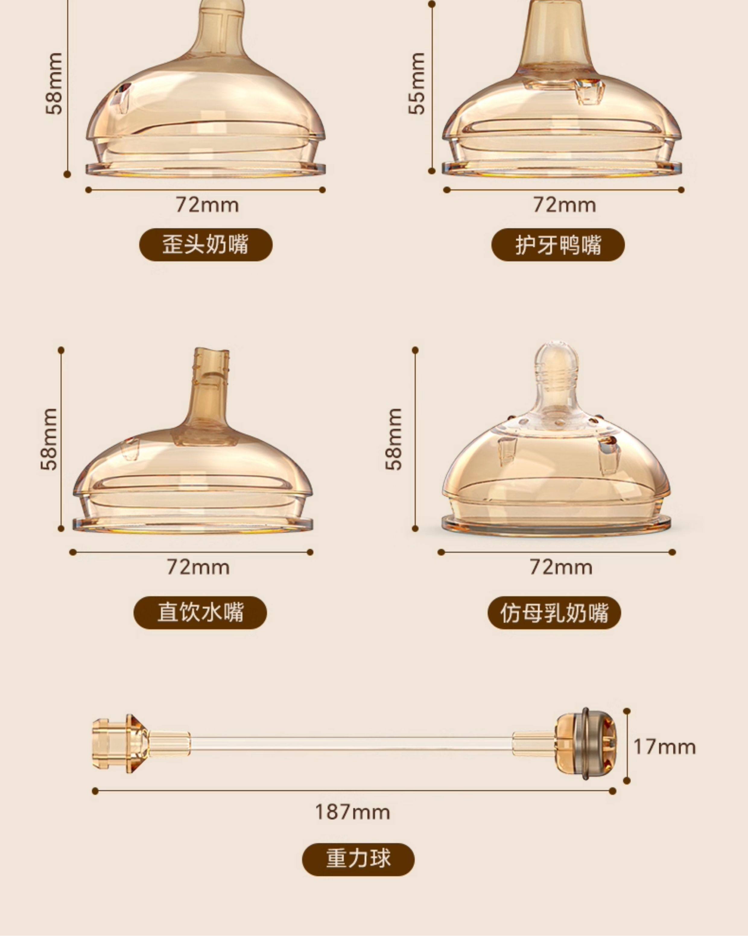 | Color Classification | 1 Drop of Tilted Nipple[0-3 Months],2 Drops of Tilted Nipple[3-6 Months],1 Drop of Imitation Breast Milk Pacifier[0-3 Months],2 Drops of Imitation Breast Milk Pacifier[3-6 Months],Cross-Shaped Nipple for Breast Milk Imitation[6-12 Months],Imitation Breast Milk Pacifier Y Shape[12 Months and Above],Imitation Breast Milk Pacifier Cross + Gravity Ball[6-12 Months],Imitation Breast Milk Pacifier Y Shape + Gravity Ball[12 Months and Above],Dental Protection Duckbill[6-12 Months],Direct Drinking Water Spout[12 Months and Above],Teething Duckbill + Gravity Ball[6-12 Months],Direct Drinking Spout + Gravity Ball[12 Months and Above],Gravity Ball,Straight Straw |