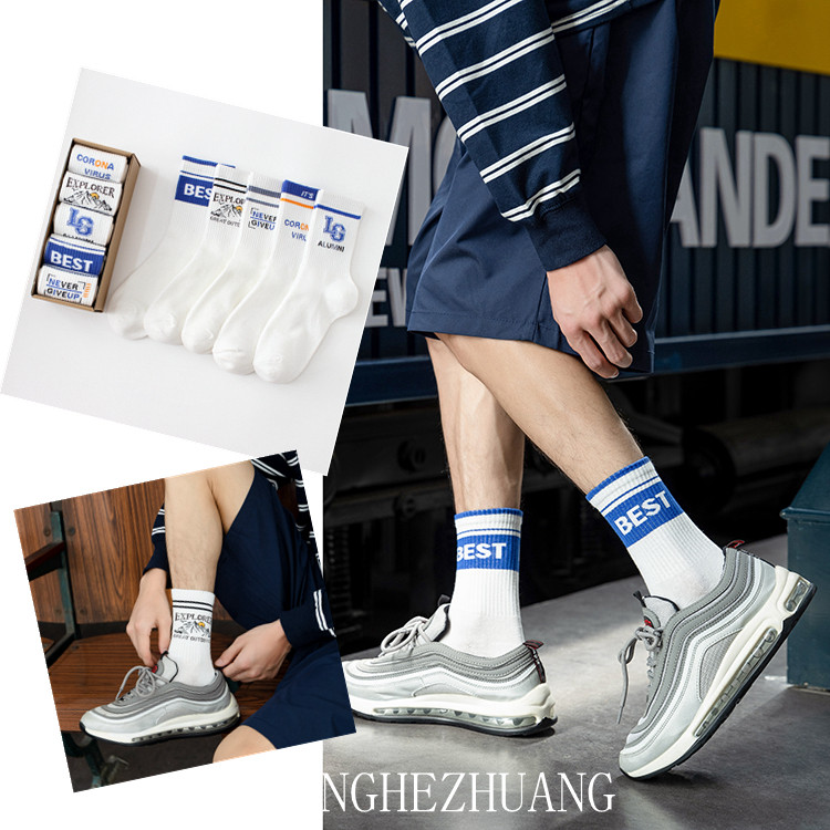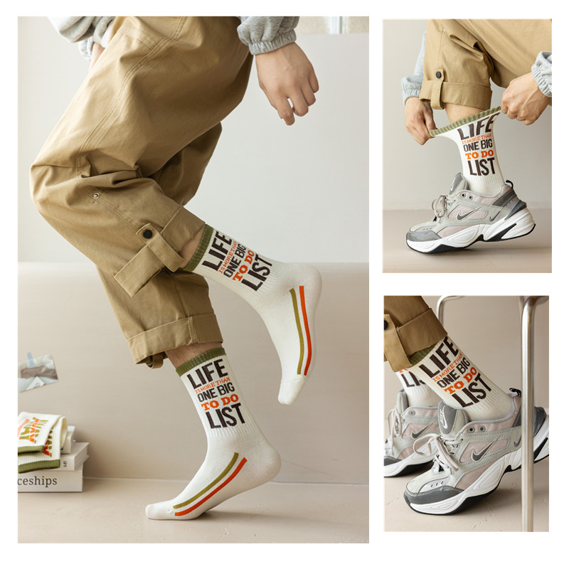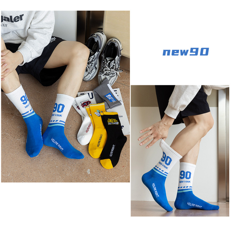 Socks for Boys, Autumn and Winter Mid-Calf Socks, Pure Cotton, Street Basketball Sports, Student Boys, Winter Letter Print, Youth Long Socks