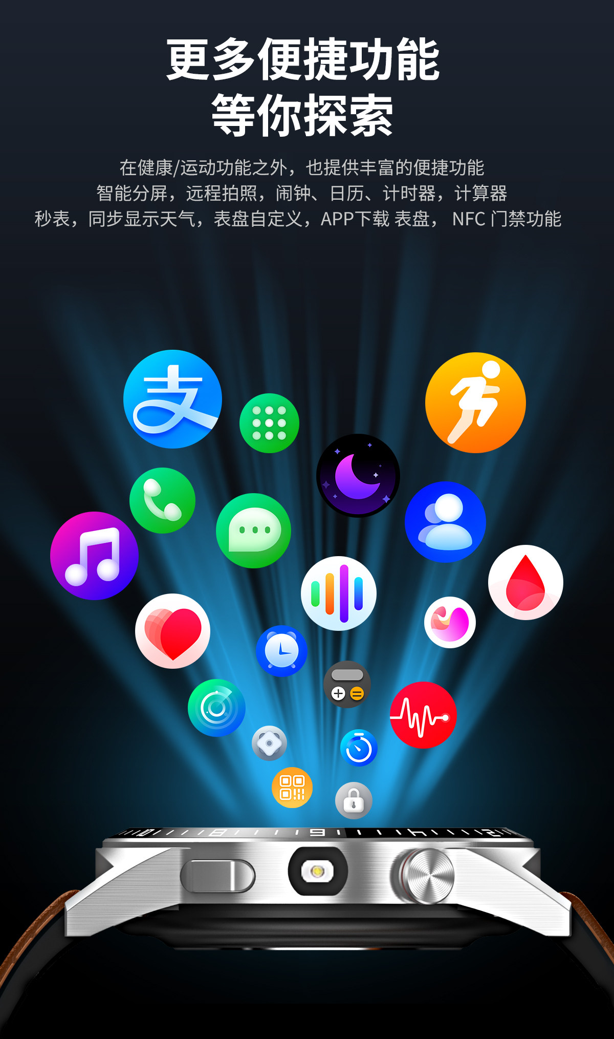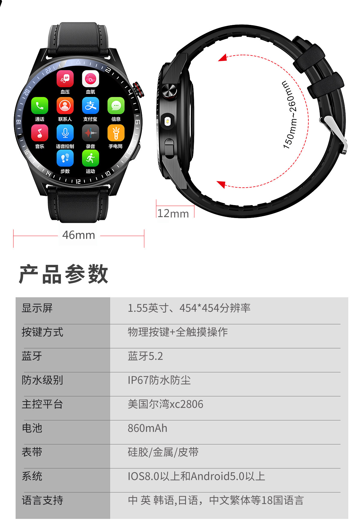 | Function | Blood Pressure Monitoring,Day of the Week Display,Bluetooth Call,Step Counting,Countdown,Information Push,Heart Rate Monitoring,Blood Oxygen Detection,Smart Reminder,Waterproof |