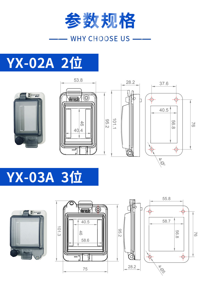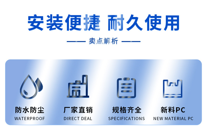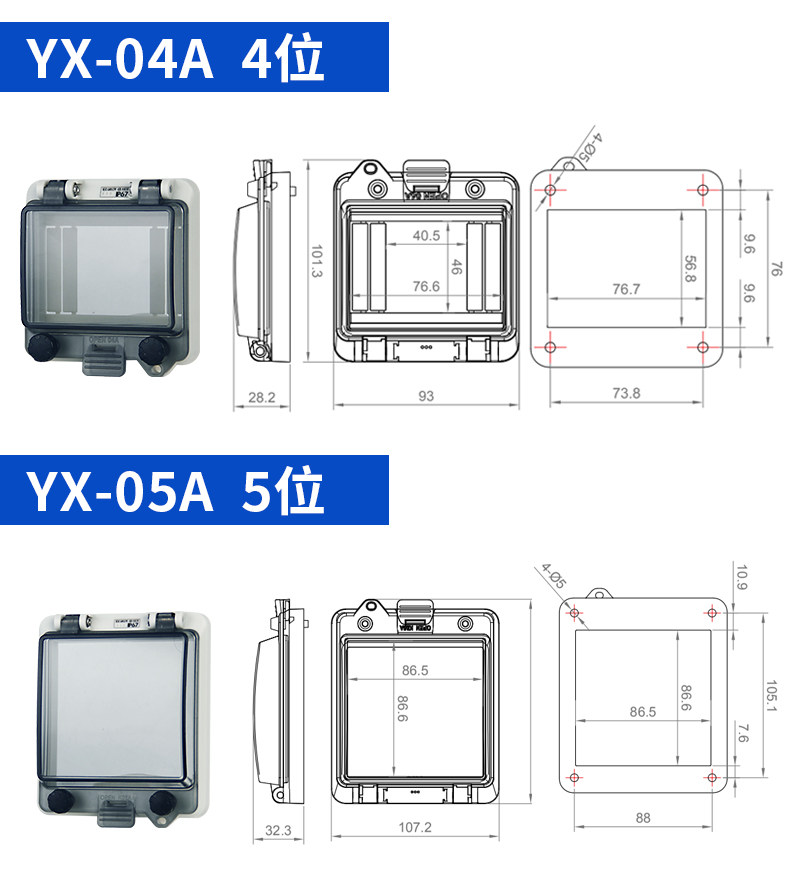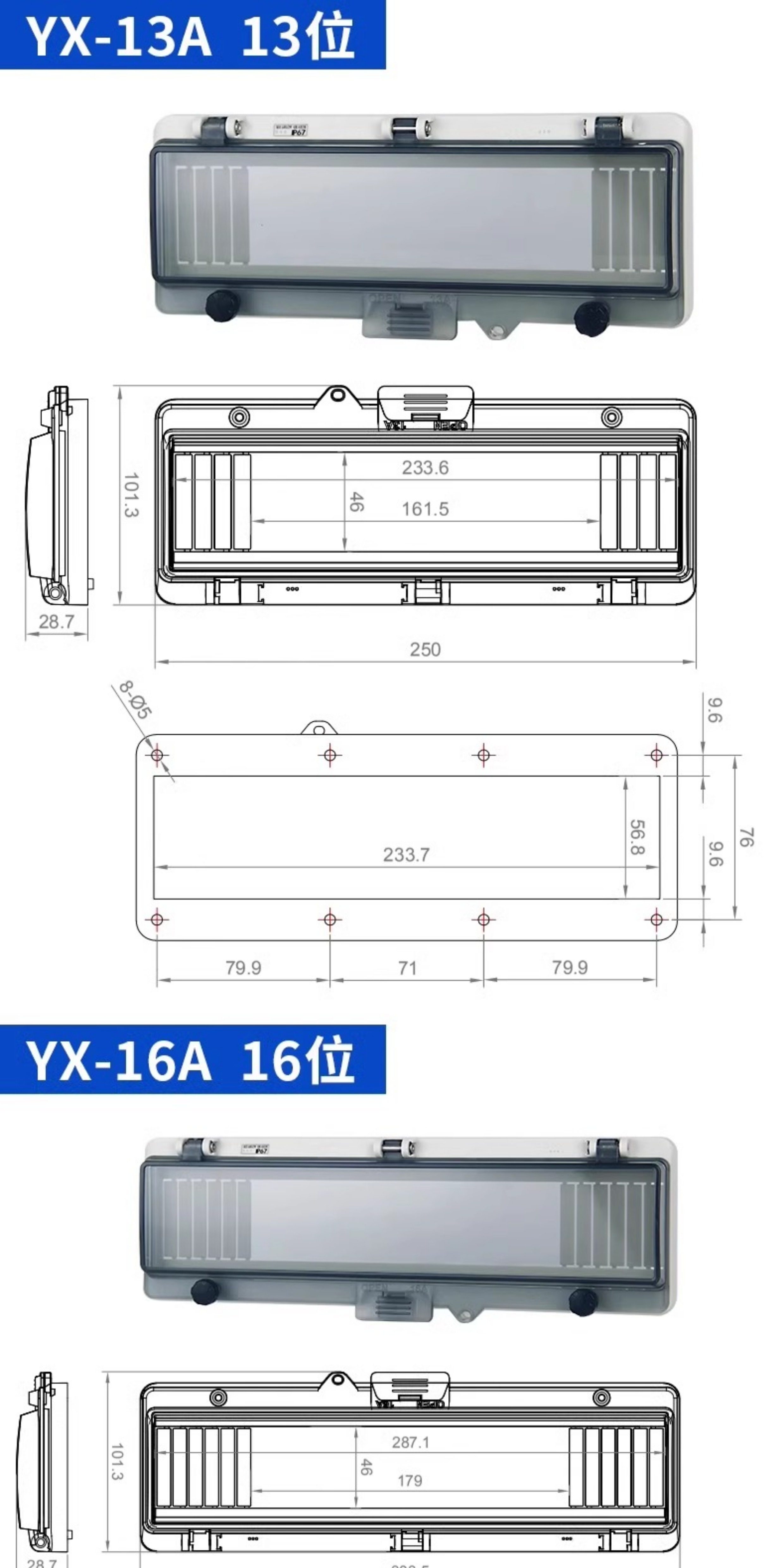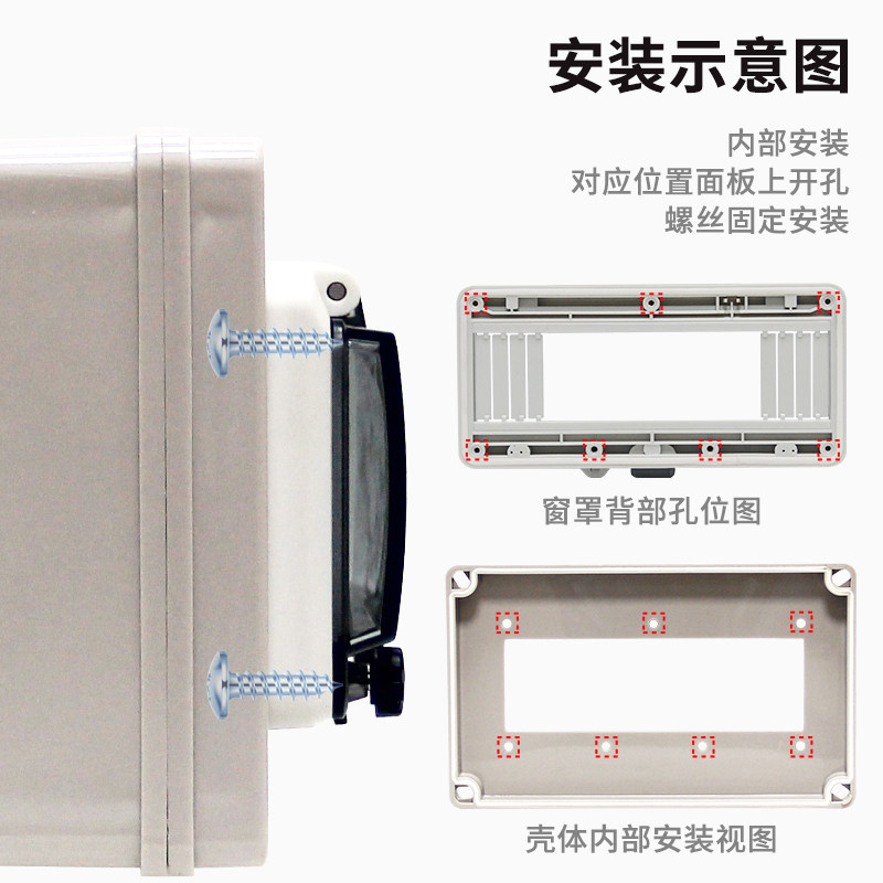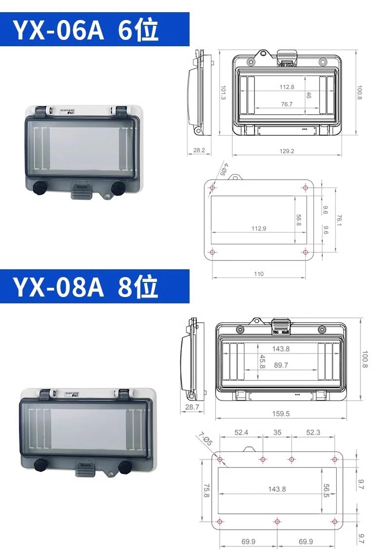| Color Classification | Lotus Color,Watermelon Red,Orange Red,Rose Red,Off-White,Peacock Blue,Khaki,Silver,Dark Gray,Pink,Wine Red,Red,Light Blue,Gray,Light Gray,Sky Blue,Milky White,White,Royal Blue,Black,--▼The Following Window Covers Do Not Include Rail Brackets▼--,2-Bit Window Yx-02A,3-Bit Window Yx-03A,4-Bit Window Yx-04A,5-Position Window Yx-05A (Type 86),6-Bit Window Yx-06A,8-Bit Window Yx-08A,10-Bit Window Yx-10A,12-Bit Window Yx-12A,13-Bit Window Yx-13A,16-Bit Window Yx-16A,18-Bit Window Yx-18A,--▼The Following Window Covers Come with Guide Rail Brackets▼--,2-Position Window Yx-02A-With Rail Bracket,3-Position Window Yx-03A-With Rail Bracket,4-Position Window Yx-04A-With Rail Bracket,(Type 86) 5-Position Window Yx-05A-With Guide Rail Bracket,6-Position Window Yx-06A-With Rail Bracket,8-Position Window Yx-08A-With Rail Bracket,10-Position Window Yx-10A-With Rail Bracket,12-Bit Window Yx-12A-With Rail Bracket,13-Position Window Yx-13A-With Rail Bracket,16-Bit Window Yx-16A-With Rail Bracket,18-Bit Window Yx-18A-With Rail Bracket,--▼Circuit Breaker Waterproof Box Series (Waterproof Box Only)▼--,New 3-5 Circuit-Empty Box,3-Position 1P/16A Circuit Breaker Set (5-Circuit Box),Regular Model-5 Circuits (Waterproof Box Only),New 4-8 Circuit-Empty Box,Regular 8-Circuit (Waterproof Box Only),--The Following Is an Empty Box (with or Without Inlet and Outlet Holes Optional),Customized Contact Customer Service)--,2-Position Empty Box-Ag Type (Comes with Guide Rail Bracket),3-Position Empty Box-Ag Type (Comes with Guide Rail Bracket),4-Position Empty Box-Ag Type (Comes with Guide Rail Bracket),5-Position Empty Box-Ag Type (Comes with Rail Bracket),6-Position Empty Box-Ag Type (Comes with Rail Bracket),8-Bit Empty Box-Ag Type (Comes with Rail Bracket),10-Position Empty Box-Ag Type (Comes with Guide Rail Bracket),12-Bit Empty Box-Ag Type (Comes with Rail Bracket),13-Bit Empty Box-Ag Type (Comes with Guide Rail Bracket),16-Bit Empty Box-Ag Type (Comes with Rail Bracket),18-Bit Empty Box-Ag Type (Comes with Guide Rail Bracket),2-Position Empty Box-F Type (Comes with Guide Rail Bracket),3-Position Empty Box-F Type (Comes with Guide Rail Bracket),4-Position Empty Box-F Type (Comes with Guide Rail Bracket),5-Position Empty Box-F Type (Comes with Guide Rail Bracket),6-Position Empty Box-F Type (Comes with Guide Rail Bracket),8-Bit Empty Box-F Type (Comes with Rail Bracket),10-Position Empty Box-F Type (Comes with Guide Rail Bracket),12-Bit Empty Box-F Type (Comes with Guide Rail Bracket),13-Bit Empty Box-F Type (Comes with Guide Rail Bracket),Color for Classification,For Detailed Models, Click on the Picture to View or Consult Customer Service,------The Following Portable Socket Box (Without Circuit Breaker Leakage Protection,Not Wired,For Other Specifications, Please Consult Customer Service)------ |