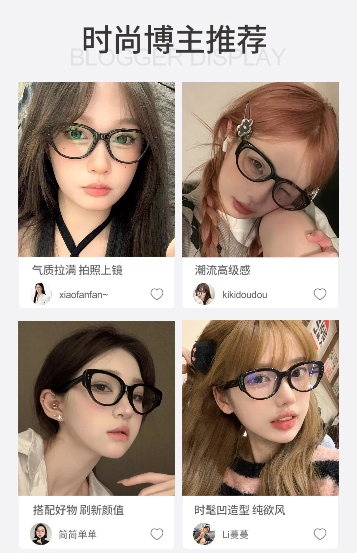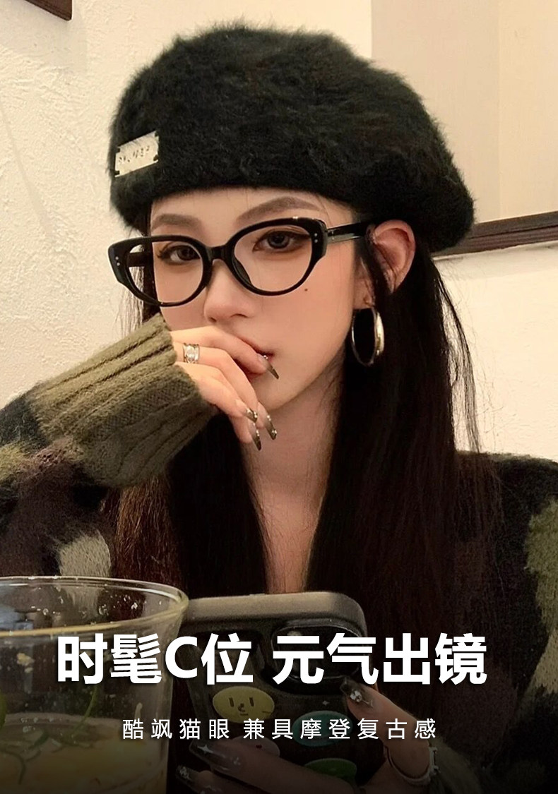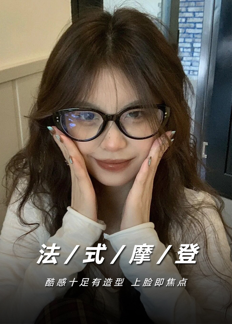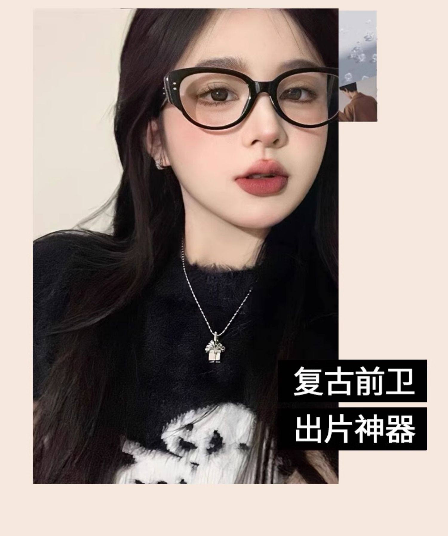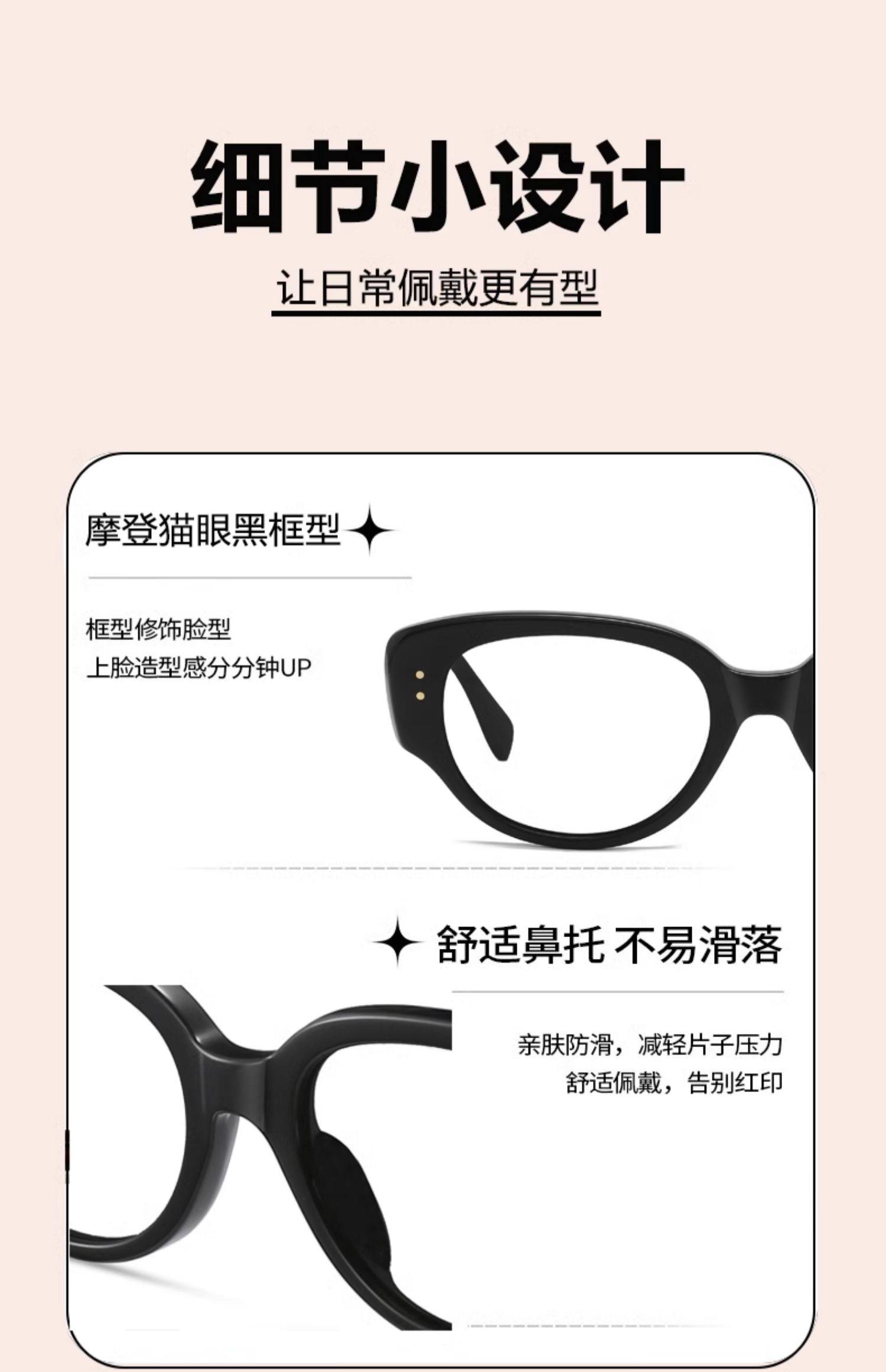 High-End Cat-Eye Black Frame Glasses for Women with Nearsightedness, Can Be Customized with Prescription Lenses, Make Large Faces Look Slimmer, a Makeup-Free Look Essential, Anti-Blue Light Eyeglass Frames