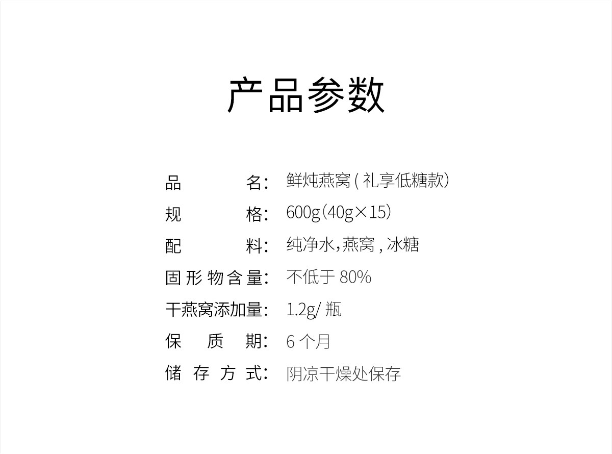 | Dried Bird's Nest Content | 1g (Inclusive)-2.5G (Exclusive) |