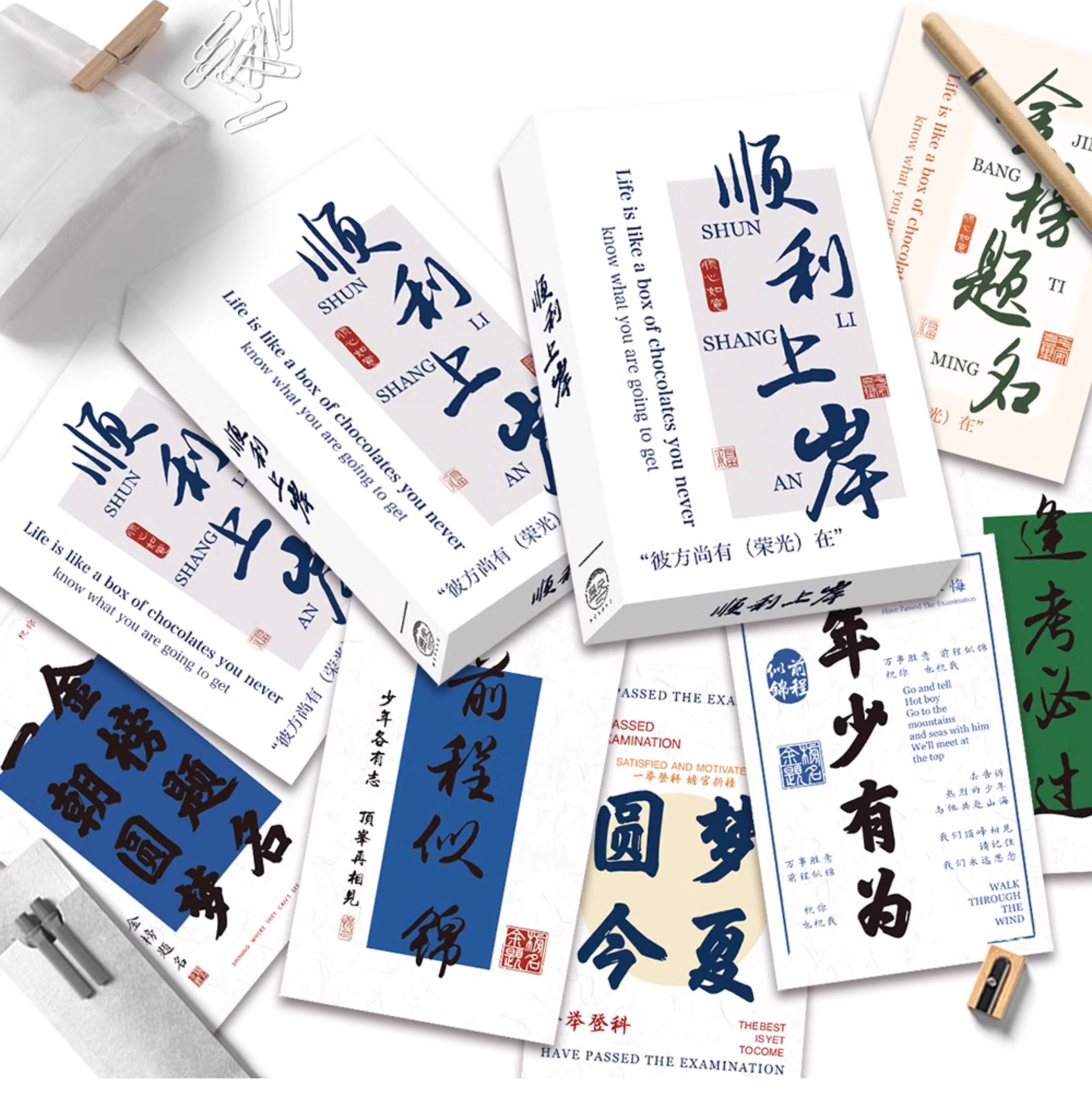 Postcards with Chinese Style for Academic Success, Motivational Wall Stickers, Wish Cards, Inspirational Messages, Classroom Blackboard Decorations, Blank Cards for Middle and High School Exams, Ancient Style Calligraphy for Students