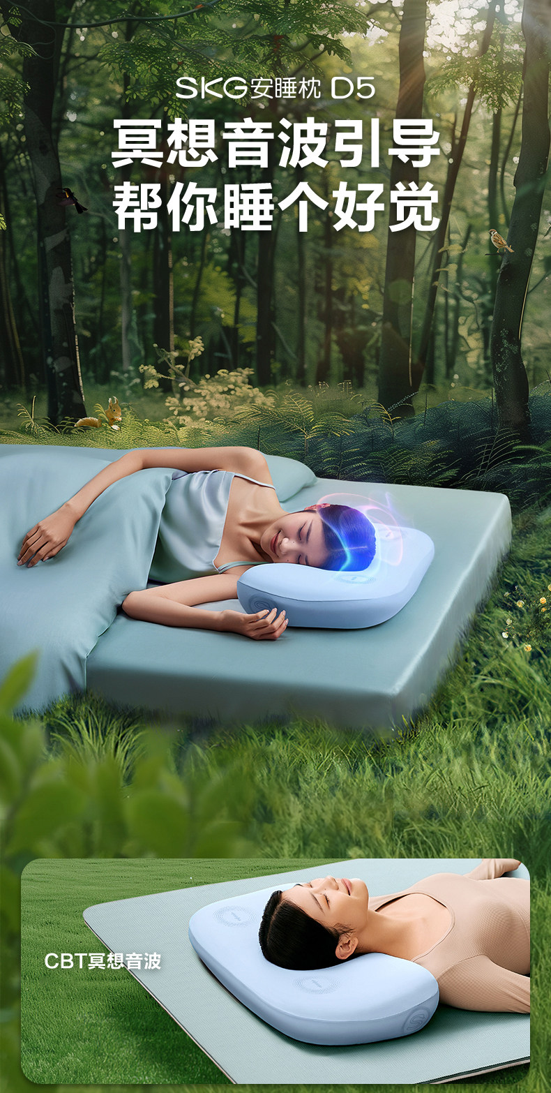 New Year's Gift Skg Pillow D5, a Special Pillow for Cervical Spine Support and Sleep, Memory Foam Slow Rebound Bluetooth Neck Protection Core