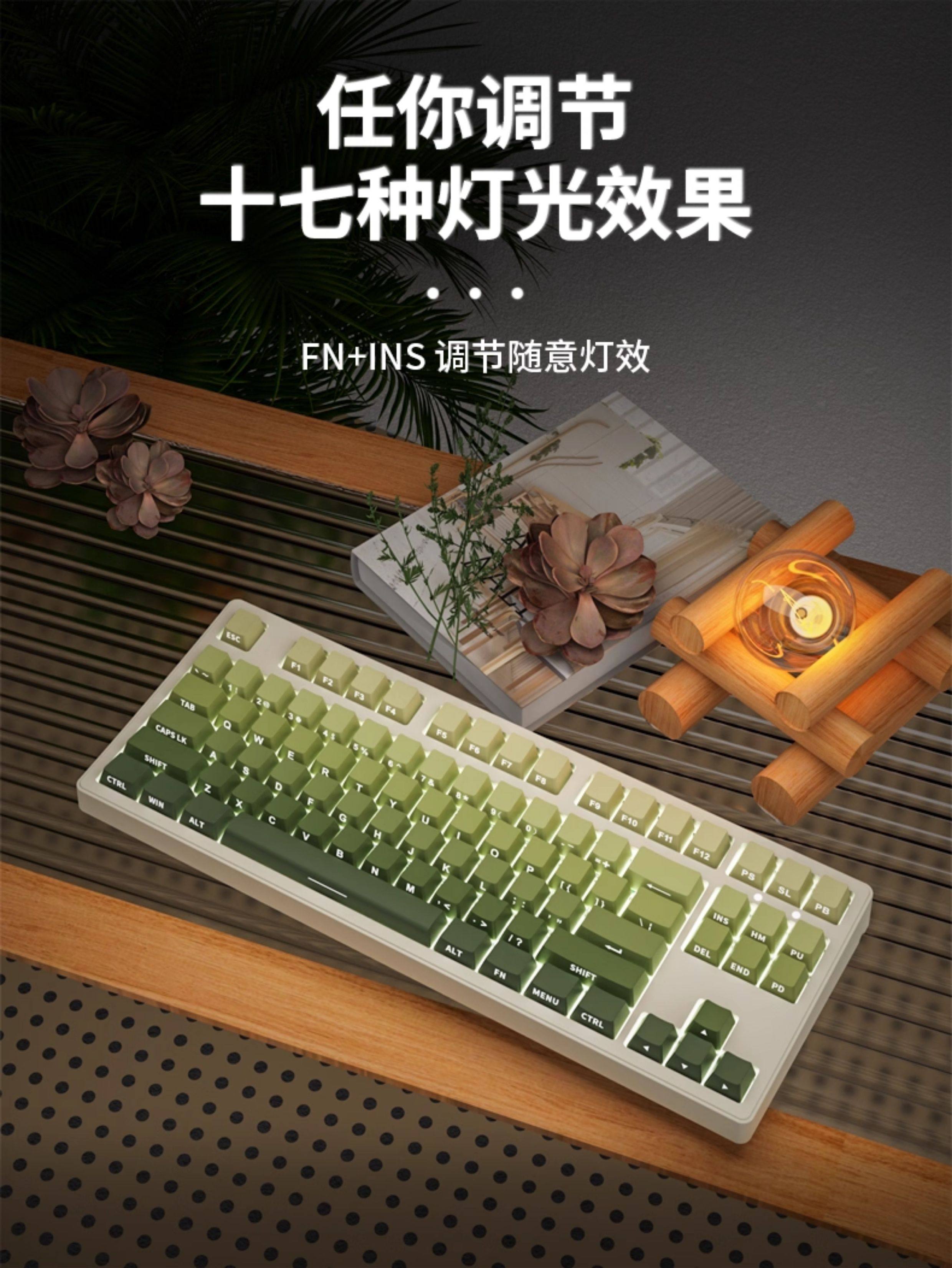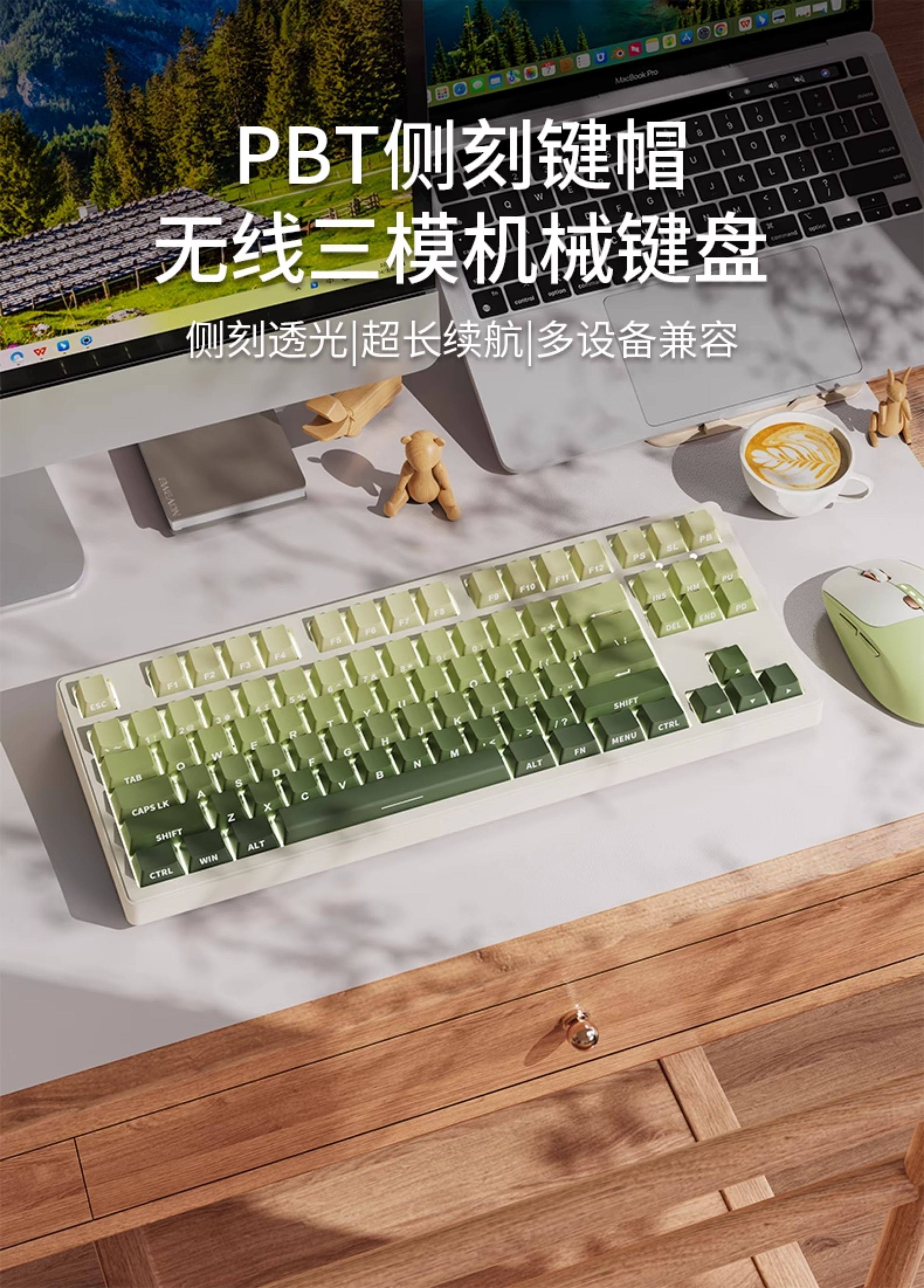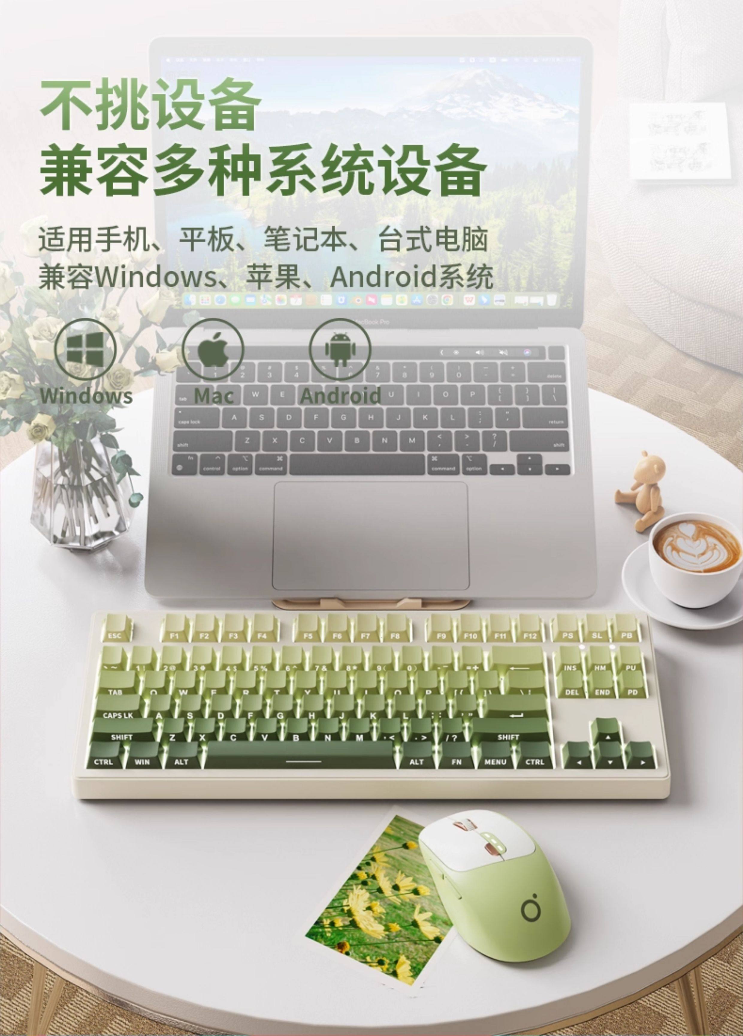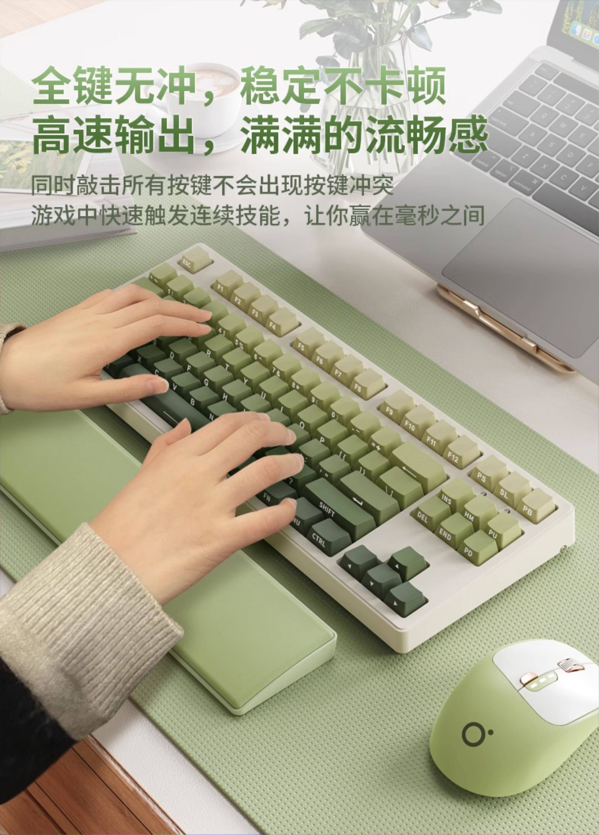 Forerunner Mt87 High-Quality Wireless Green Mechanical Keyboard and Mouse Set with Side Engraving for Girls, Suitable for Office and Gaming