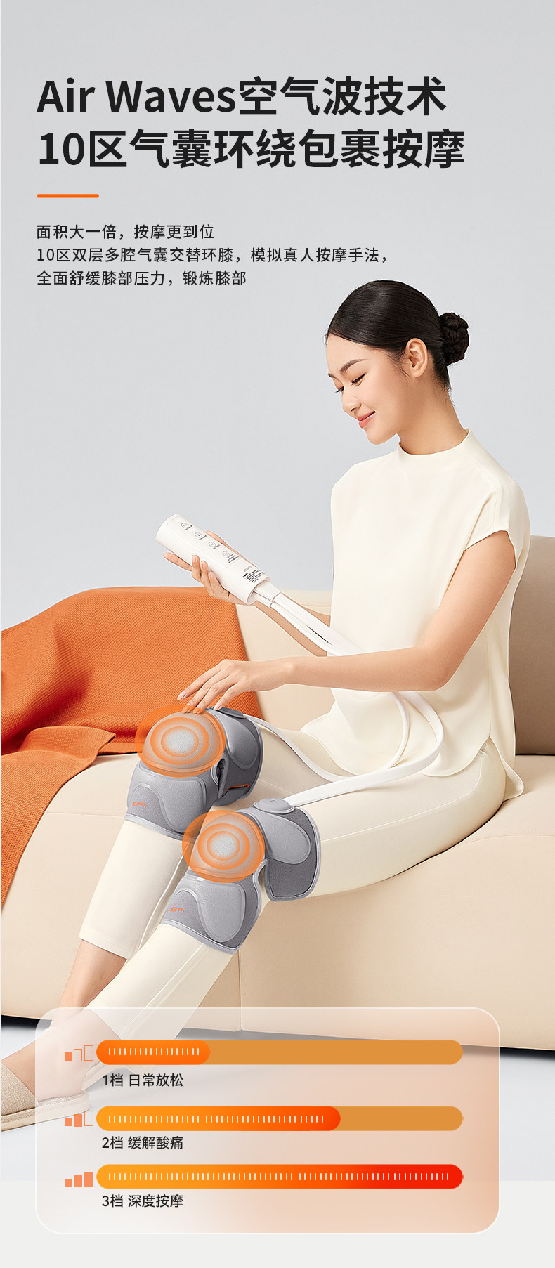 Air Wave Knee Massager with Airbags, Heating and Warmth for Knee Joint Pain, Old Cold Legs, Hot Compress Therapy Device