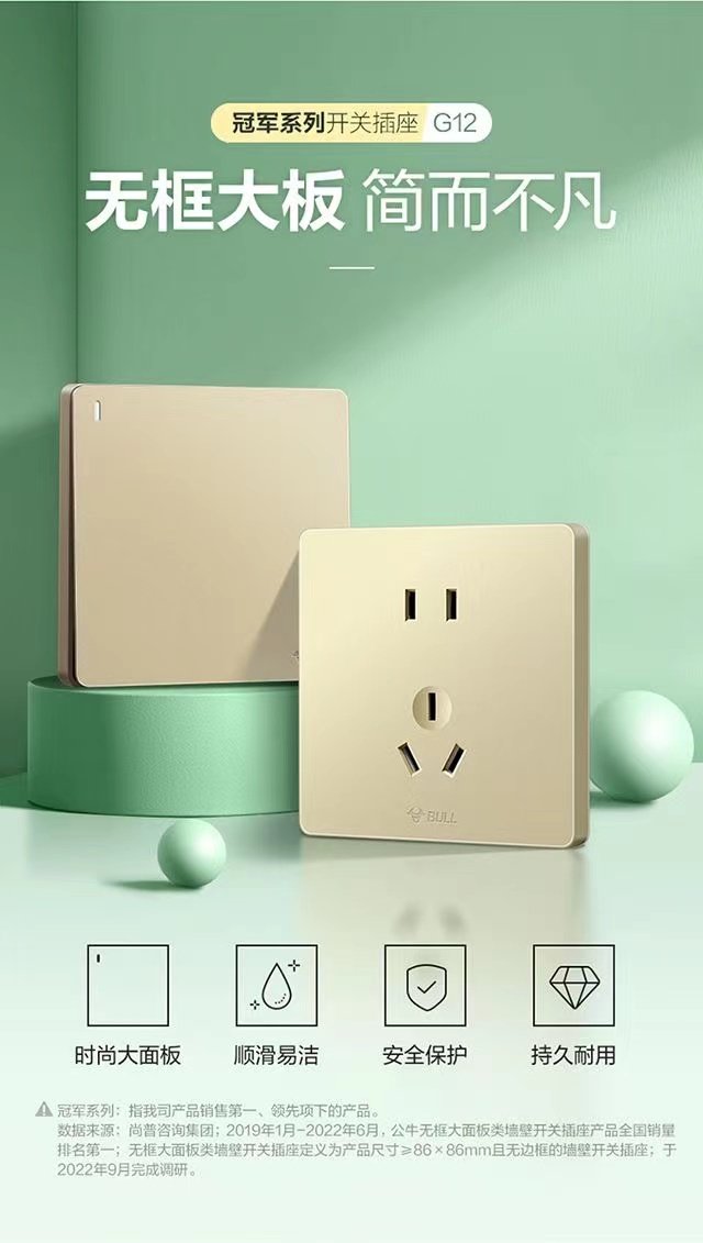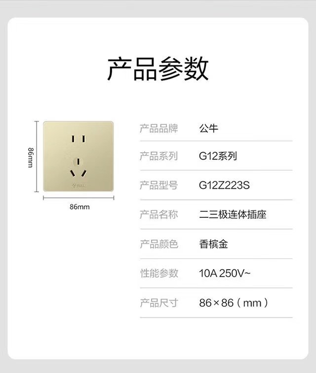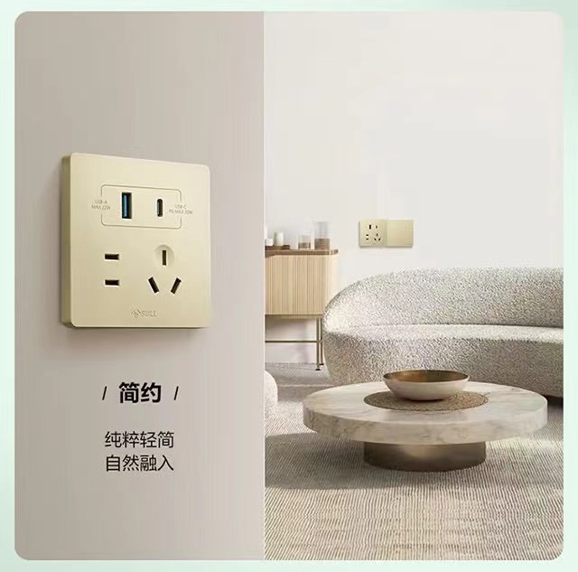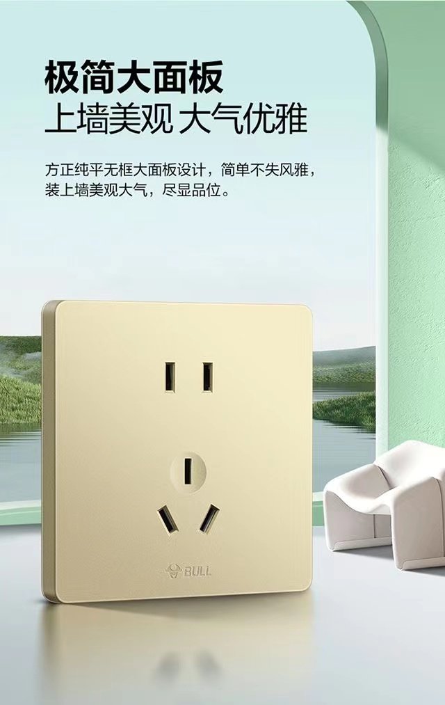 Bull G12.G37 Gold Beige Switch Socket Panel, Concealed Installation, Household Single Switch Five-Hole Air Conditioner Large Panel Socket