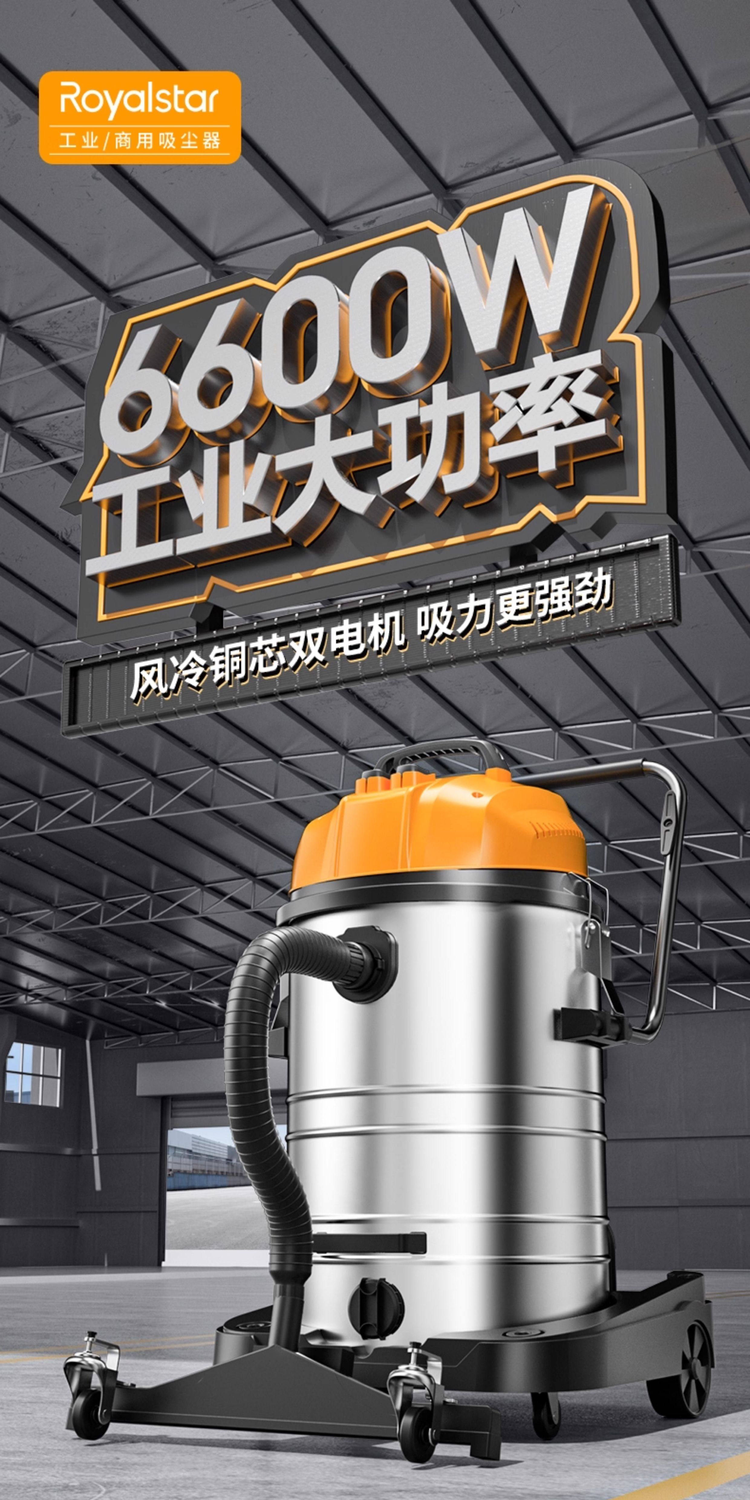 Royalstar High-Power Powerful Vacuum Cleaner for Industrial Use in Factories and Workshops, Large Commercial Dust Collection Machine with High Suction Power