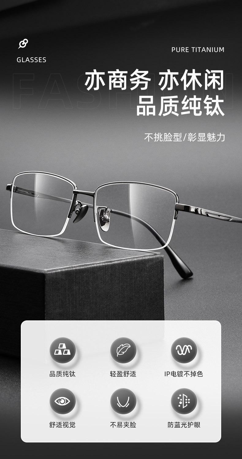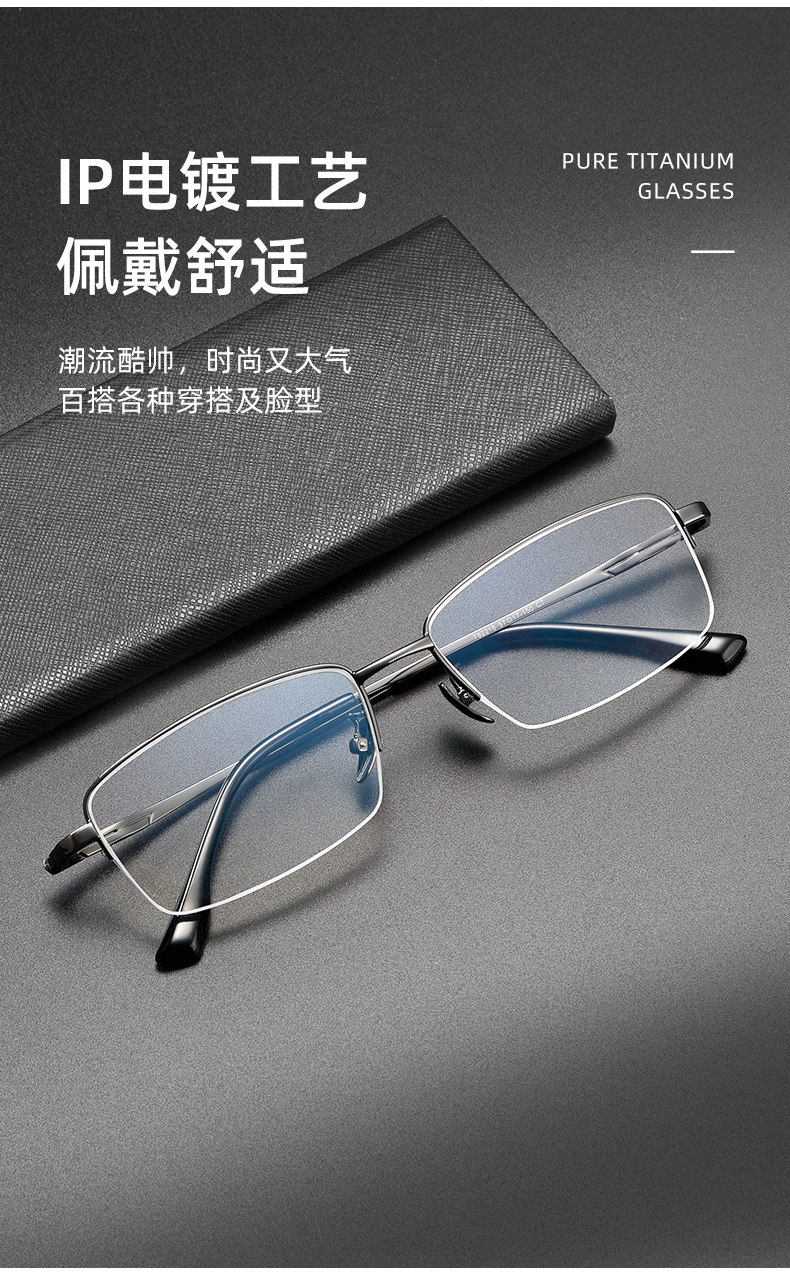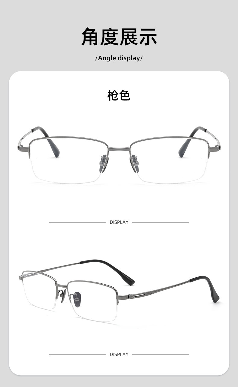 Ultra-Light Pure Titanium Half-Frame Myopia Glasses for Men, Can Be Equipped with Prescription Lenses, Men's Eyeglass Frames, Business Anti-Blue Light Glasses