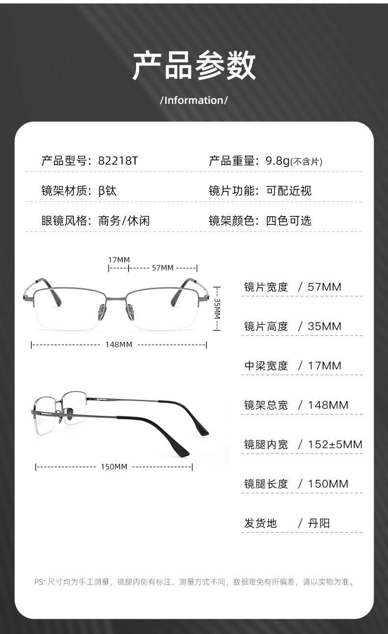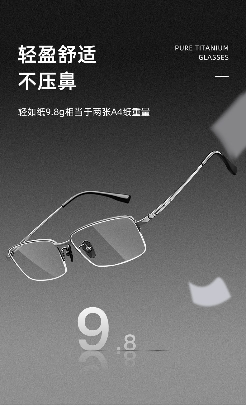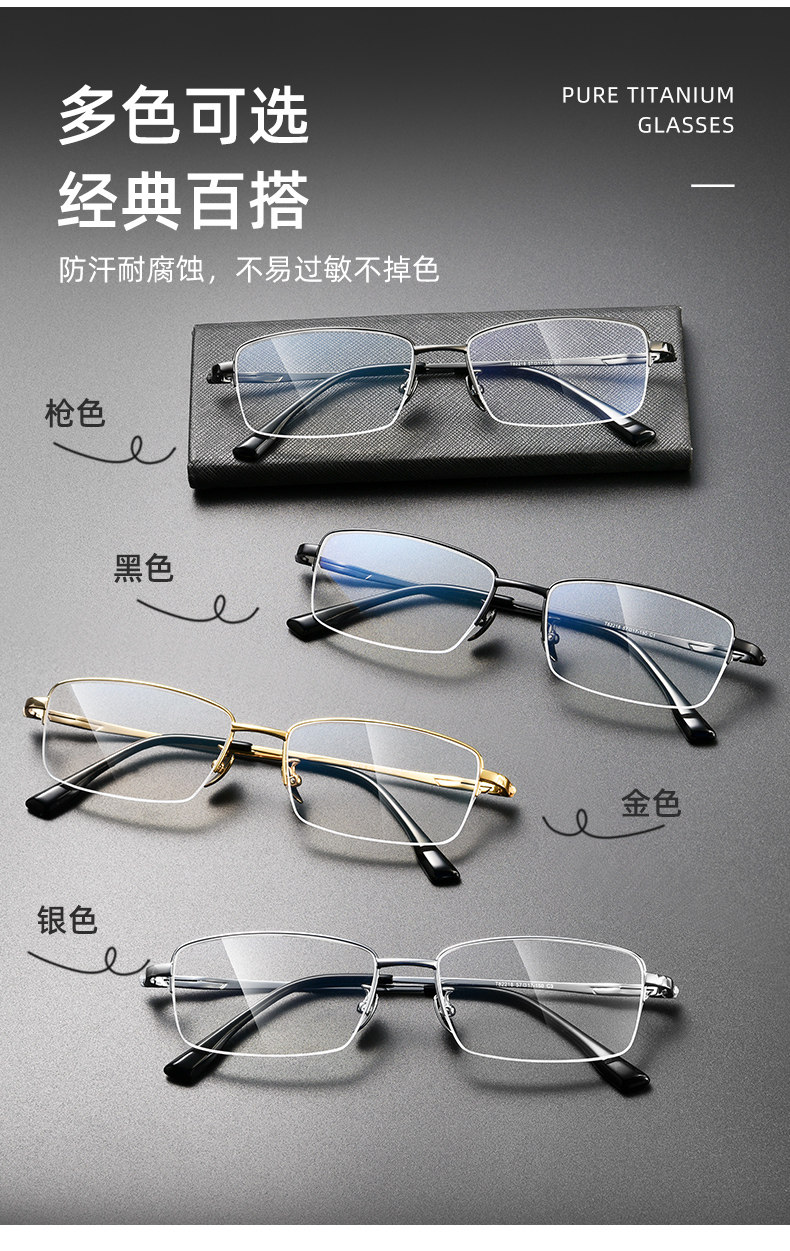 Ultra-Light Pure Titanium Half-Frame Myopia Glasses for Men, Can Be Equipped with Prescription Lenses, Men's Eyeglass Frames, Business Anti-Blue Light Glasses