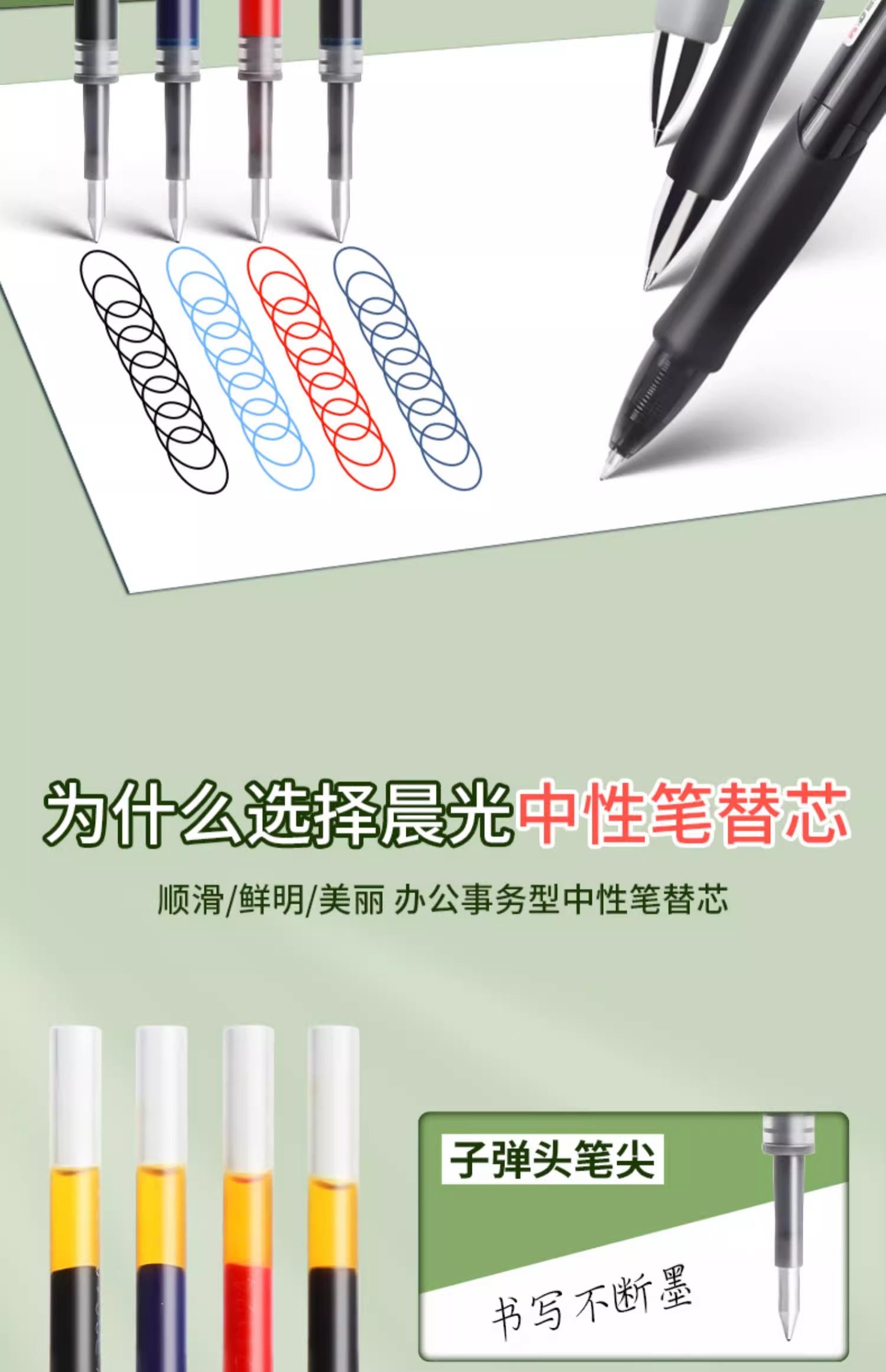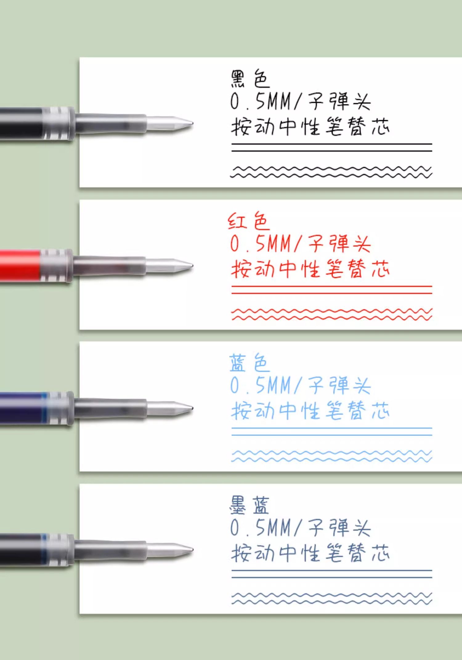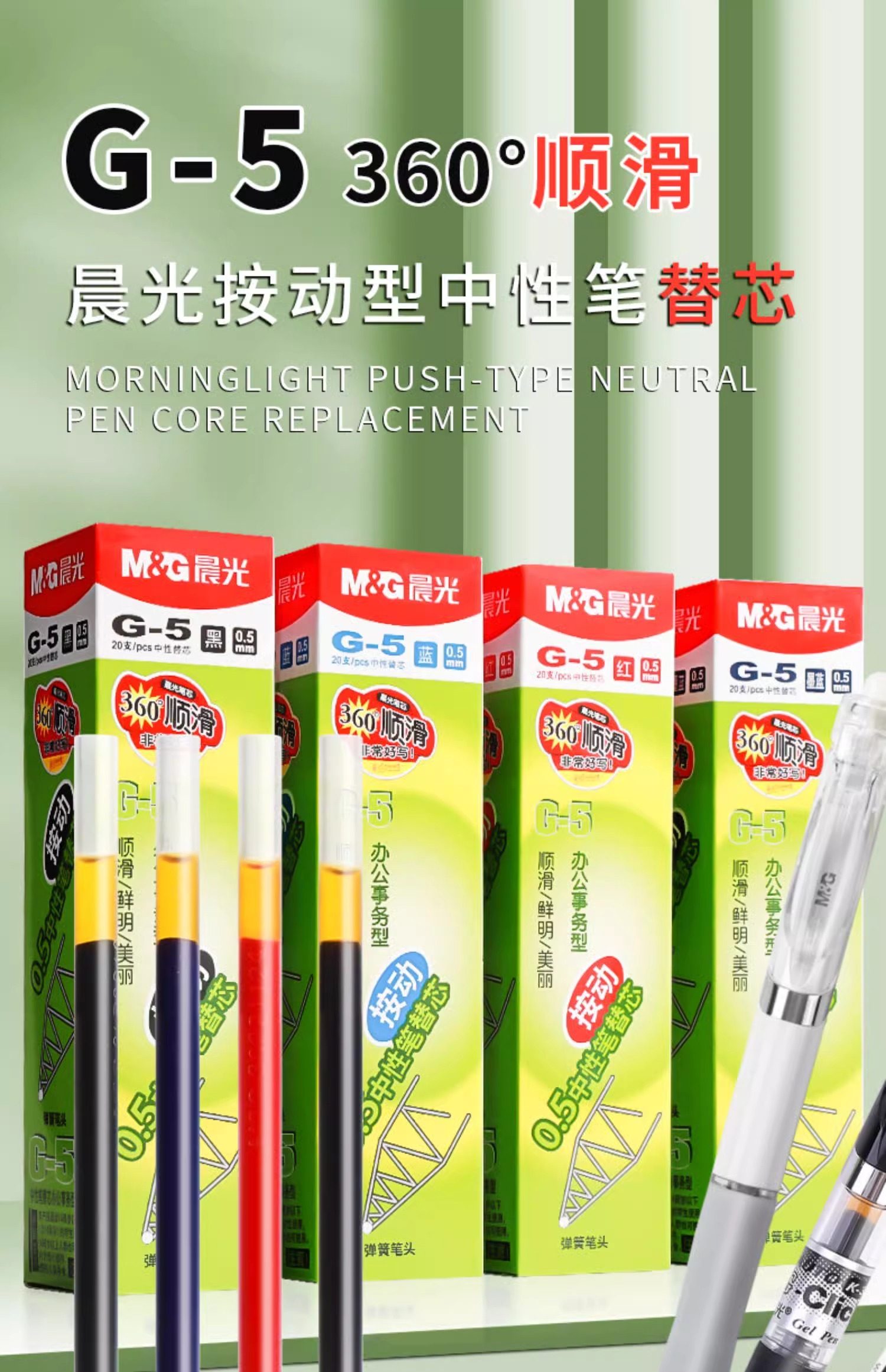 Morning Light Retractable Pen Refill G-5 Gel Pen Refill Carbon Pen Black Ink Red Ink Blue 0.5 Water-Based Pen Bullet Tip Retractable Signature Pen Refill K35 Replacement Refill Student Stationery Office Business