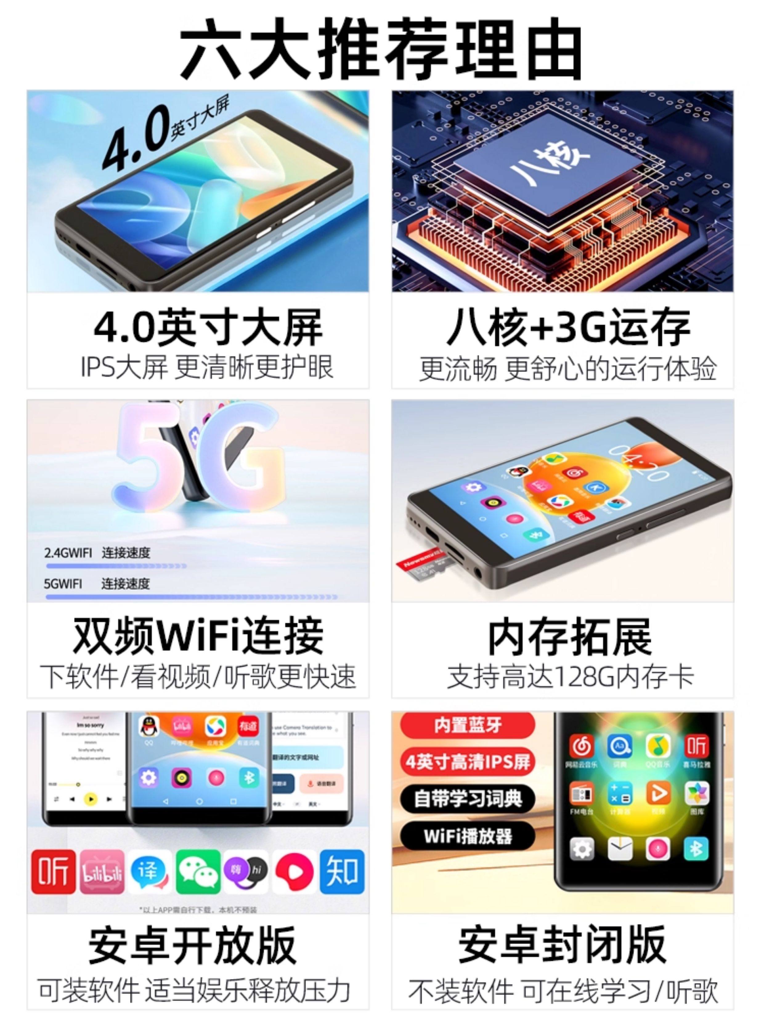 Newman Mp4/Mp5 Wifi Internet-Enabled P3 Walkman, Special Edition for High School Students, for Reading Novels and Music Playback