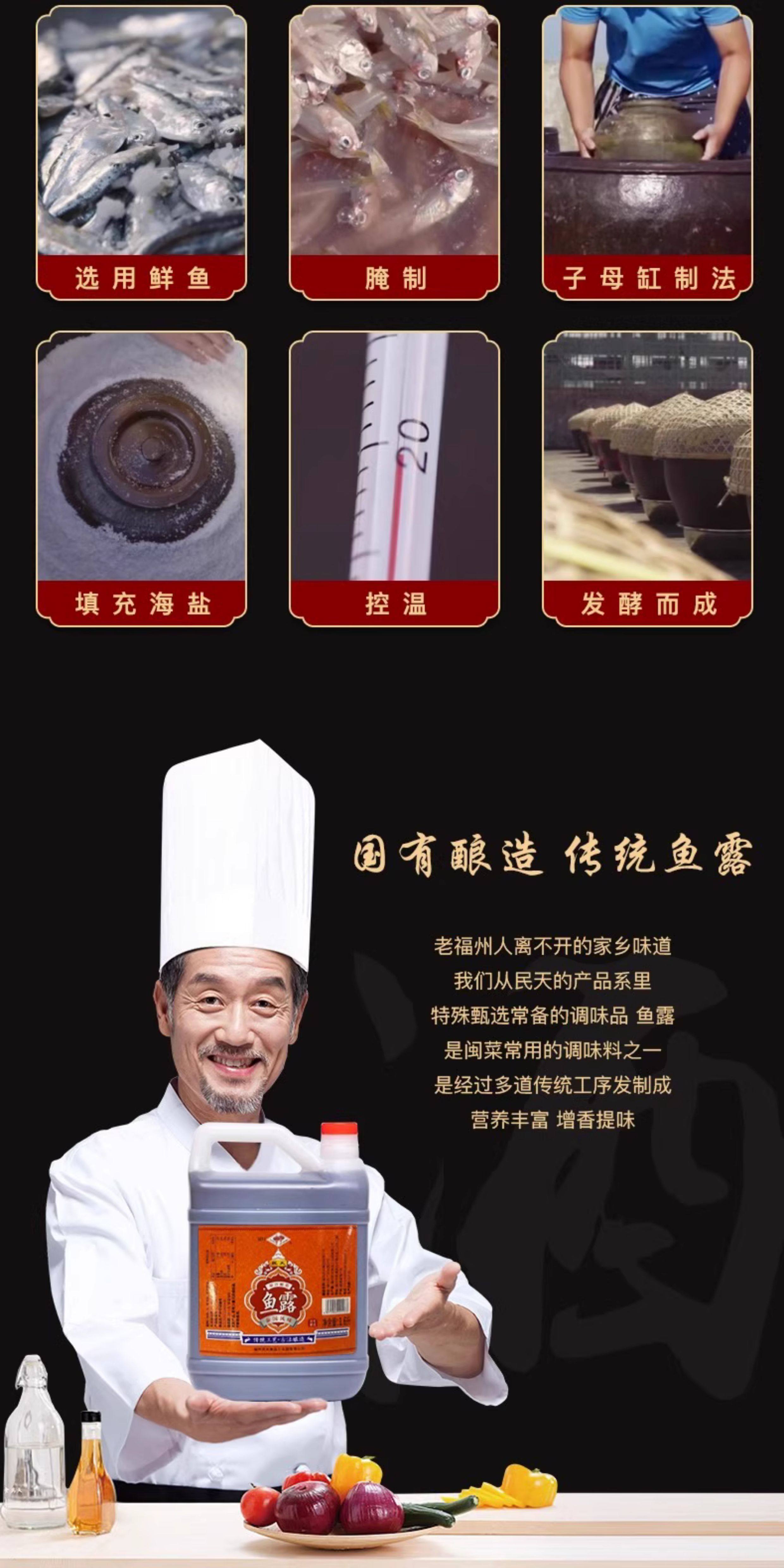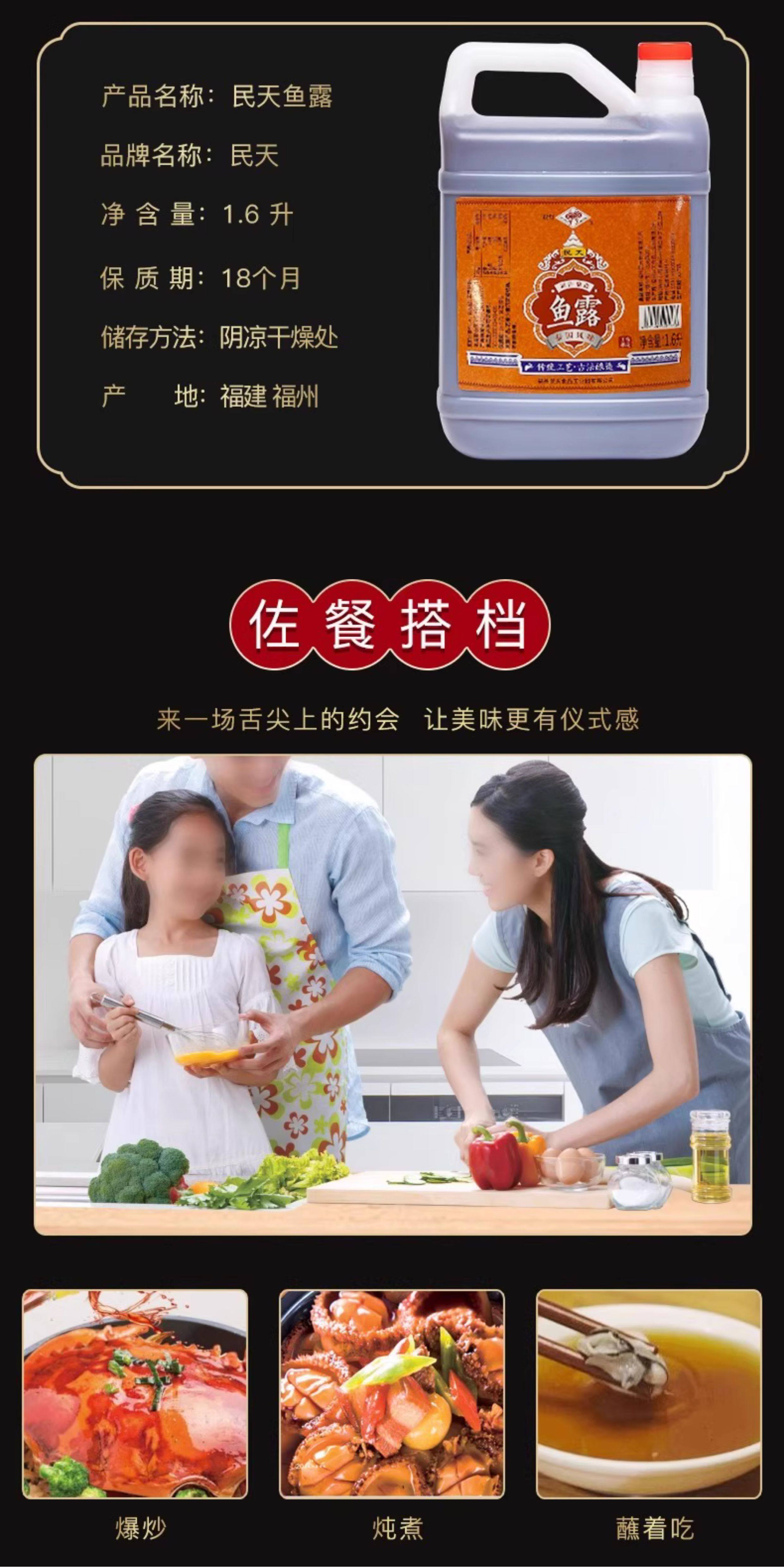 Fujian Fuzhou Specialty Min Tian Fish Sauce Seasoning Seafood Fish Soy Sauce Seasoning Sauce 1.6L Large Container Commercial Wholesale