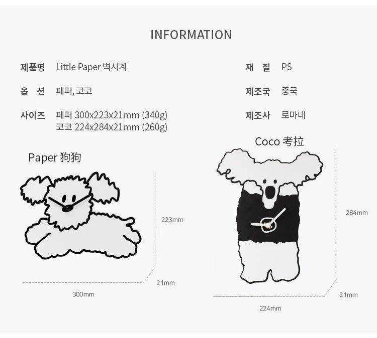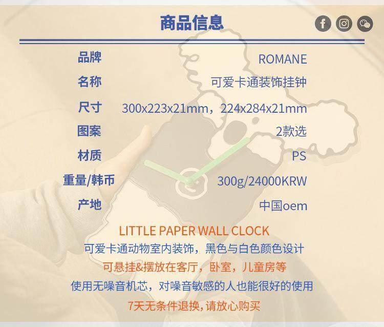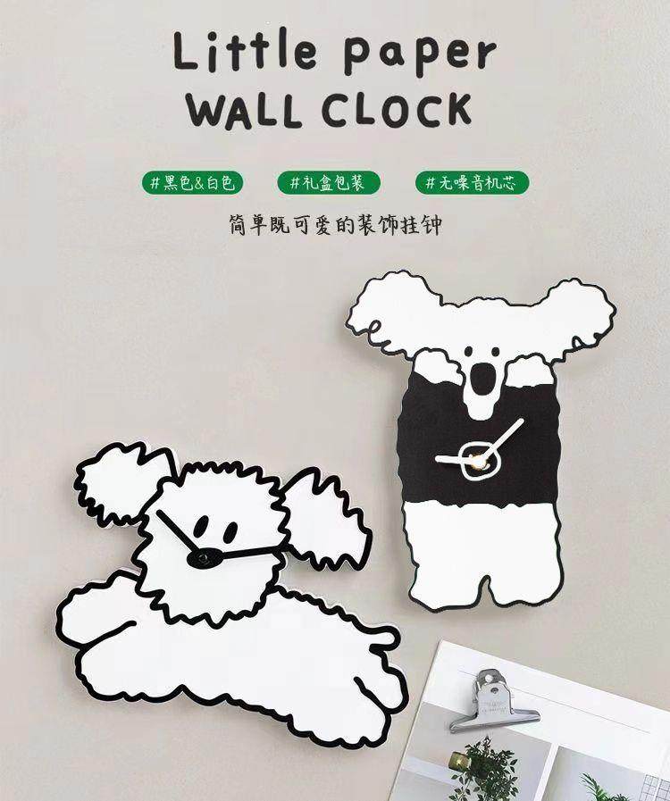 Korean Romane Cute Cartoon Indoor Decorative Wall Clock Black and White Simple Design for Children's Room Bedroom Silent Clock
