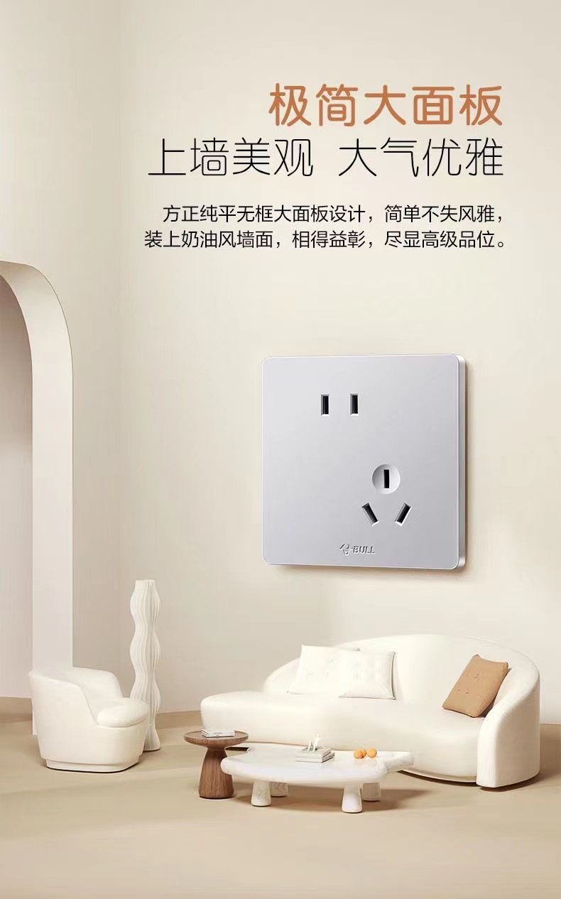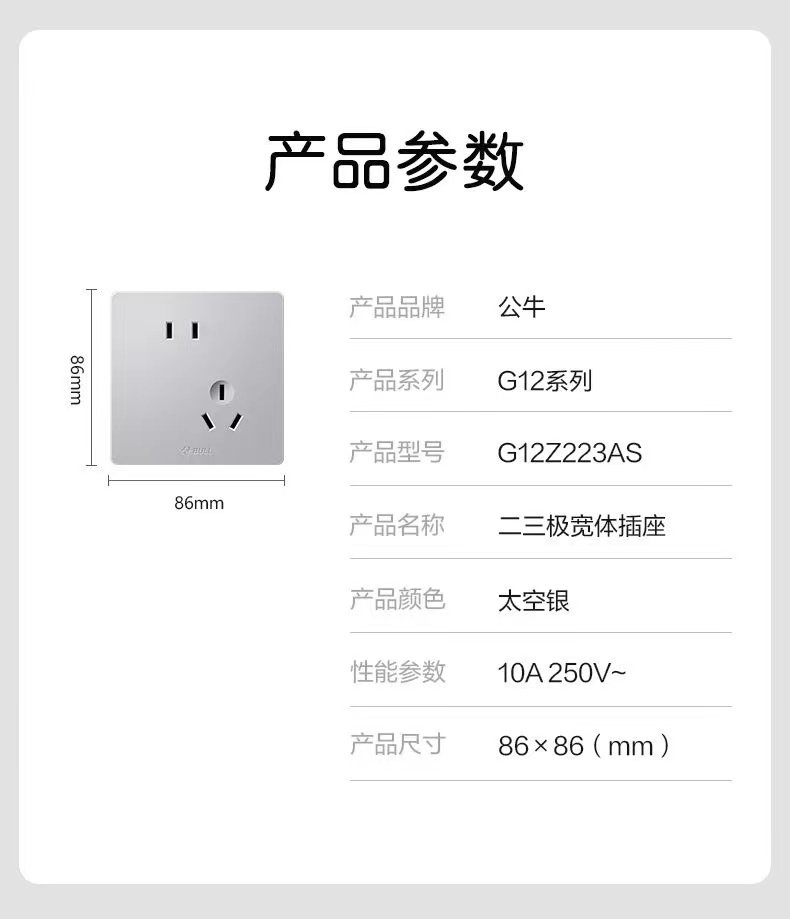Bull G12.G37 Space Silver Switch Socket Panel Two/Three-Prong Five-Hole Air Conditioner Plug 16A Concealed Installation for Home Use Large Surface