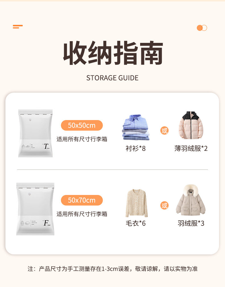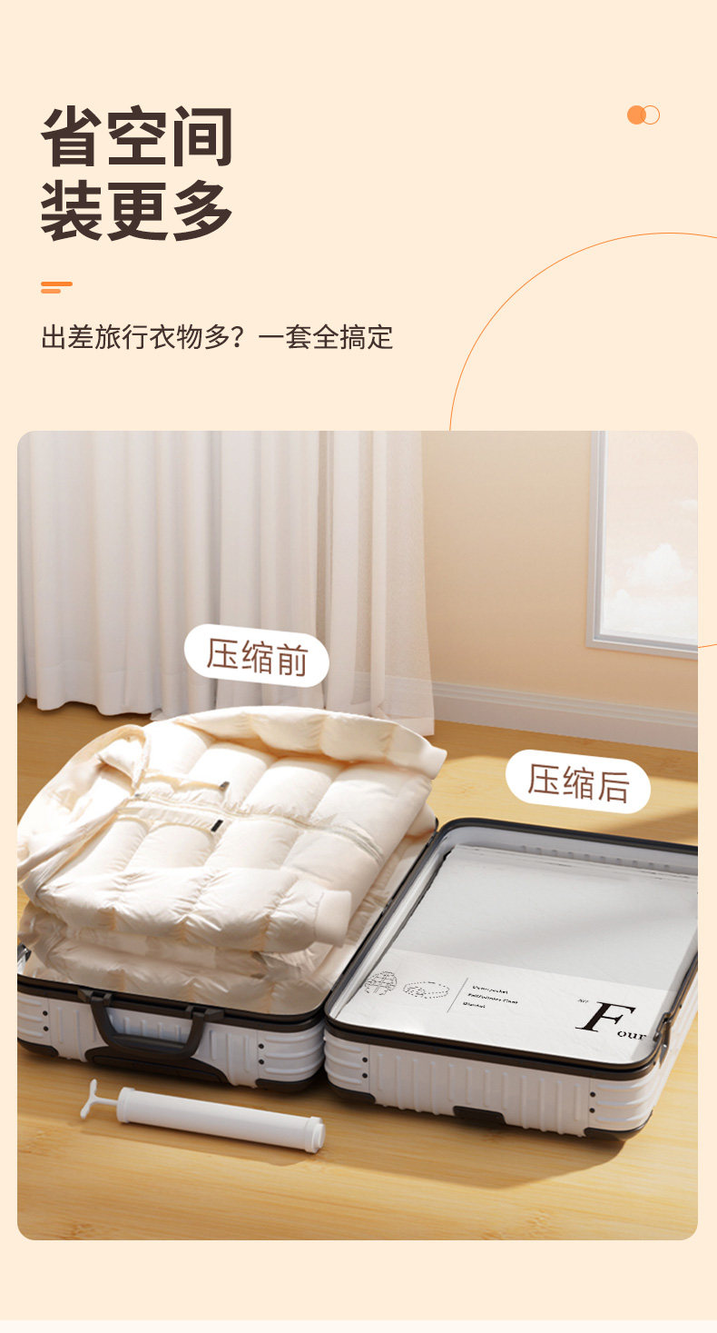 | Color Classification | 2 Pieces in 50*50cm[No Pump Model][20-22inch Suitcase],2 Pieces in 50*70cm[No Pump Model][24-26inch Suitcase],2 Pieces in 50*50cm[Hand Pump Model][20-22inch Suitcase],2 Pieces in 50*70cm[Hand Pump Model][24-26inch Suitcase],4 Pieces in 50*50cm[No Pump Model][20-22inch Suitcase],4 Pieces in 50*70cm[No Pump Model][24-26inch Suitcase],4 Pieces in 50*50cm[Hand Pump Model][20-22inch Suitcase],4 Pieces in 50*70cm[Hand Pump Model][24-26inch Suitcase],5 Pieces in 50*50cm[No Pump Model][20-22inch Suitcase],5 Pieces in 50*70cm[No Pump Model][24-26inch Suitcase],5 Pieces in 50*50cm[Hand Pump Model][20-22inch Suitcase],5 Pieces in 50*70cm[Hand Pump Model][24-26inch Suitcase],6 Pieces in 50*50cm[No Pump Model][20-22inch Suitcase],6 Pieces in 50*70cm[No Pump Model][24-26inch Suitcase],6 Pieces in 50*50cm[Hand Pump Model][20-22inch Suitcase],6 Pieces in 50*70cm[Hand Pump Model][24-26inch Suitcase],8 Pieces in 50*50cm[No Pump Model][20-22inch Suitcase],8 Pieces in 50*70cm[No Pump Model][24-26inch Suitcase],8 Pieces in 50*50cm[Hand Pump Model][20-22inch Suitcase],8 Pieces in 50*70cm[Hand Pump Model][24-26inch Suitcase],A Must-Have for Business Trips❤[2 Large and 2 Small Distribution Pumps]Store Clothes, Shoes, Toiletries,Special for Student Travel❤[3 Large and 3 Small Distribution Pumps]Store Clothes, Shoes, Toiletries,For Adult Travel Only❤[4 Large and 4 Small Distribution Pumps]Store Clothes, Shoes, Toiletries,Moving, Packing & Storage❤[5 Large and 5 Small Distribution Pumps]Store Clothes, Shoes, and Daily Necessities,Study Abroad Storage❤[6 Large and 6 Small Distribution Pumps]Store Clothes, Shoes, and Personal Belongings,Family Portrait on a Trip❤[8 Large and 8 Small Distribution Pumps]Store Clothes, Shoes, Toiletries |