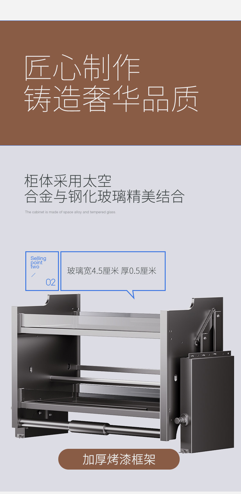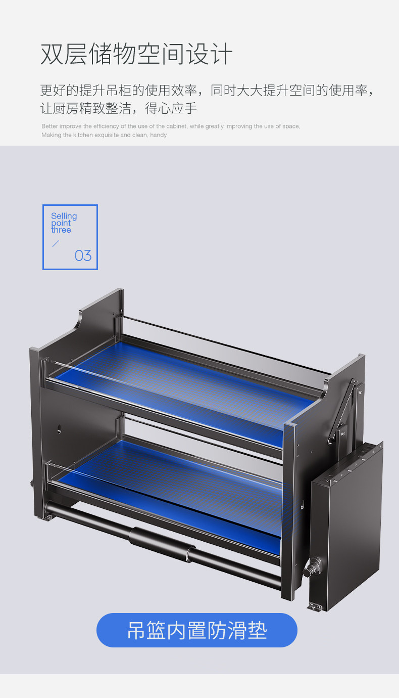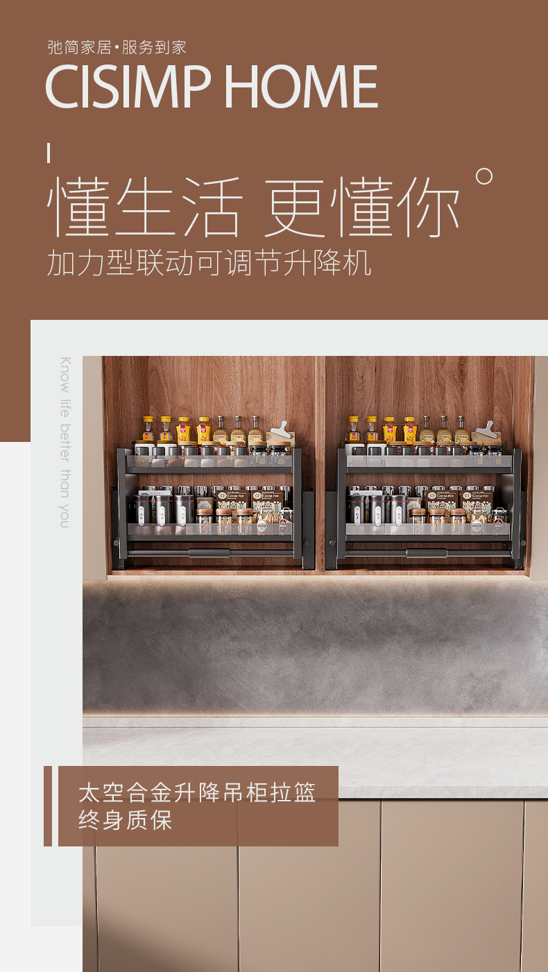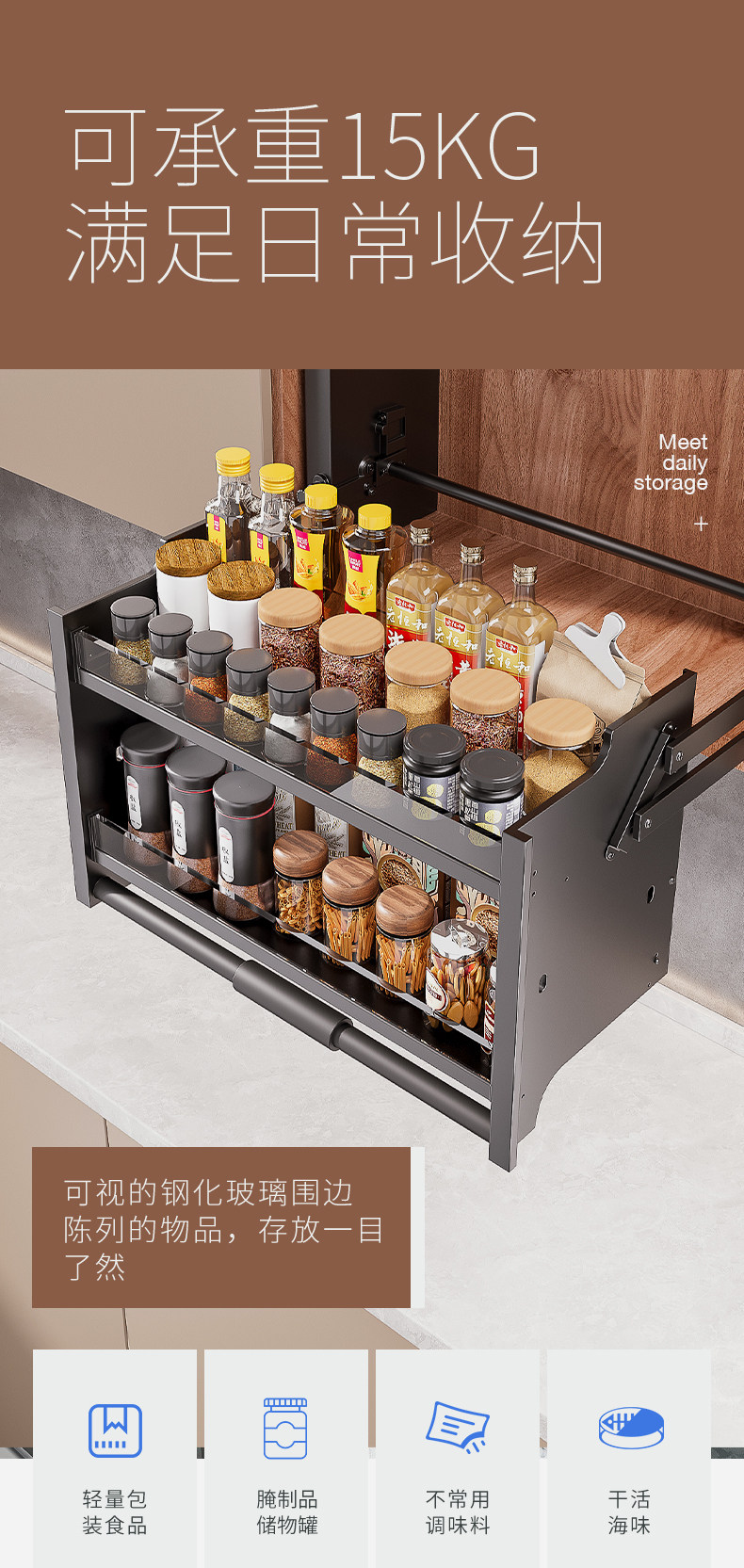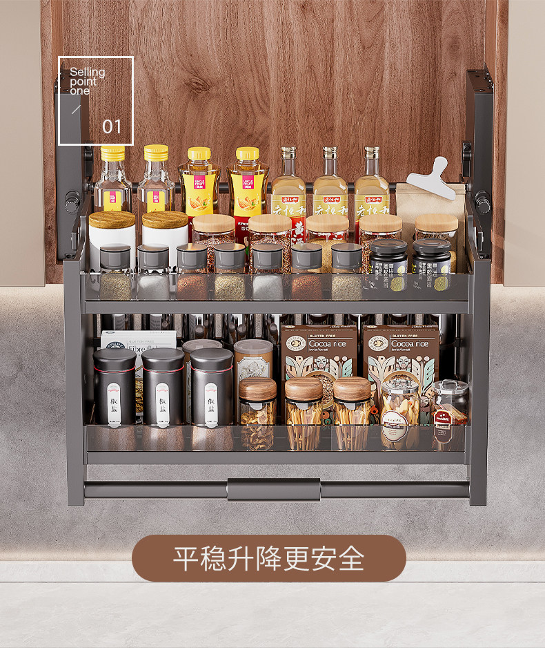 Kitchen Wall Cabinet Lift-Down Pull-Out Storage Cabinet Spice Lift Large Capacity Double-Layer Seasoning Storage Rack