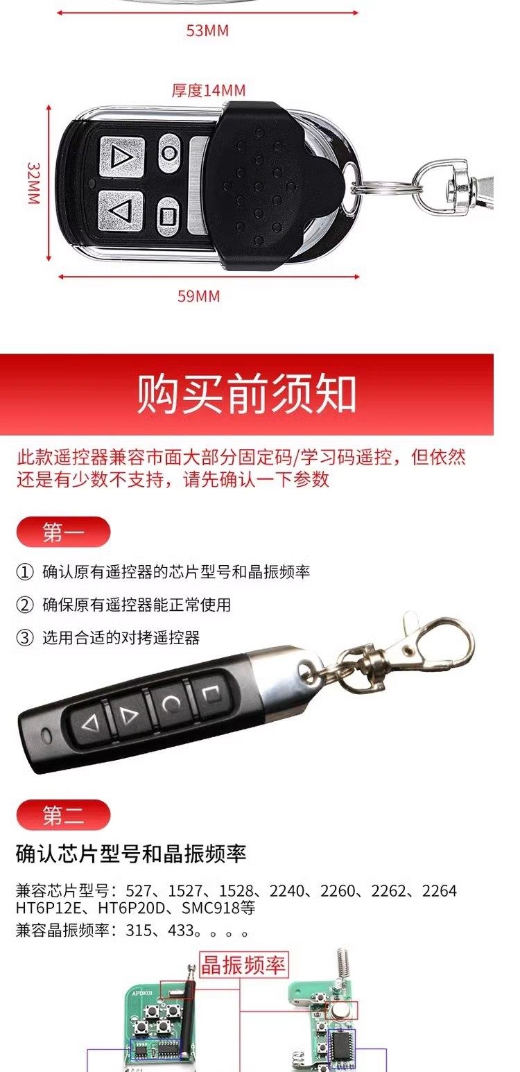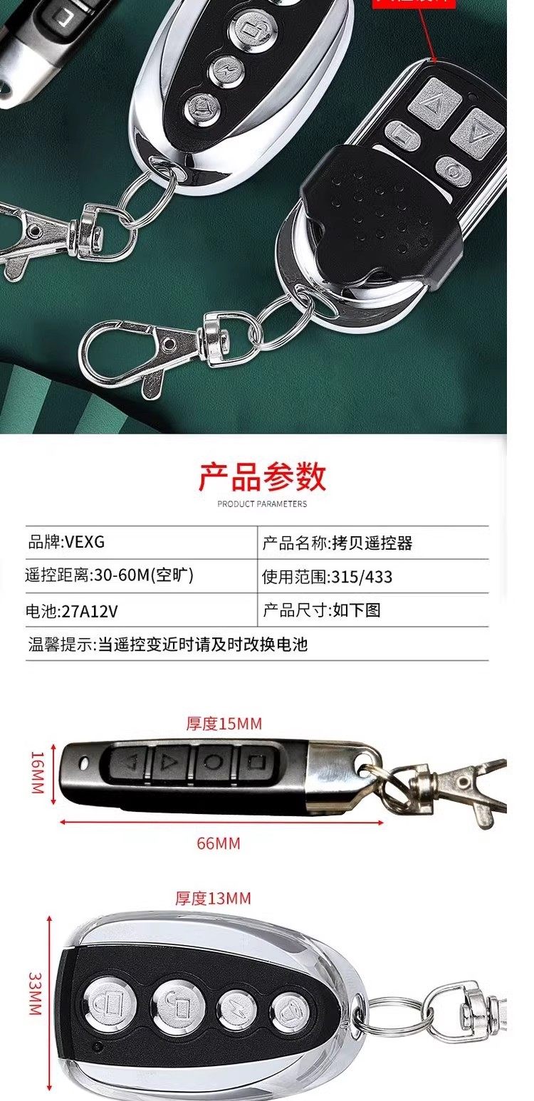 Learning-Type Copy Remote Control for Garage Doors, Electric Vehicle Access Control, and Gate Barriers, Duplicating Remote Control with 315433 Frequency
