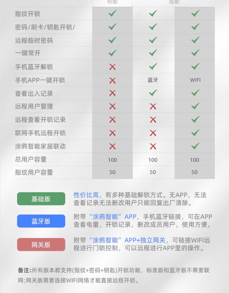 | Finish Color | 【↓↓2025 Newly Upgraded: Dual-Row Button System + Card Swipe + Remote Temporary Password↓↓】,【Upgraded Double-Row Button】Single Tongue Black + Standard Edition,Upgraded Double Row Buttons + [Single Tongue Gray] + Standard Version,【Upgraded Dual-Row Button】Split-Type Black + Standard Edition,【Upgraded Dual-Row Button】Split-Style Gray + Standard Edition,【Upgraded Dual-Row Button】All-In-One Black + Standard Edition,【Upgraded Dual-Row Button】All-In-One Gray + Standard Edition,[↓↓Bluetooth Version with App Management Is Easier to Use↓↓],[Tuya Smart App] Single Tongue Black + Bluetooth Version,[Tuya Smart App] Single Tongue Gray + Bluetooth Version,[Tuya Smart App] Split Black + Bluetooth Version,[Tuya Smart App] Split Gray + Bluetooth Version,[Tuya Smart App] All-In-One Black + Bluetooth Version,[Tuya Smart App] All-In-One Gray + Bluetooth Version,[↓↓The Gateway Version Can Be Controlled Remotely over the Internet↓↓],[Network Remote Control Management] Single Tongue Black + Gateway Version,[Network Remote Control Management] Single Tongue Gray + Gateway Version,【Remote Network Management】Split-Type Black + Gateway Edition,【Remote Network Management】Split-Type Gray + Gateway Edition,【Networked Remote Management】All-In-One Black + Gateway Edition,【Networked Remote Management】All-In-One Gray + Gateway Edition,[Single Fingerprint Version]-Single Tongue Version,[Single Fingerprint Version]-Split Version,[Single Fingerprint Version] All-In-One Version |