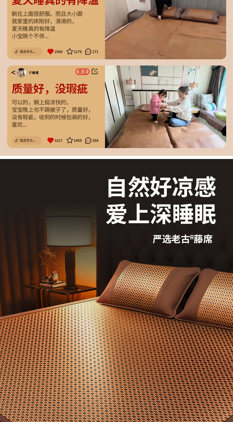 | Color Classification | 【Bonus 10】Share Beautiful Pictures + Interact with Everyone,[Hot Sale]❄️Skin-Friendly Rattan Mat|Reversible - No Pillowcase,[Hot Sale]❄️Skin-Friendly Rattan Mat|Reversible - with Pillowcase,[Basic Model]❄️Moisturizing Rattan Mat|Reversible - No Pillowcase,[Hot Selling Model]❄️Mugwort Rattan Mat|Reversible - with Pillowcase,[Classic Style]❄️Mugwort Grass Rattan Mat|Encrypted and Thickened - No Pillowcase,[Classic Style]❄️Mugwort Grass Rattan Mat|Encrypted and Thickened-With Pillowcase,[Store Model]❄️Deep Mountain Old Vine Mat|Encrypted and Thickened - No Pillowcase,[Store Model]❄️Deep Mountain Old Vine Mat|Encrypted and Thickened-With Pillowcase,[Store Model]❄️Deep Mountain Original Rattan Mat|Encrypted and Thickened - No Pillowcase,[Store Model]❄️Deep Mountain Original Rattan Mat|Encrypted and Thickened-With Pillowcase,[Collection]❄️Natural Rattan Mat|Encrypted and Thickened-With Pillowcase,[Hot Shopkeeper Recommendation]❄️Mugwort Rattan Mat|Upgraded and Thickened-With Pillowcase,[Top Golden Needle Award]❄️Caiyun Ancient Rattan Mat|Extra Thick - with Pillowcase,❄️——Premium Bed Sheet Collection——❄️,[Full Surround of Fitted Sheets]❄️Deep Fir Rattan Mat|Encrypted and Thickened-With Pillowcase,[Full Surround of Fitted Sheets]❄️Mugwort Rattan Mat|Thickened Mosquito Repellent-With Pillowcase,[Full Surround of Fitted Sheets]❄️Herbal Rattan Mat|Thickened and Breathable-With Pillowcase,[Full Surround of Fitted Sheets]❄️Shushan Rattan Mat|Thickened and Breathable-With Pillowcase,[Full Surround of Fitted Sheets]❄️Yushan Old Rattan Mat|Thickened and Breathable-With Pillowcase |