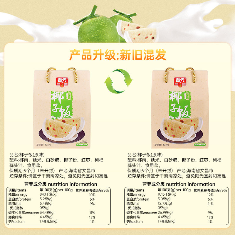 | Taste | Original Flavor 538g,Original Flavor 538g*2,Original Flavor 538g + Wenchang Chicken Flavor 538g,Mango Sticky Rice 538g*1,700g Steamed Coconut Rice Gift Box (Free 2 Bags of 14g Pure Coconut Powder) |