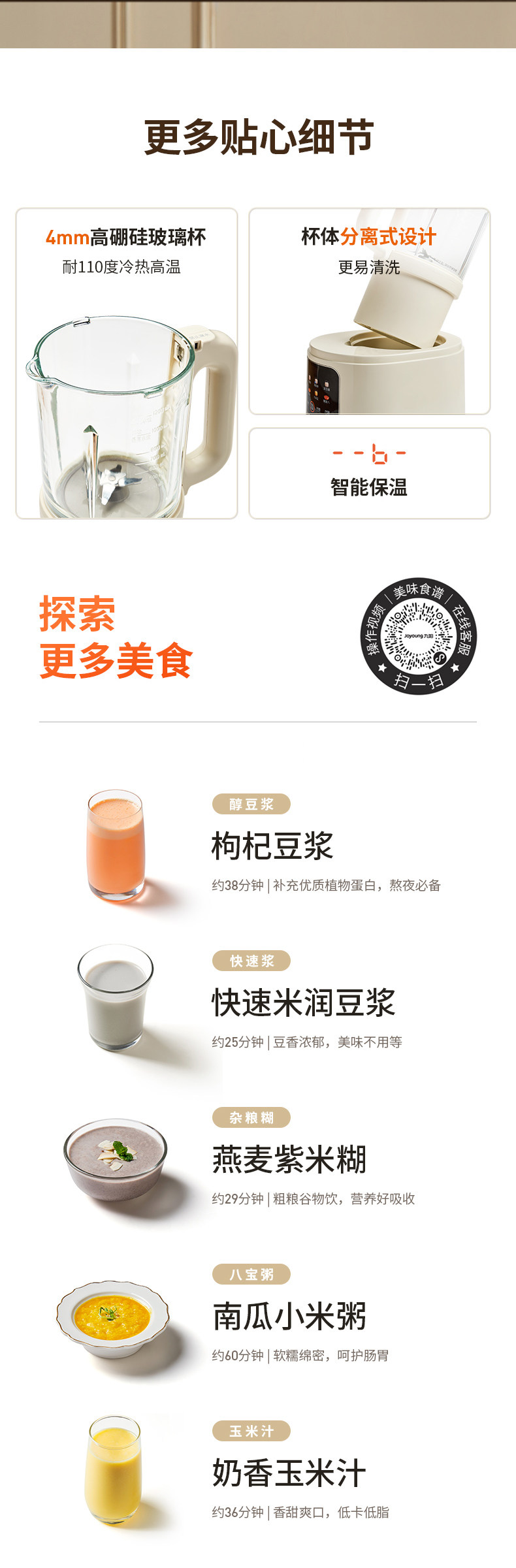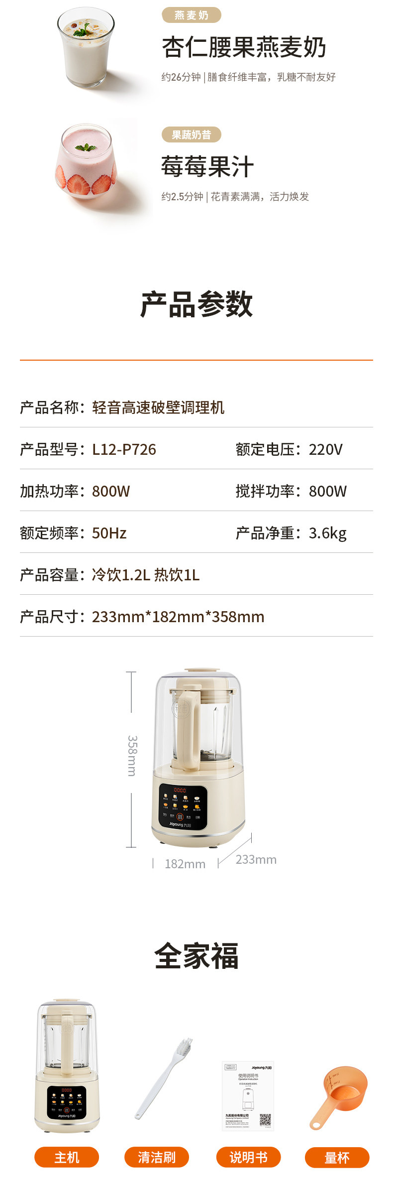 | Basic Functions | Milkshake,Crushed Ice,Heating,Drying,Soy Milk,Automatic Cleaning,Appointment,Insulation,Cooking,Complementary Food,Rice Cereal,Juicing,Intelligent Temperature Control |