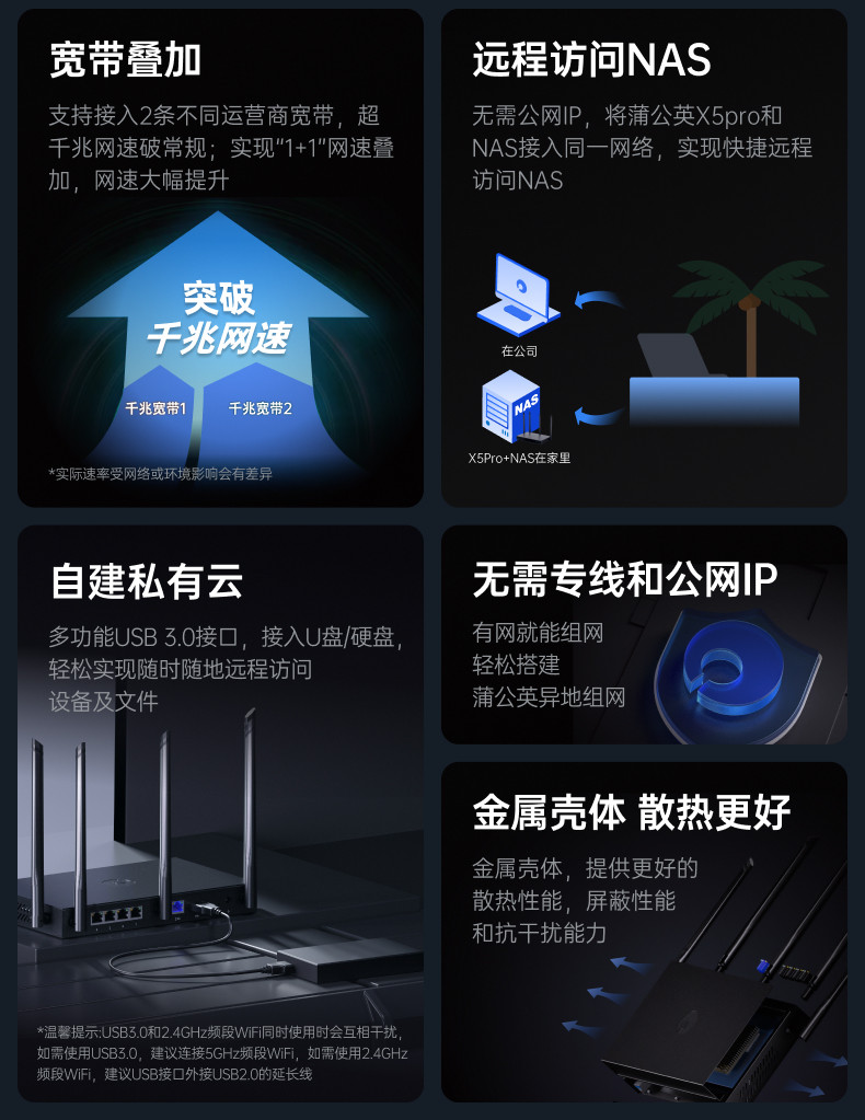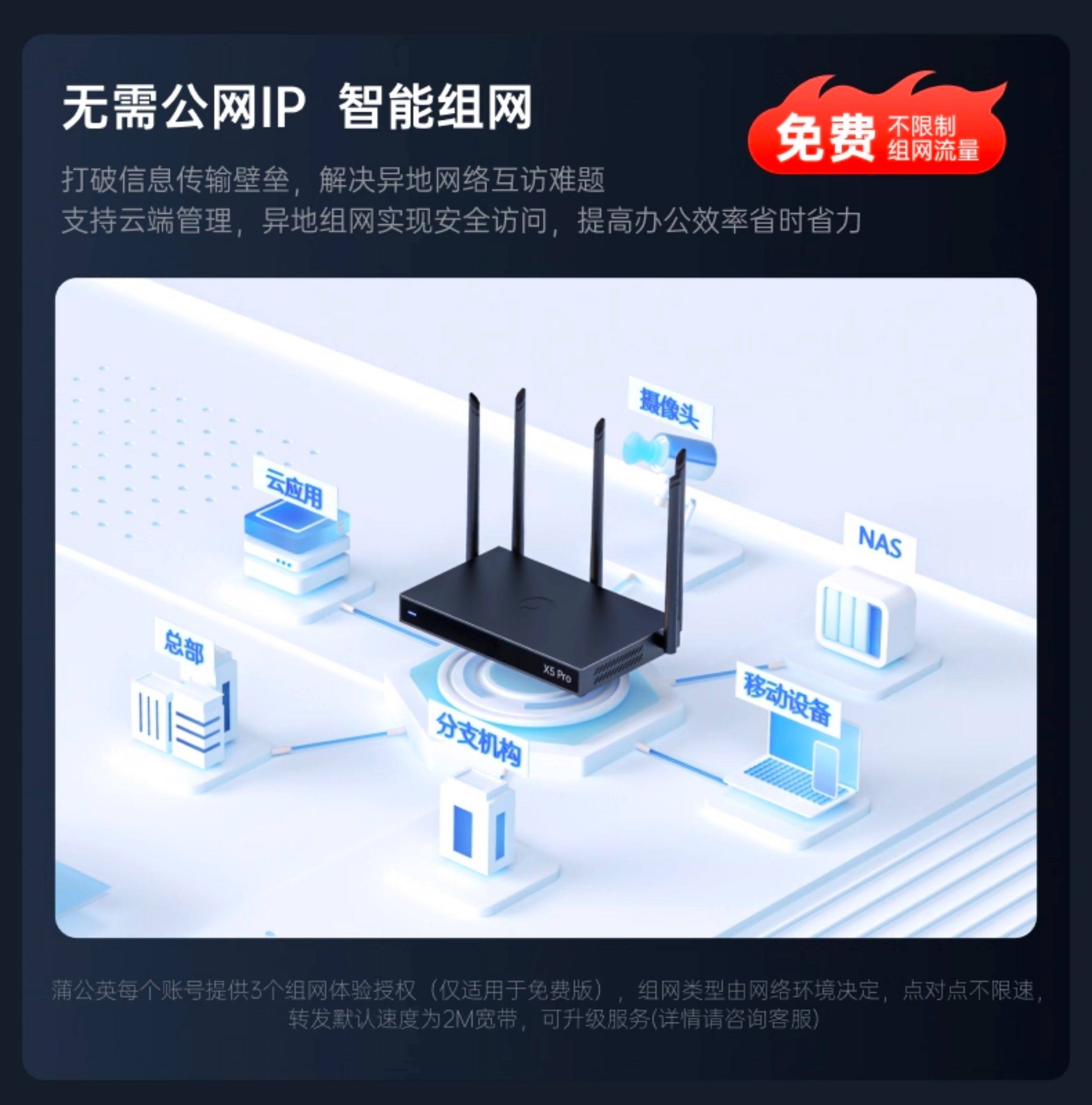 Dandelion Enterprise-Grade Soft Router X5Pro Dual Wan Ports 2.5g Gigabit Ax3000 Dual-Band Off-Site Networking Wifi6 Internal and External Network Penetration Medical Insurance Line Nas Video Surveillance Remote Access