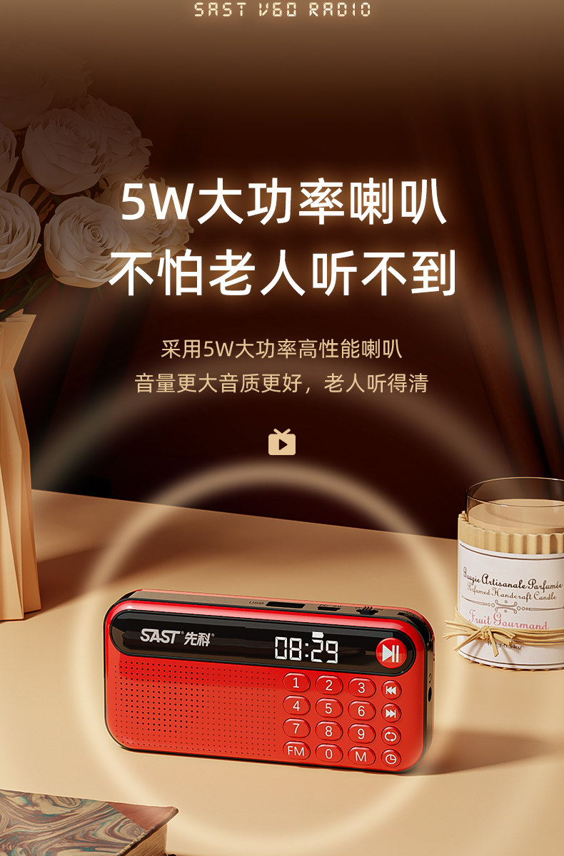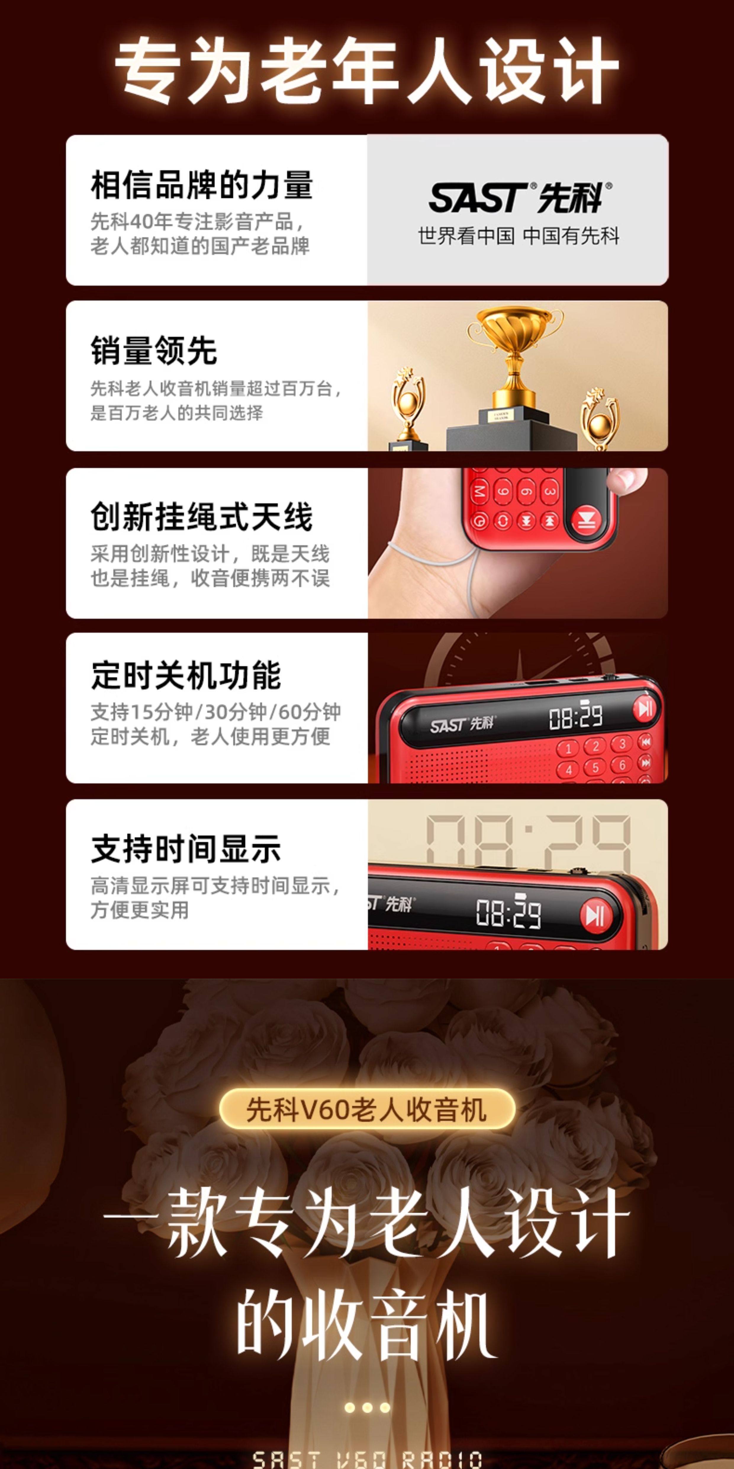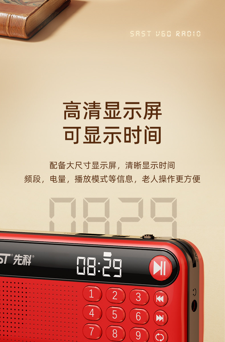 Xianke V60 Radio for the Elderly, Music Player for Seniors, Portable Radio, 2025 New Model, Rechargeable Semiconductor
