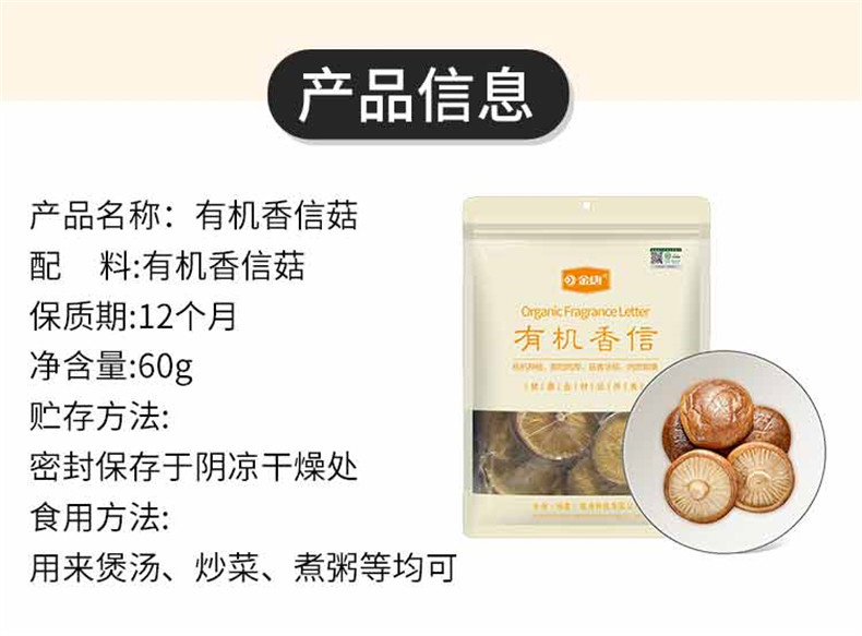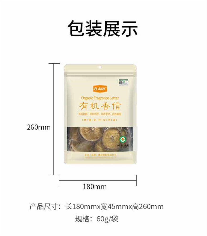 Jintang Organic Shiitake Mushrooms 60g*1 Bag, Carefully Selected from Qingyuan, Organically Grown, No Stem, Stronger Aroma