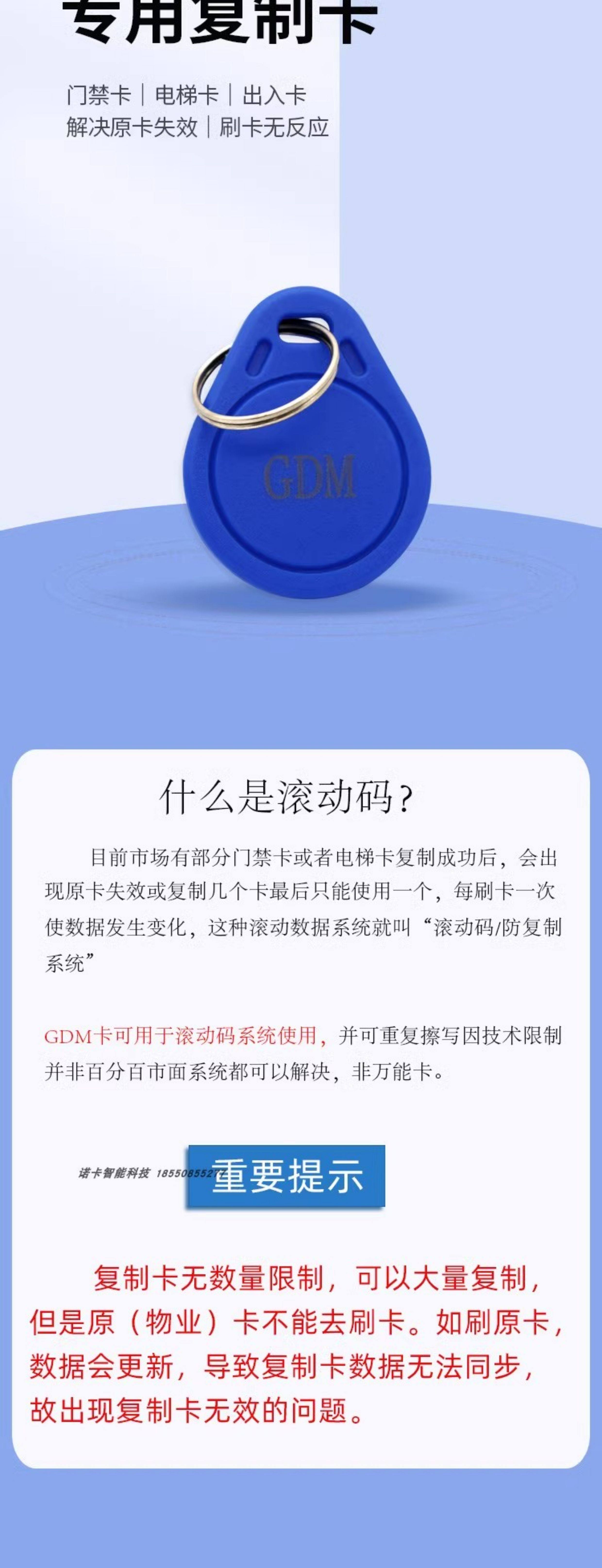 13.56Mhz Rolling Code Gtu Gdm Elevator Card Rewritable and Copyable, Universal Ic M1 Blank Keychain for Residential Areas
