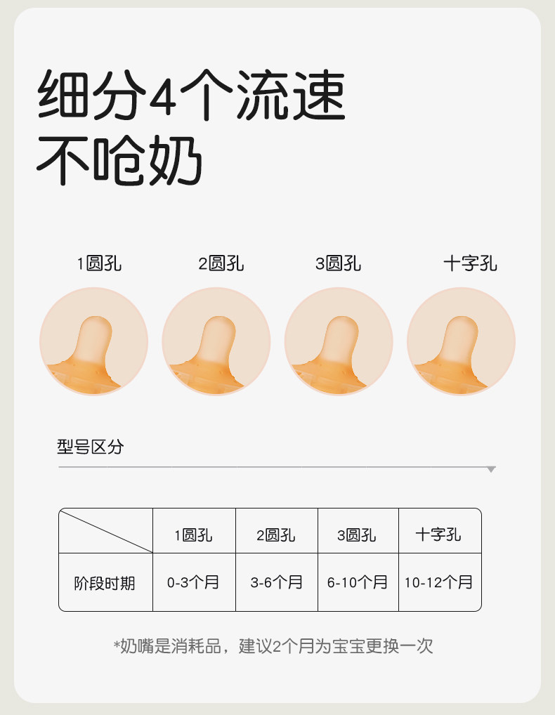 | Color Classification | 260ml[0-6 Months]1 Hole + 2 Holes,260ml[6-10 Months]3-Hole Nipple X 2,260ml[6-12 Months]3 Holes + Duckbill,260ml[6-12 Months]3 Holes + Cross,260ml[6-12 Months]3 Holes + Cross + Duckbill,260ml[Learning to Drink Combination]3 Holes + Cross + Duckbill + Drinking Mouth,260ml[Over One Year Old]Straw Mouth × 2 |