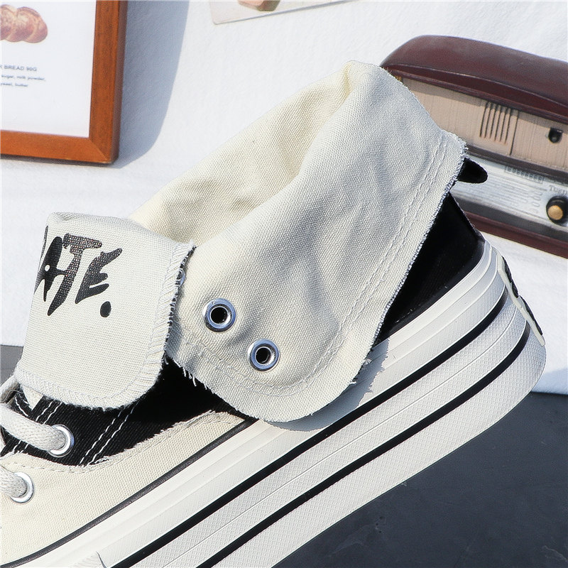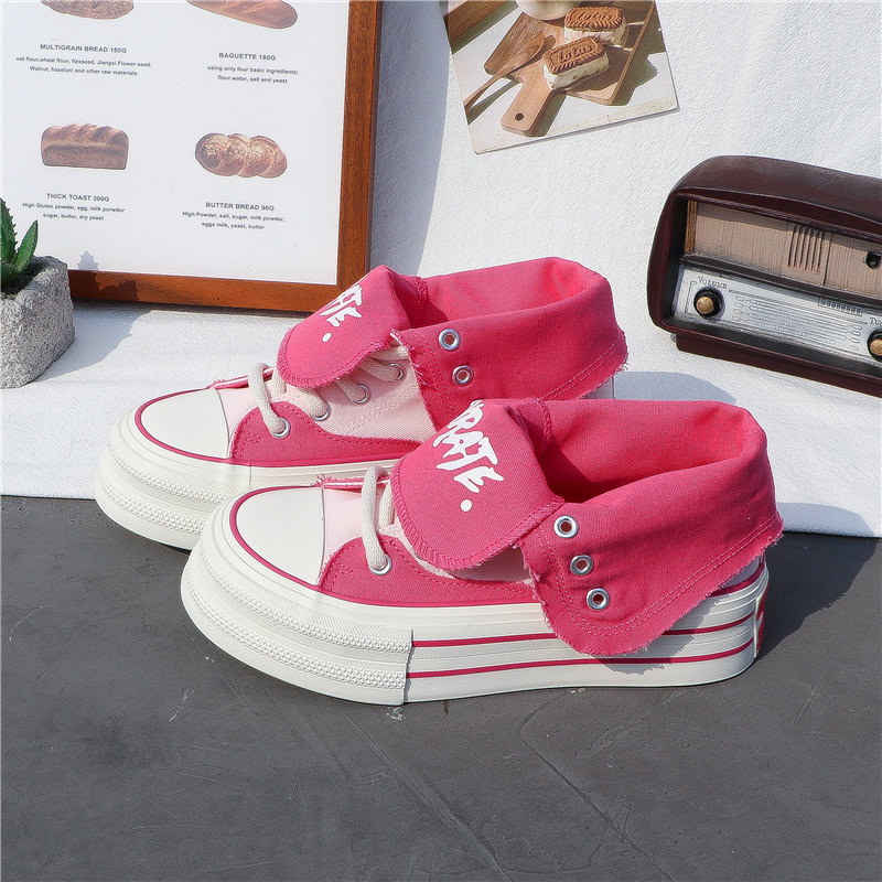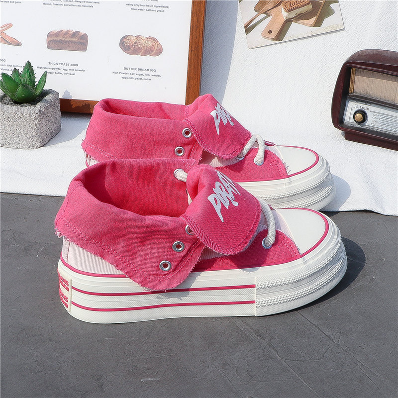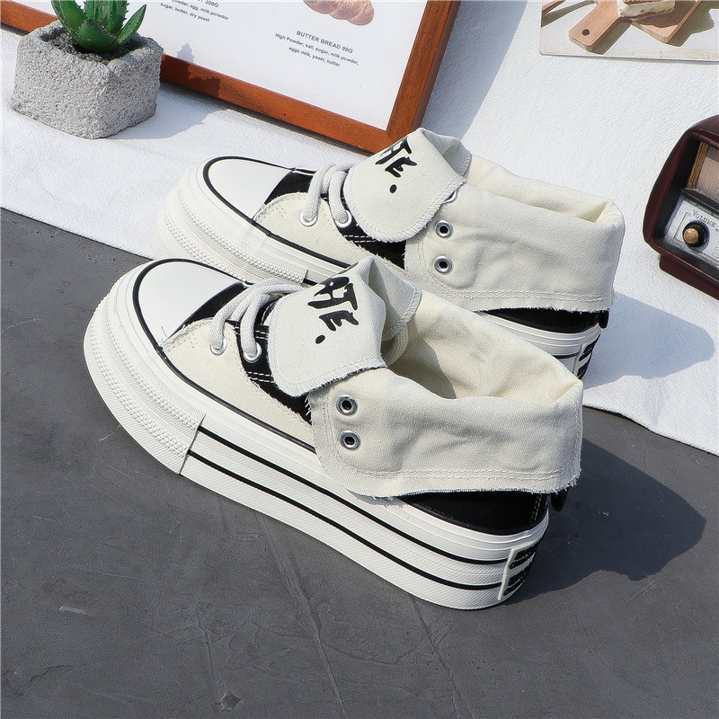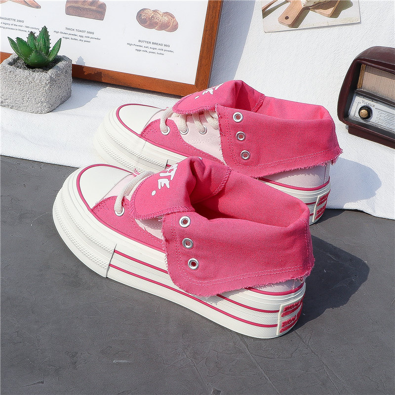 Thick-Soled Canvas Shoes for Women, High-Top, 2025 Spring/Summer, Versatile, Korean Style, New Trendy Student Casual Sports Sneakers ins
