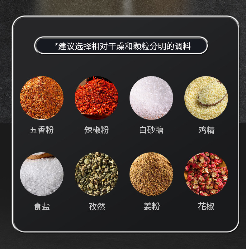 | Applicable Seasonings | Salt, Msg, Chicken Essence, Chili Powder |