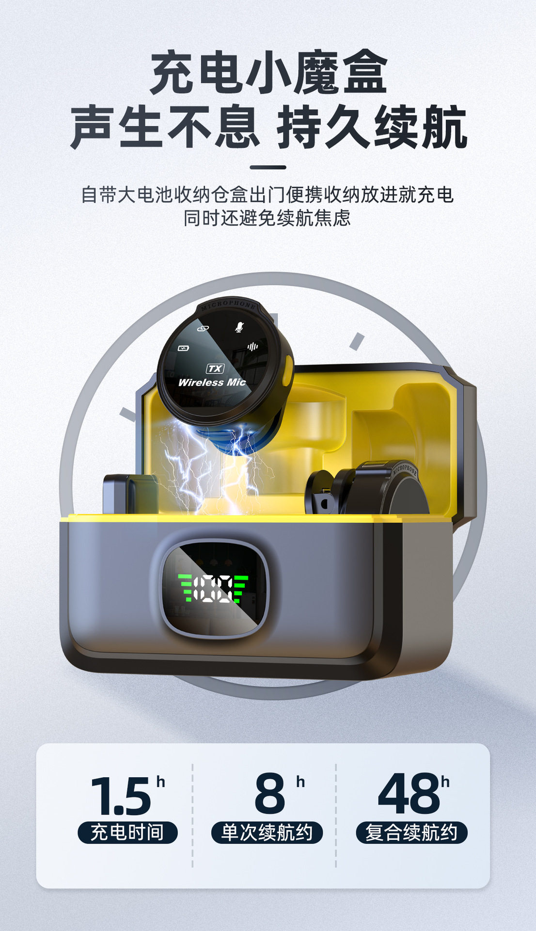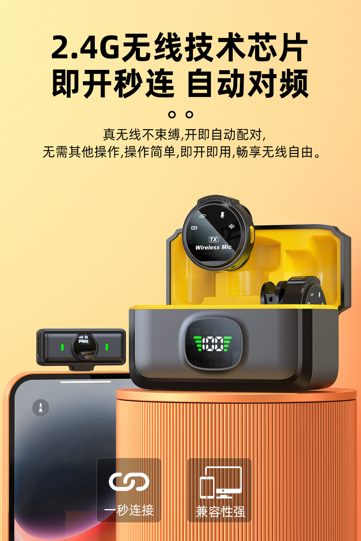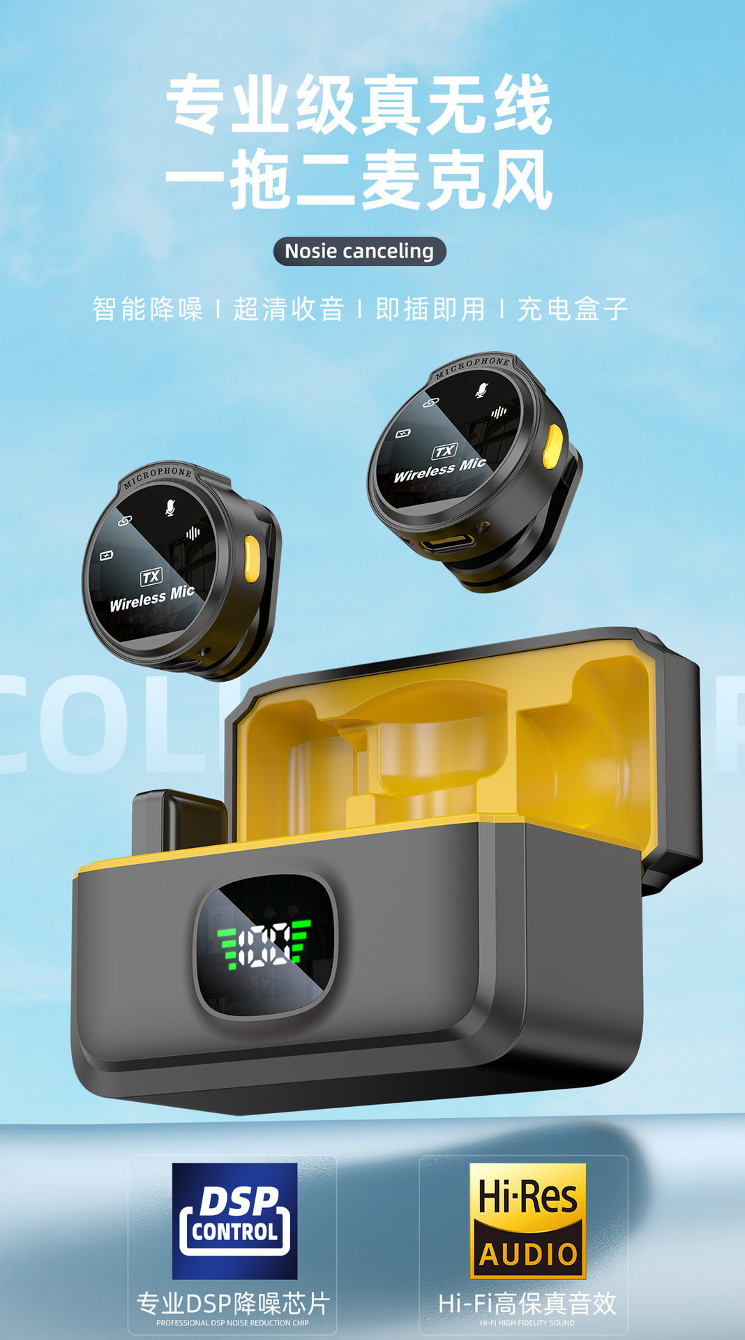 Daoubo J6 New Round Wireless Lavalier Microphone with Charging Case, Large Capacity, Long Battery Life, Noise Reduction, Magnetic Attachment