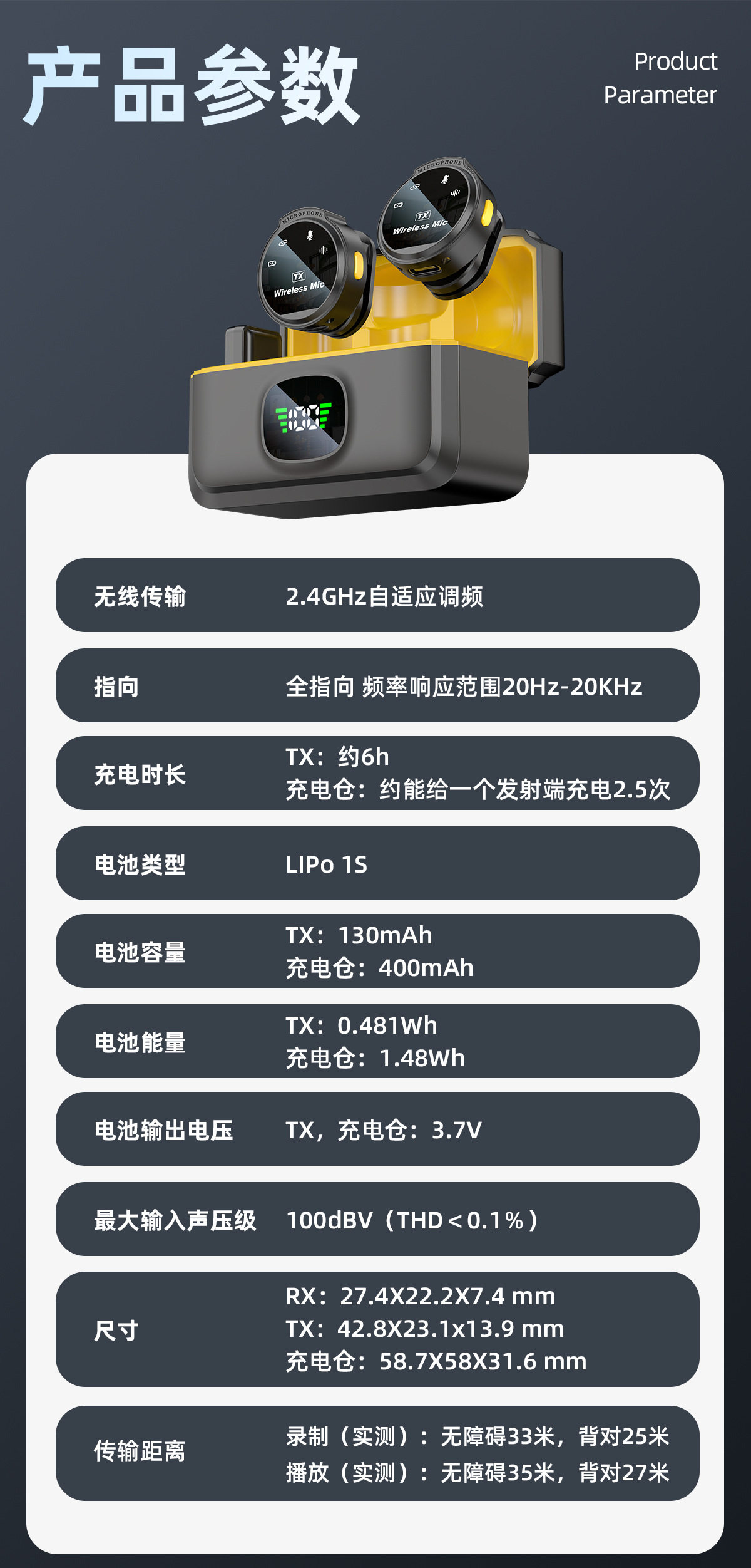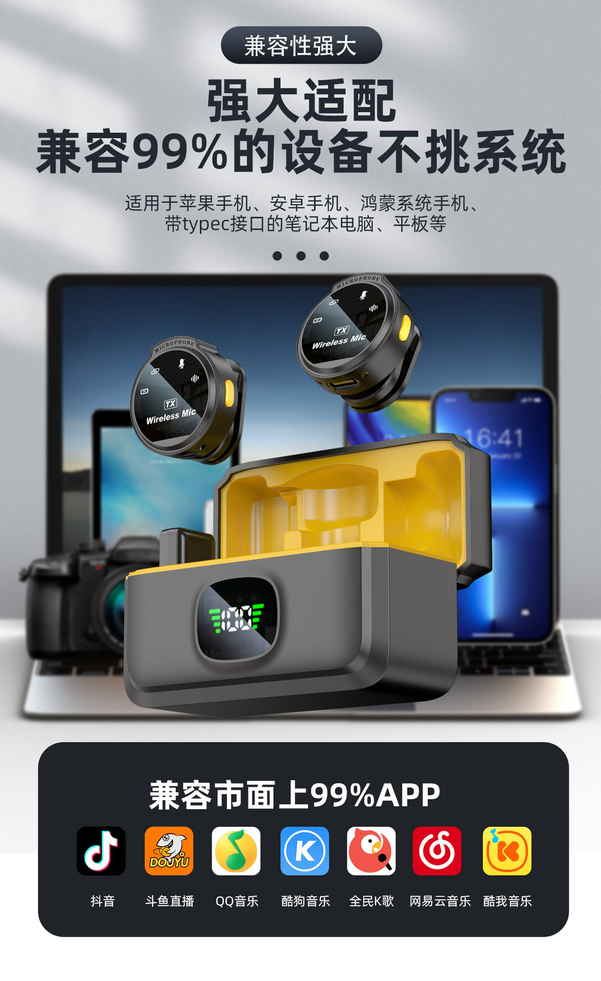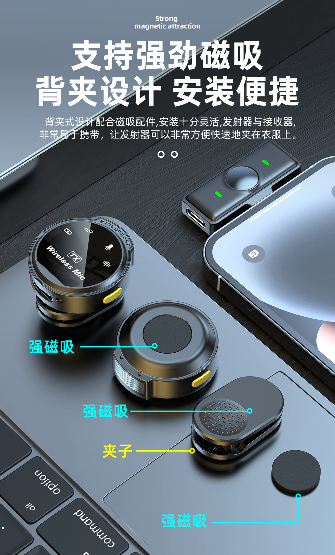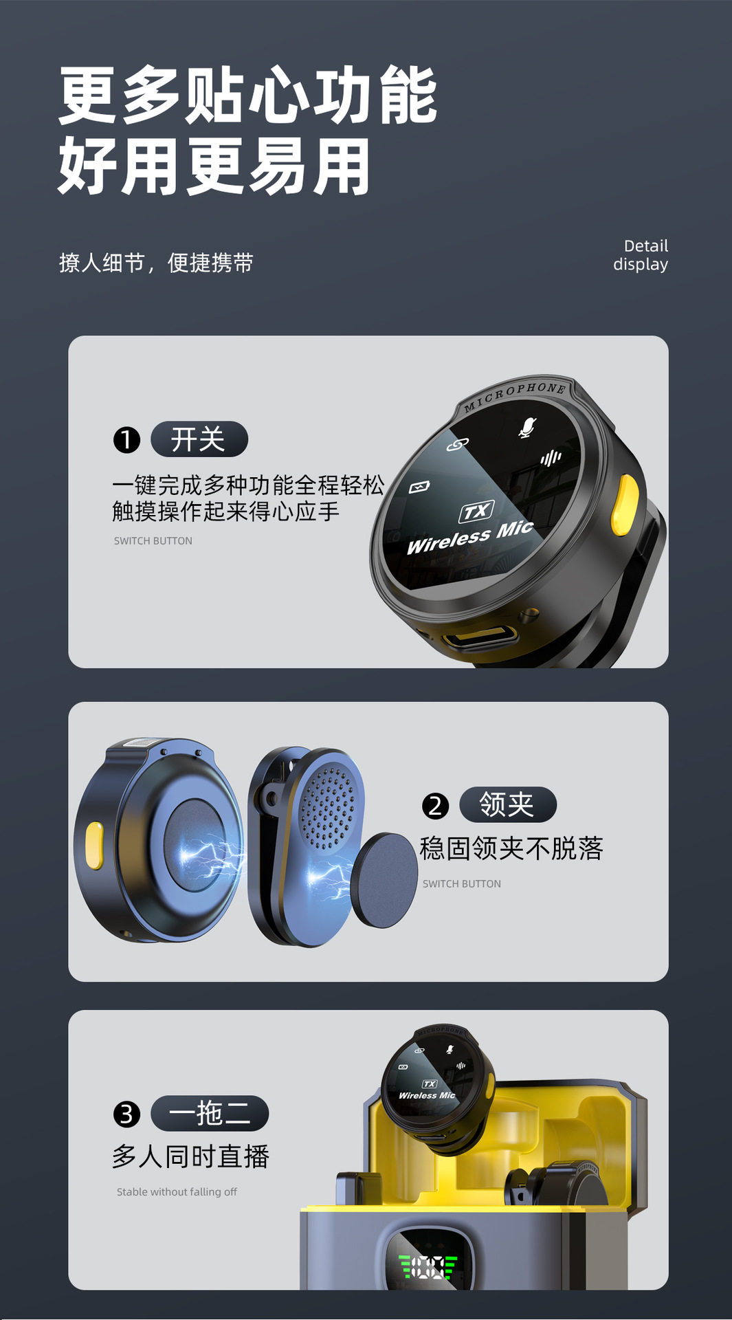 Daoubo J6 New Round Wireless Lavalier Microphone with Charging Case, Large Capacity, Long Battery Life, Noise Reduction, Magnetic Attachment