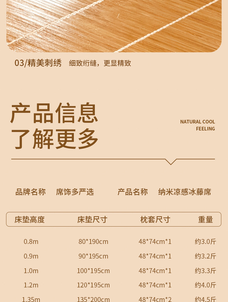 | Color Classification | [Upgraded and Thickened Version]Hot Sale★Bamboo and Rattan Skin-Friendly Mat★Natural Carbonization, Suitable for Mothers and Infants★|No Pillowcase,[Upgraded and Thickened Version]Hot Sale★Bamboo and Rattan Skin-Friendly Mat★Natural Carbonization, Suitable for Mothers and Infants★|With Rattan Pillowcase,[Basic Model]Ecological Polishing Mat★Natural Carbonization, Suitable for Mothers and Infants★|No Pillowcase,[Hot Selling Model]Asparagus Water Mill Mat★Natural Carbonization, Suitable for Mothers and Infants★|No Pillowcase,[Hot Selling Model]Asparagus Water Mill Mat★Natural Carbonization, Suitable for Mothers and Infants★|With Rattan Pillowcase,[Simple Style]Mugwort Polishing Mat★Natural Carbonization, Suitable for Mothers and Infants★|No Pillowcase,[Simple Style]Mugwort Polishing Mat★Natural Carbonization, Suitable for Mothers and Infants★|With Rattan Pillowcase,[Upgraded Model]Mugwort Double-Sided Mat★Natural Carbonization, Suitable for Mothers and Infants★|No Pillowcase,[Upgraded Model]Mugwort Double-Sided Mat★Natural Carbonization, Suitable for Mothers and Infants★|With Rattan Pillowcase,[Fashionable Style]Full Carbon Antibacterial Mat★Natural Carbonization, Suitable for Mothers and Infants★|No Pillowcase,[Fashionable Style]Full Carbon Antibacterial Mat★Natural Carbonization, Suitable for Mothers and Infants★|With Rattan Pillowcase,[Classic Style]Bamboo and Rattan Water Mat★Natural Carbonized Mugwort Antibacterial★|No Pillowcase,[Classic Style]Bamboo and Rattan Water Mat★Natural Carbonized Mugwort Antibacterial★|With Rattan Pillowcase,[Elegant Style]Bamboo and Rattan Dual-Purpose Mat★Natural Carbonization Professional Antibacterial★|With Rattan Pillowcase,[Light Luxury Style]Bamboo and Rattan Water Mat★Natural Carbonization, Suitable for Mothers and Infants★|No Pillowcase,[Light Luxury Style]Bamboo and Rattan Water Mat★Natural Carbonization, Suitable for Mothers and Infants★|With Rattan Pillowcase,[Premium Selection]Pure Bamboo Full Carbon Fiber Mat★Natural Carbonization Professional Antibacterial★|With Rattan Pillowcase,[Luxury Model]Mellow Bamboo Charcoal Mat★Natural Carbonization Professional Antibacterial★|No Pillowcase,[Luxury Model]Mellow Bamboo Charcoal Mat★Natural Carbonization Professional Antibacterial★|Comes with Ice Silk Pillowcase,[Straight Fit]Mellow Bamboo Charcoal Mat★Natural Carbonization Professional Antibacterial★|Comes with Ice Silk Pillowcase,[Classic Style]Hydrating Carbonized Mat★Natural Carbonization, Suitable for Mothers and Infants★|With Rattan Pillowcase,[Bestseller]Original Bamboo Ecological Mat★Natural Carbonization, Suitable for Mothers and Infants★|No Pillowcase,[Bestseller]Original Bamboo Ecological Mat★Natural Carbonization, Suitable for Mothers and Infants★|With Rattan Pillowcase,[Brand Model]Mugwort Hydrating Mat★Natural Carbonization Professional Antibacterial★|With Rattan Pillowcase,[Top Gold Needle Will Win Gold Medal] Nanzhu Water Mill Mat★Natural Carbonization Professional Antibacterial★|With Rattan Pillowcase,Hot[Golden Needle Association★Gold Medal Winning Entry]-With Rattan Pillowcase |