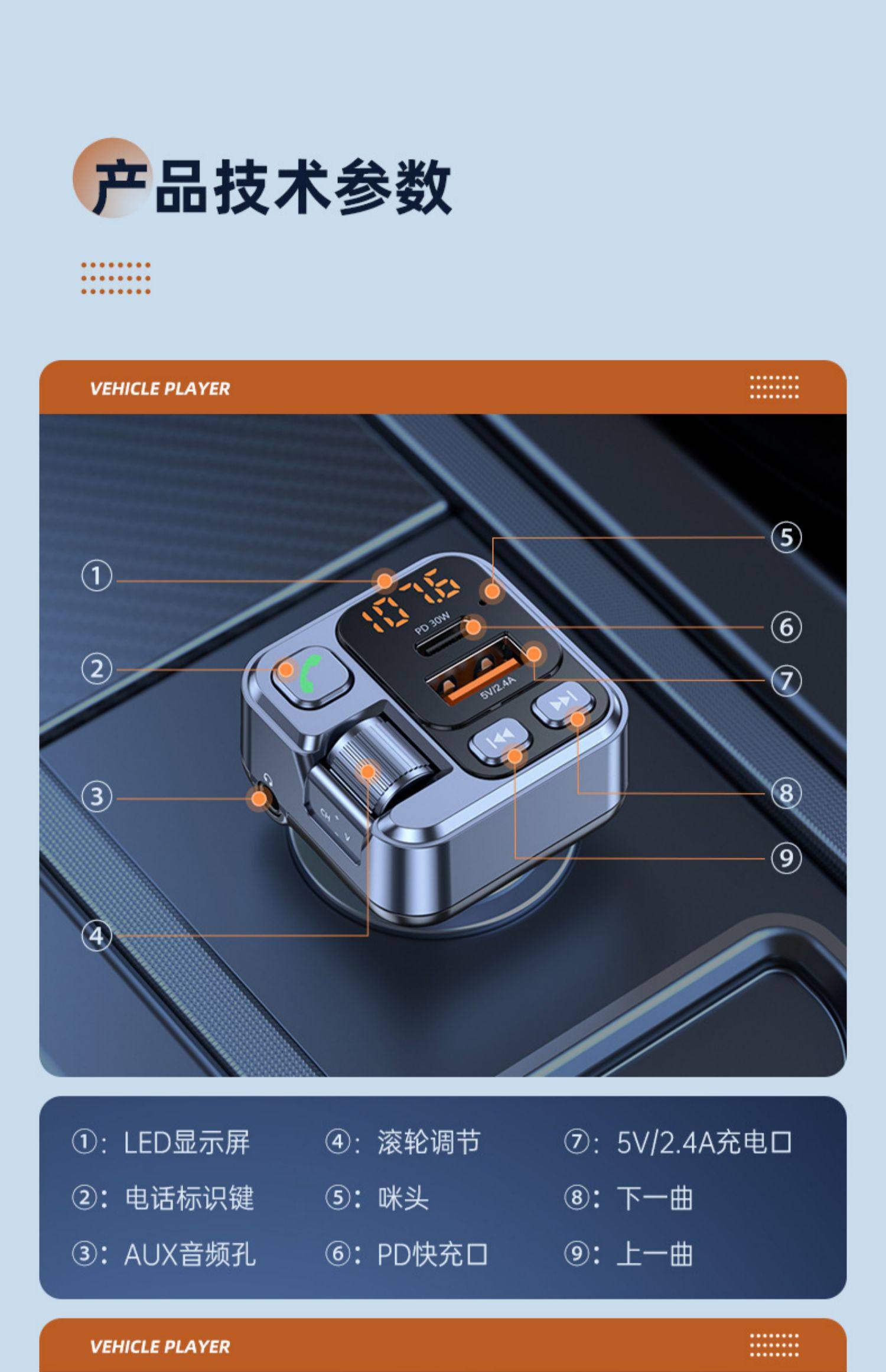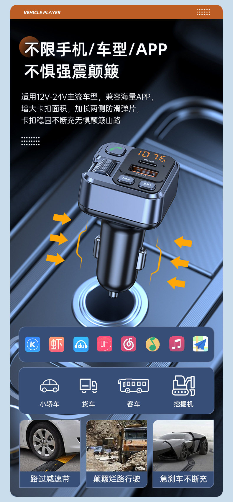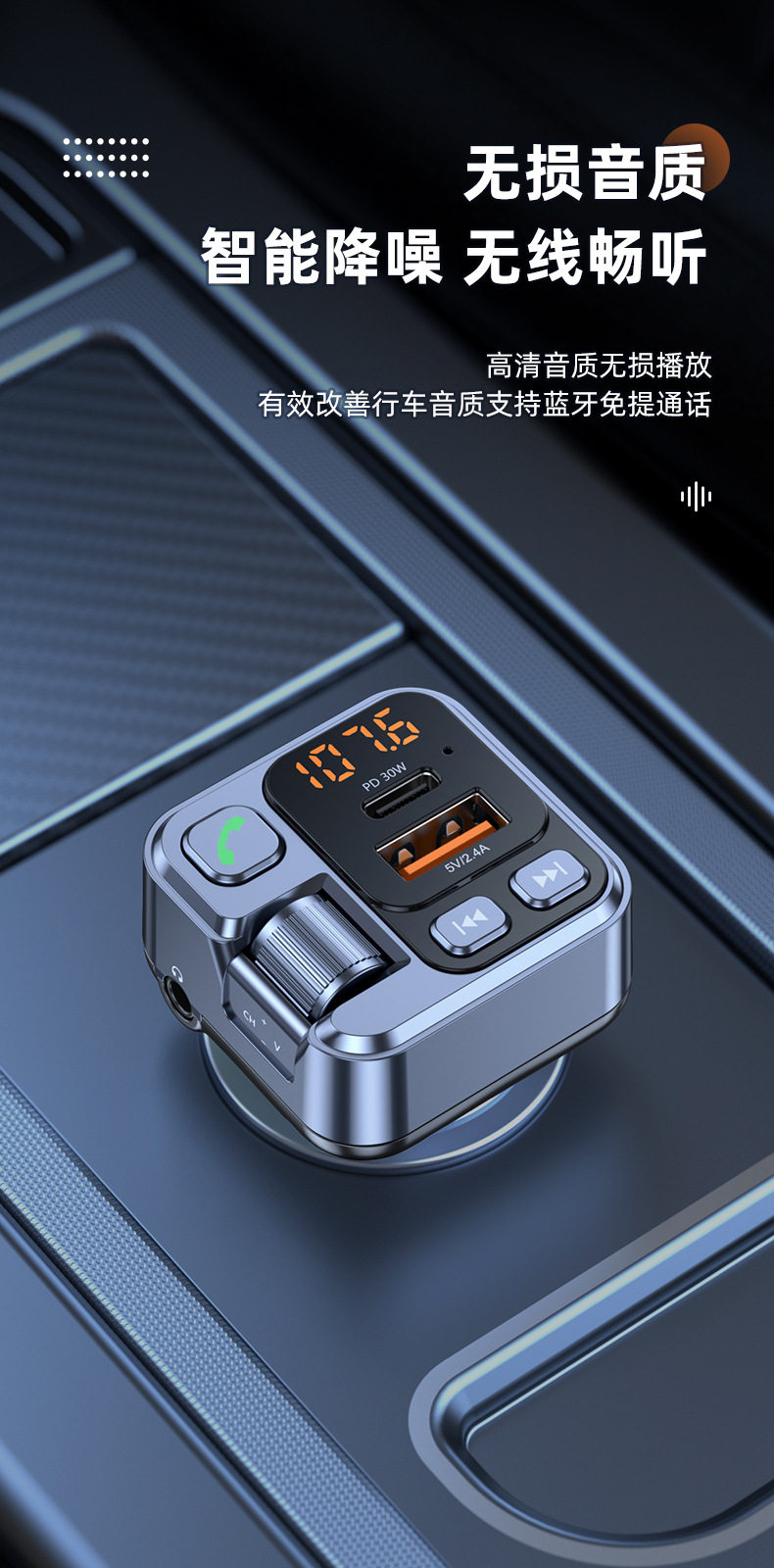 Car Mp3 Player Aux Connects to Mobile Phone Bluetooth Receiver Universal Noise-Free Digital Display Car Cigarette Lighter Charger
