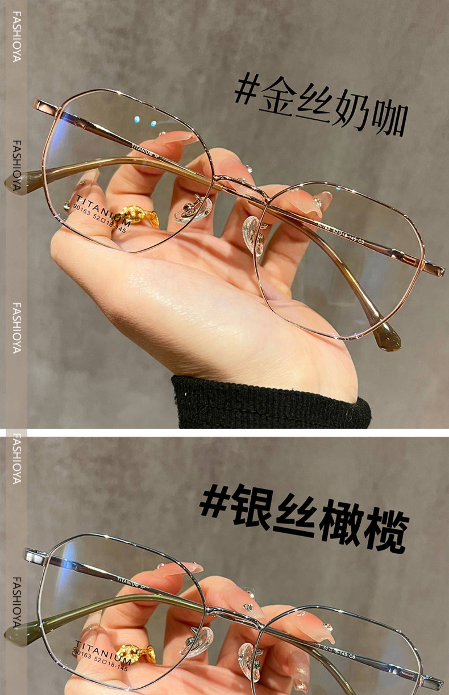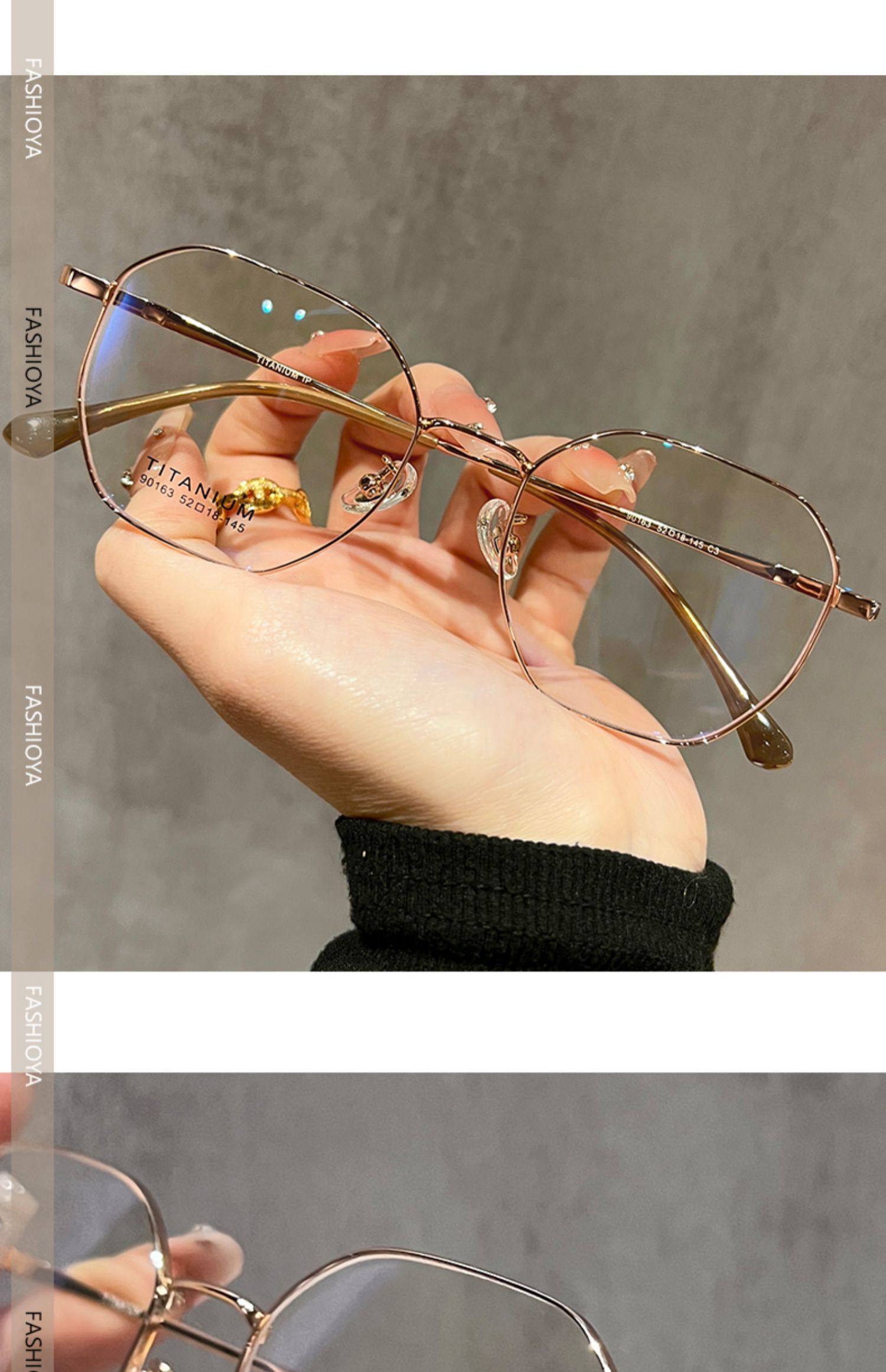 Titanium Frame Ultra-Light Polygonal Gold Wire Frame Glasses for Women, Can Be Fitted with Prescription Lenses for Nearsightedness, High-End Style for Square and Round Faces