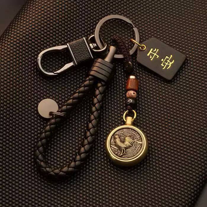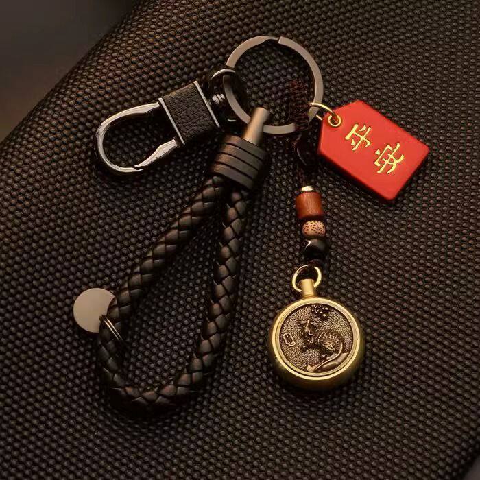 Men's and Women's Car Keychains, Brass Twelve Zodiac Keychains, Handmade Pendants, Retro Creative Men's Money-Turning Hand Ornaments